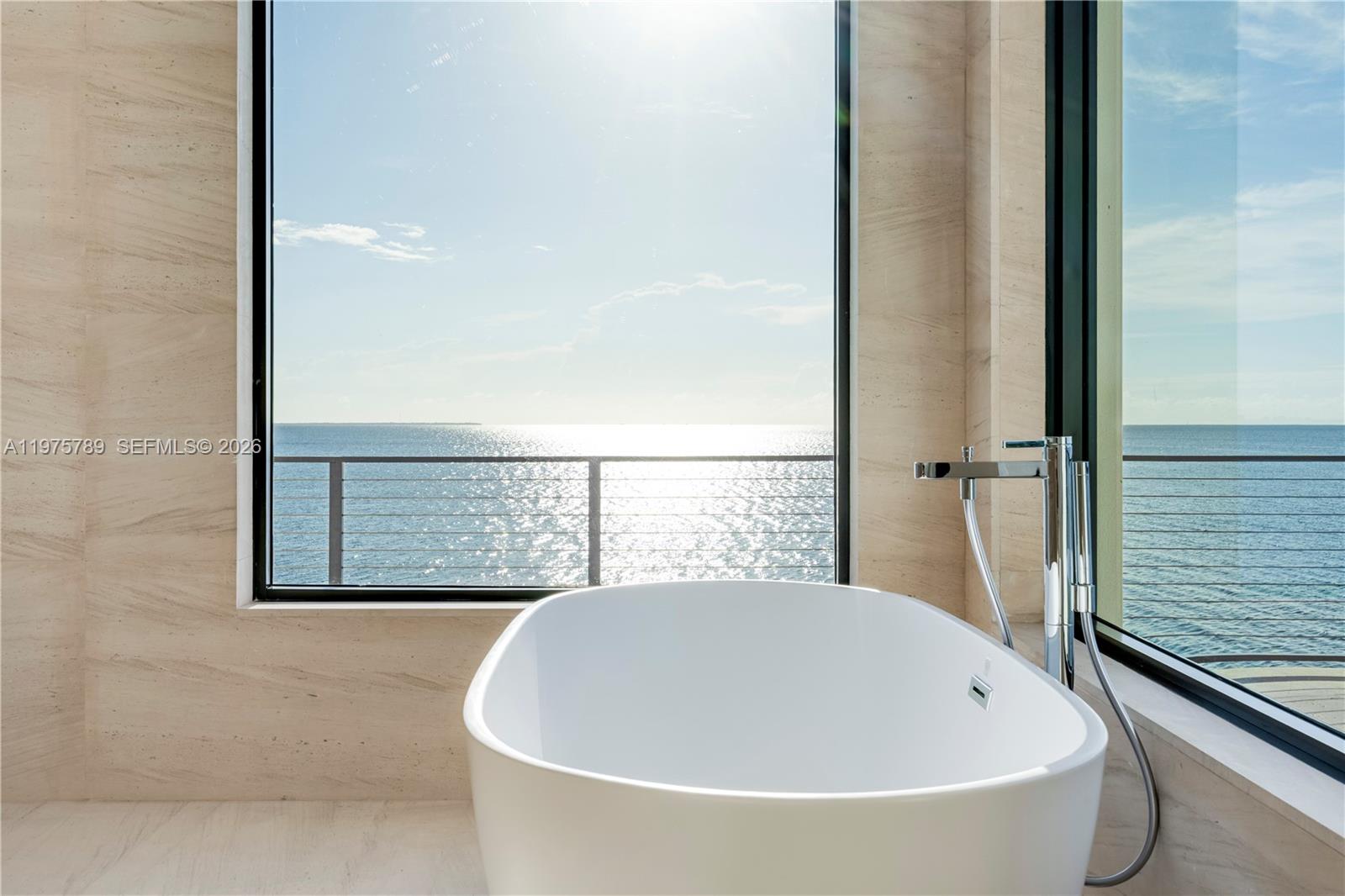 Tip of the World on Lugo Avenue.Gables by the Sea Breathtaking location paired with a stunning contemporary residence. From every room, enjoy unparalleled 360° views framed by floor-to-ceiling impact glass windows & doors. The entrance door itself is a true showpiece, opening into soaring ceilings & a seamless flow of light-filled spaces. Choose your moment: sunrise, sunset ,the sparkling Miami skyline by night.Elevated & elegant, master suite features a spacious balcony overlooking Biscayne Bay. All-new. All-white.Effortless floor plan designed for modern living.The pool deck offers endless water views, complemented by a seawall . Gables by the Sea is a gated community w/Coral Gables Police patrol. 24/7 security. 3D tours, Matterport & videos available. Come see it. Fall in love.