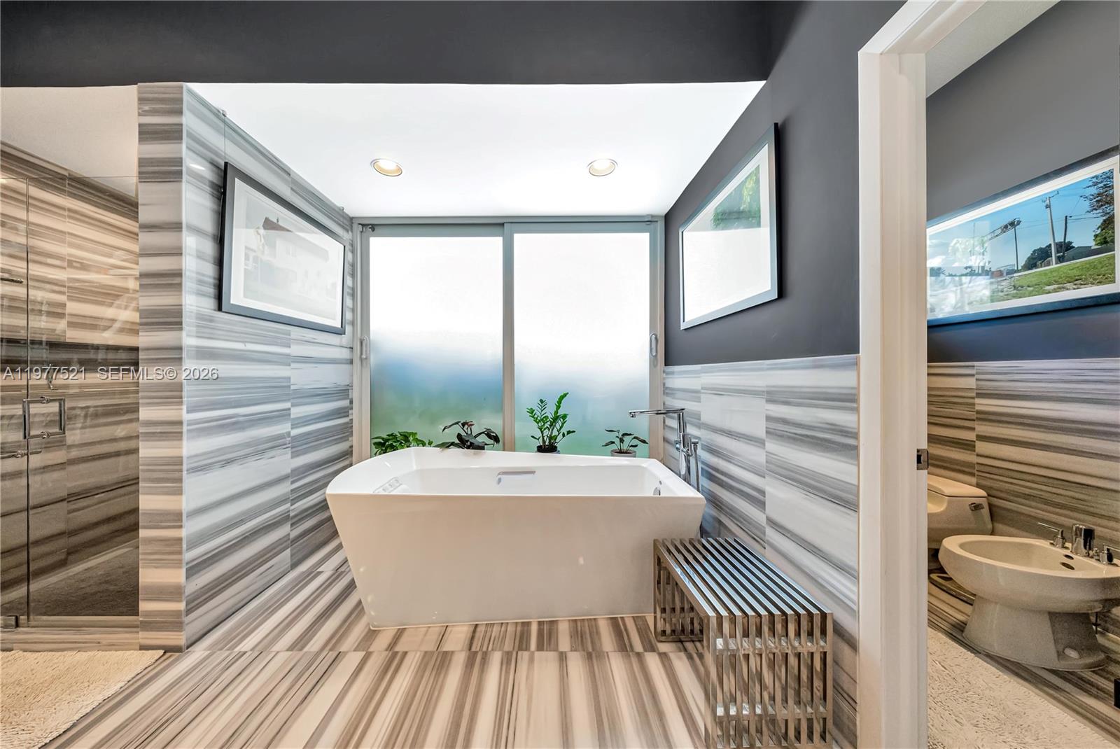 Ideally located on a spacious corner lot in the sought-after community of The Falls, this meticulously maintained residence offers a perfect blend of luxury and high-end functionality. High ceilings throughout create an airy, expansive feel, complemented by an interior that transitions from elegant, classic, light, travertine in the main living areas to stylish vinyl flooring in the bedrooms and living room. The gourmet kitchen is a chef’s dream, featuring unique Carrara quartz countertops, a 48” Jenn-Air built-in refrigerator, and a 36” Thermador six-burner propane gas range top. High-performance appliances include Bosch double ovens, a convection microwave speed oven, and a warming drawer, alongside a stainless-steel Samsung dishwasher and a 27-bottle Darby wine cooler. The primary suite serves as a true retreat, featuring a spacious closet and a primary bathroom highlighted by a 72-inch standing soaking tub. Structural integrity and efficiency are paramount, with a durable metal roof and full protection provided by impact windows, doors, and a reinforced garage door. For the automotive enthusiast, the air-conditioned garage with a available car lift, offering both comfort and utility. Outside, the circular driveway provides ample parking, while the outdoor oasis features a sparkling pool and a covered terrace—the ideal shaded retreat for overlooking the water. Call for a showing today.