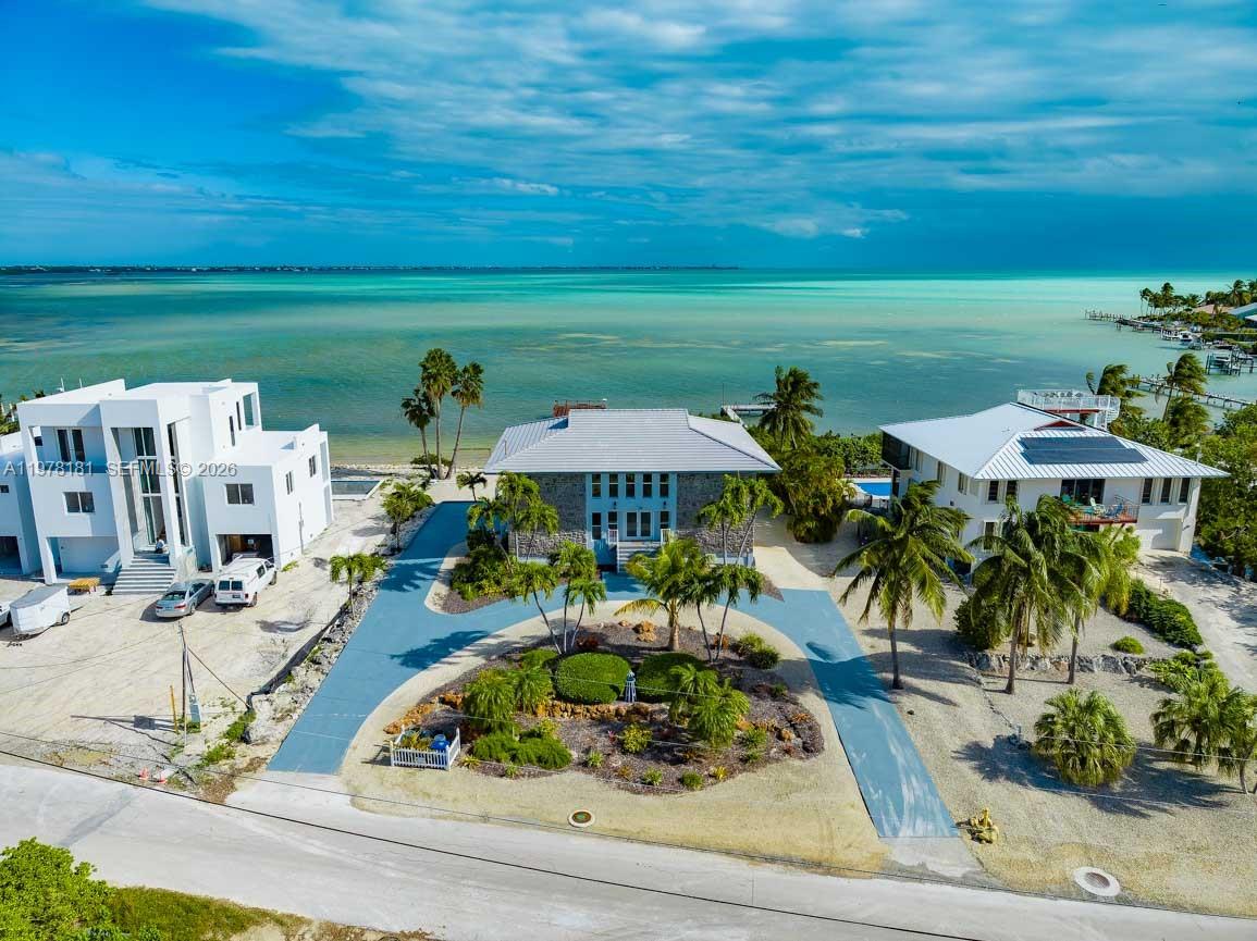 Sprawling Sombrero Beach newly renovated home on an oversized lot with pool, private sandy beach and Open Water Views! Currently a successful vacation rental this home boasts loads of space and elevated amenities! The large dock allows for easy boating just minutes to excellent fishing and diving. Cool off after a day on the water in the pool and enjoy a cocktail paired with sunset views under the tiki hut next to your private sandy beach! Inside, this home boasts two spacious floors with loads of room to relax and unwind. Downstairs, a generous guest bedroom and an additional room used as fourth bedroom are located just off of a sizable recreational room with access to a large covered porch and the sparkling pool beyond. Upstairs features gorgeous Open Water Views as the focal point of the open concept main living space. The newly designed kitchen features quartz counters, new cabinetry & appliances surrounded on all sides by walls of impact glass and Open Water Views. The well-appointed primary suite comes complete with walk-in closet, porch access, and new ensuite bathroom. An additional guest bedroom offers comfortable accommodation also with newly renovated en suite bathroom. The sprawling upstairs covered porch provides ample space for grilling and al fresco dining. Nestled on nearly half an acre, with lush tropical landscaping, this spectacular property feels tranquil and private while still just minutes to Sombrero Beach.