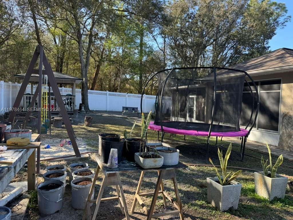 Excellent opportunity in Citrus Springs! This 3-bedroom, 2-bath, 2-car garage home offers a desirable split-bedroom floor plan and a spacious fenced backyard with plenty of room to enjoy outdoor living. The property features a welcoming front porch, attractive landscaping, and an irrigation system. Inside, you’ll find high cathedral ceilings, an updated kitchen with granite countertops, a generous primary bathroom, and a large walk-in closet. Sliding doors from the main living area lead to a huge enclosed lanai, perfect for relaxing or entertaining. Schedule your showing today!