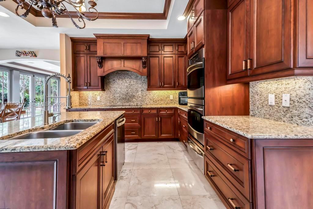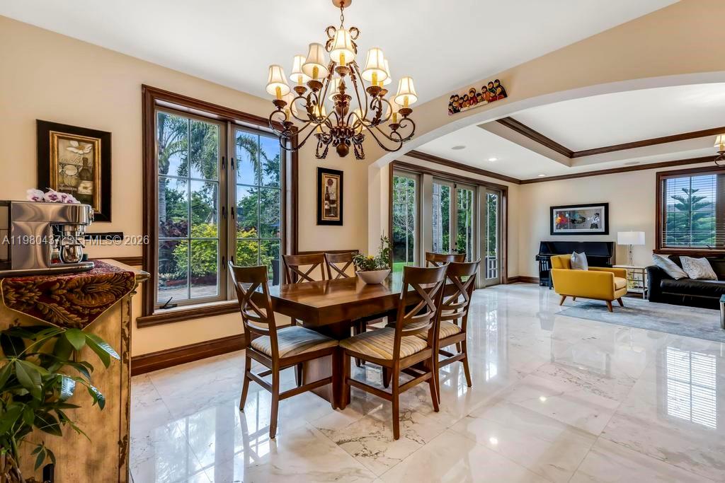 Tucked away in the exclusive enclave of Oak Hollow in Davie, this rare custom estate offers a level of privacy, elegance, & presence that’s simply hard to find. Set on nearly a full acre this two-story residence invites you into a lifestyle defined by space, light, & timeless design. You’re greeted by a grand entrance with striking marble floors and soaring ceilings that immediately make a statement. Natural light pours into the formal living room, where a beautiful fireplace creates the perfect balance of warmth and sophistication. Formal dining room sets the stage for memorable gatherings, seamlessly connecting elegance with everyday living. At the heart of the home, the gourmet kitchen is designed to impress, featuring rich wood cabinetry, granite countertops, and top-of-the-line appliances, all flowing effortlessly into the main living areas perfect for both intimate moments and entertaining on a larger scale. The first floor offers a private guest suite with its own bathroom, ideal for visitors or extended family. Upstairs, real wood floors lead you to the remaining bedrooms, each thoughtfully designed with its own bath, while the primary suite offers a true retreat complete with spacious walk-in closets with custom cabinetry, blending function with refined design. A resort-style pool and spa are surrounded by expansive outdoor living spaces, offering the perfect setting to unwind, entertain, and enjoy the serenity of your own private retreat.