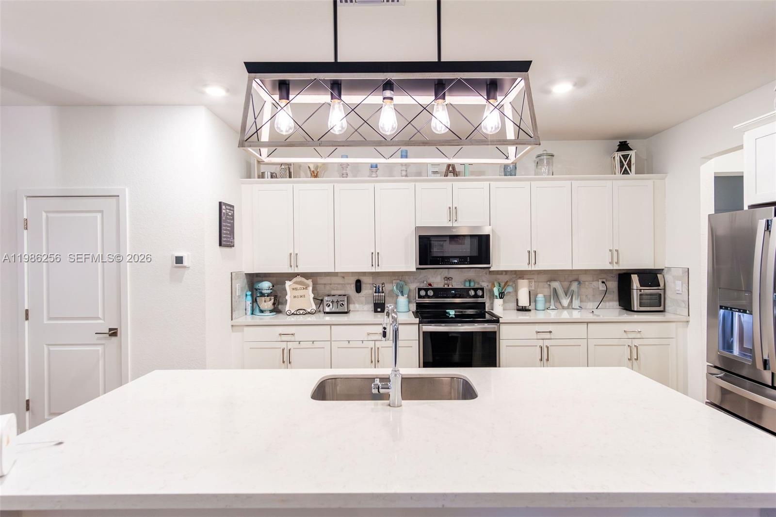 Beautiful 4 Bed / 3 Bath] single-story home situated on an oversized lot with NO HOA. This spacious residence features an open-concept layout with a modern kitchen showcasing white shaker cabinetry, quartz countertops, stainless steel appliances, and a large center island perfect for entertaining. Tile flooring throughout main living areas. Bright and airy living spaces offer abundant natural light and seamless access to a covered terrace—ideal for indoor/outdoor living. The primary suite includes a generously sized layout with a bathroom featuring dual sinks, soaking tub, and separate shower. Enjoy a fully fenced backyard with plenty of room for a pool, boat, or RV. Property is equipped with solar panels, well water system, and tankless water heater, providing efficiency and long-term savings. Additional features include a 3-car garage, paver driveway, and excellent curb appeal. Move-in ready!