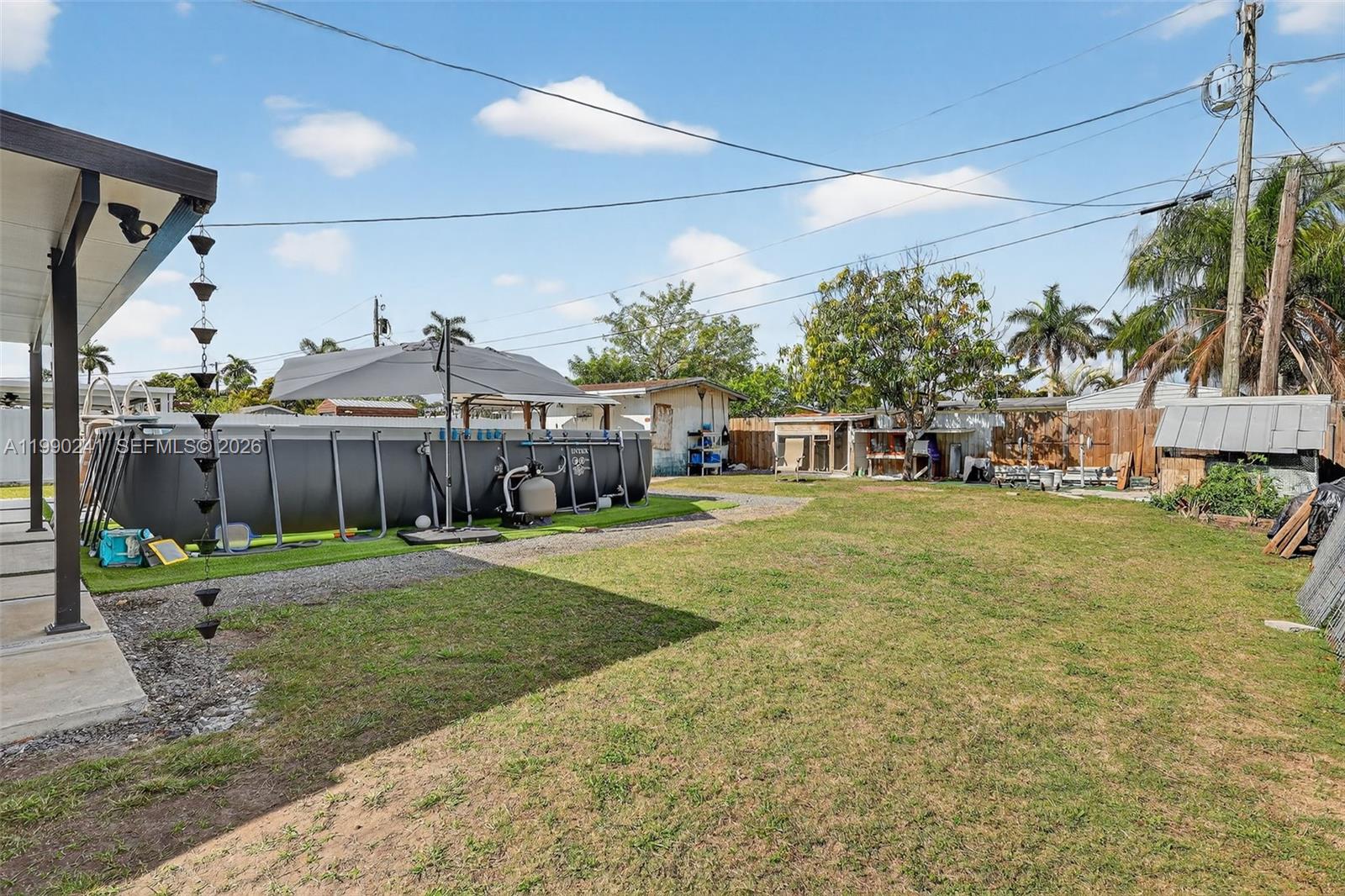 Don’t miss this incredible opportunity! This versatile property features a 3 bedroom, 2 bath home plus a large full 1/1 in-law suite with a private entrance and its own large patio. Whether you need extra space for family, guests, or rental income, this layout offers the flexibility to live as a 4 bedroom, 3 bath home or enjoy two separate areas. Sitting on a 10,650 sq ft lot, the backyard is a true highlight. Complete with a new above ground pool, a large shed with electricity and a charming covered area perfect for relaxing or entertaining. The primary bedroom is generously sized and includes an updated en-suite bath and walk-in closet. The kitchen was remodeled just a few years ago, and the owner has installed several impact windows throughout the home for added peace of mind. There is plenty of room to fit a large RV and boat on side of home. This property is easy to show and ready for its next owner. Contact me today to schedule your private tour.