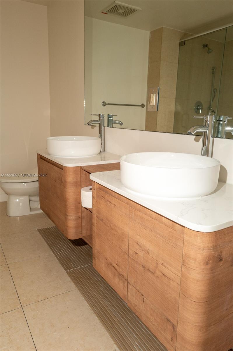 Breathtaking, fully renovated high-floor residence at 50 Biscayne — one of Downtown Miami’s most iconic towers. Perched on the 41st floor, Unit 4111 delivers sweeping, unobstructed views of Biscayne Bay, the Port of Miami, Virginia Key, and the glittering Downtown skyline from floor-to-ceiling glass windows and a dramatic wraparound balcony. The unit has been thoughtfully upgraded throughout. Wide-plank flooring flows seamlessly across every room. The open kitchen features rich warm toned wood cabinetry, black granite countertops and stainless steel appliances. The primary bath is a true retreat: double vessel sinks set on a floating wood vanity with marble countertop, a frameless glass-enclosed shower, and a separate jetted soaking tub framed in travertine tile. Secondary bath is equally refined. Every finish has been carefully selected for a cohesive, modern-luxe aesthetic. 50 Biscayne is a full-service building designed by the award-winning firm Sieger Suarez, with a landmark 3-story lobby by the Rockwell Group. Amenities include an infinity-edge pool with cabanas, a 2-level club room, a 2-level spa and fitness center overlooking the bay, and 24-hour concierge service. Located directly across from 32-acre Bayfront Park, and walkable to Bayside Marketplace, the Pérez Art Museum, Frost Science Museum, Kaseya Center, and the Metromover. This is downtown Miami living at its absolute finest.