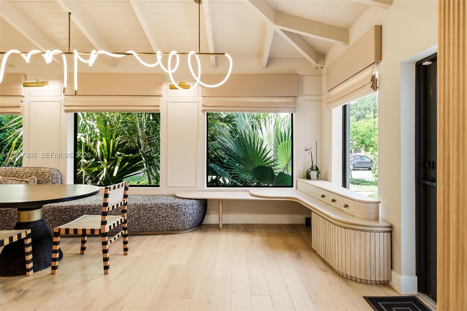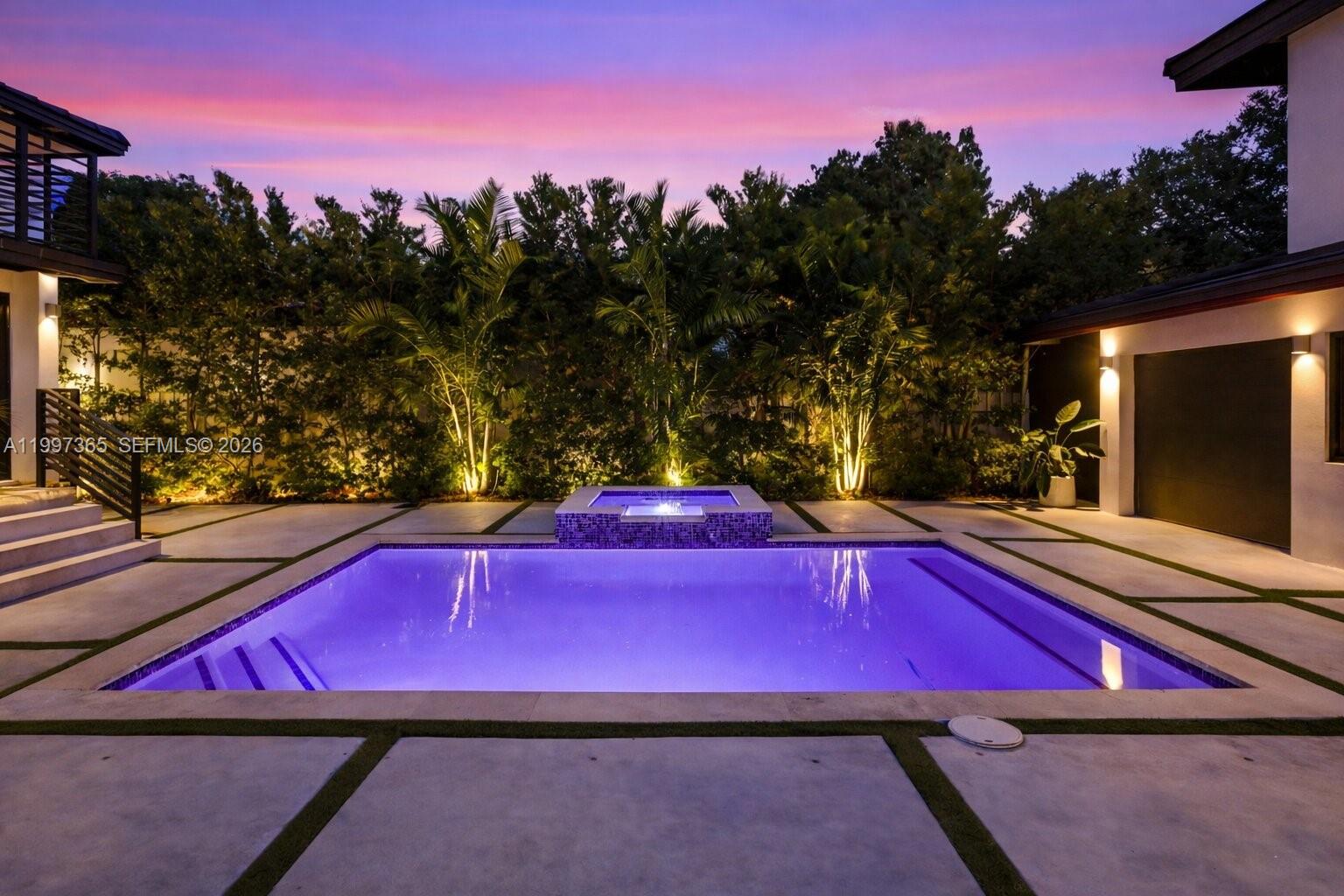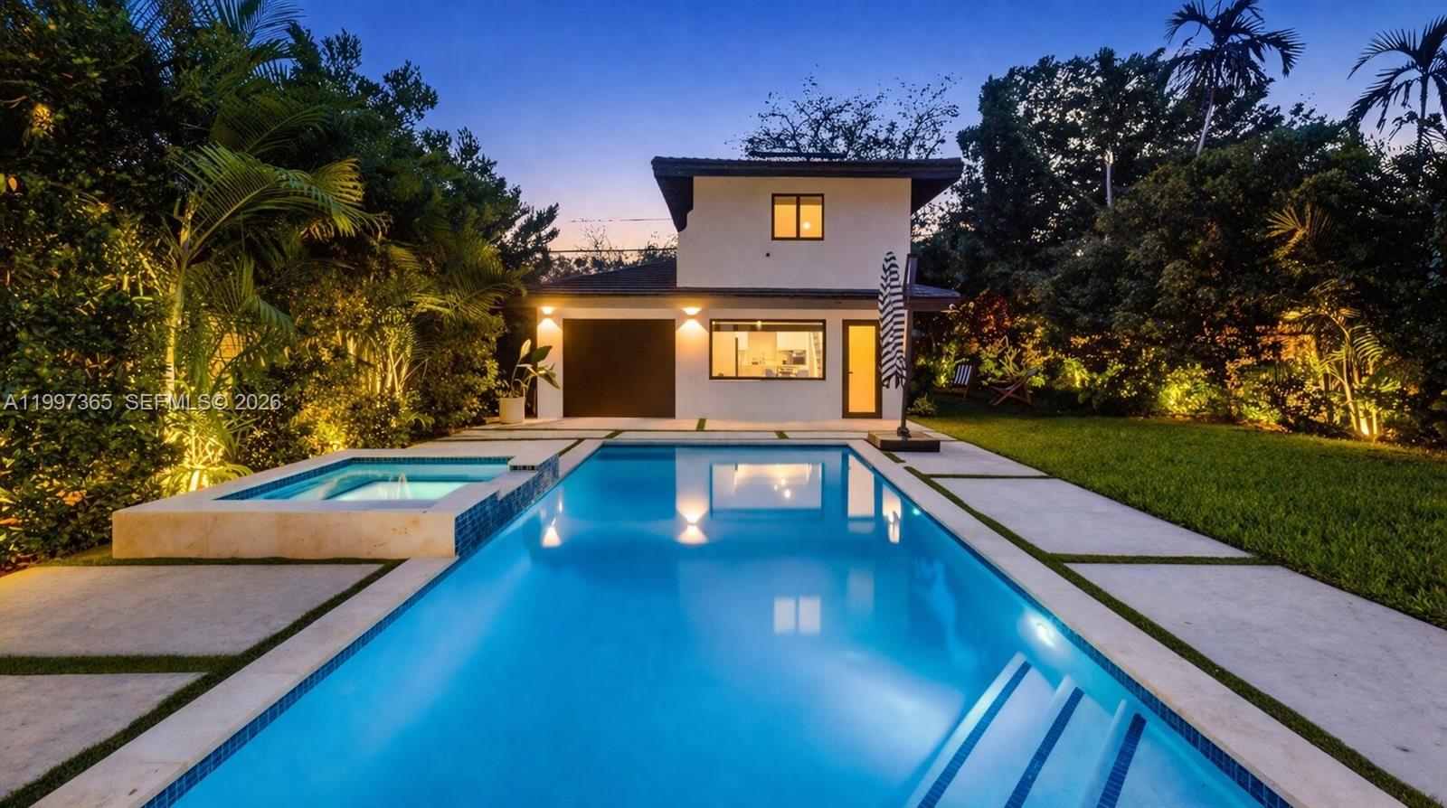A masterfully reimagined Spanish Mediterranean compound where timeless architecture meets bespoke modern design.Set within a private, lushly landscaped setting, this residence offers nearly 3,000 SF of refined living space, including a 4-bedroom, 3-bath main home and a detached two-story guest house.The first level has been thoughtfully redesigned by Miami-based Moniomi designers, featuring custom millwork, curated finishes, and light-filled open living spaces. A built-in dining banquette and elegantly composed interiors flow into a chef’s kitchen centered around an oversized island and outfitted with professional-grade Thermador appliances.Upstairs, private quarters continue the elevated design with refined finishes and premium fixtures, including Toto toilets.Offered fully furnished with high-end designer pieces, the home delivers a seamless turnkey experience.The detached guest house includes its own kitchen, living area, full bath, and private upstairs bedroom—ideal for guests, a home office, or income-producing use.Outdoors, mature tropical landscaping surrounds a sleek pool and spa, with fully gated grounds creating a private, resort-like setting.A rare opportunity to own a design-forward, fully furnished compound defined by craftsmanship, privacy, and versatility.