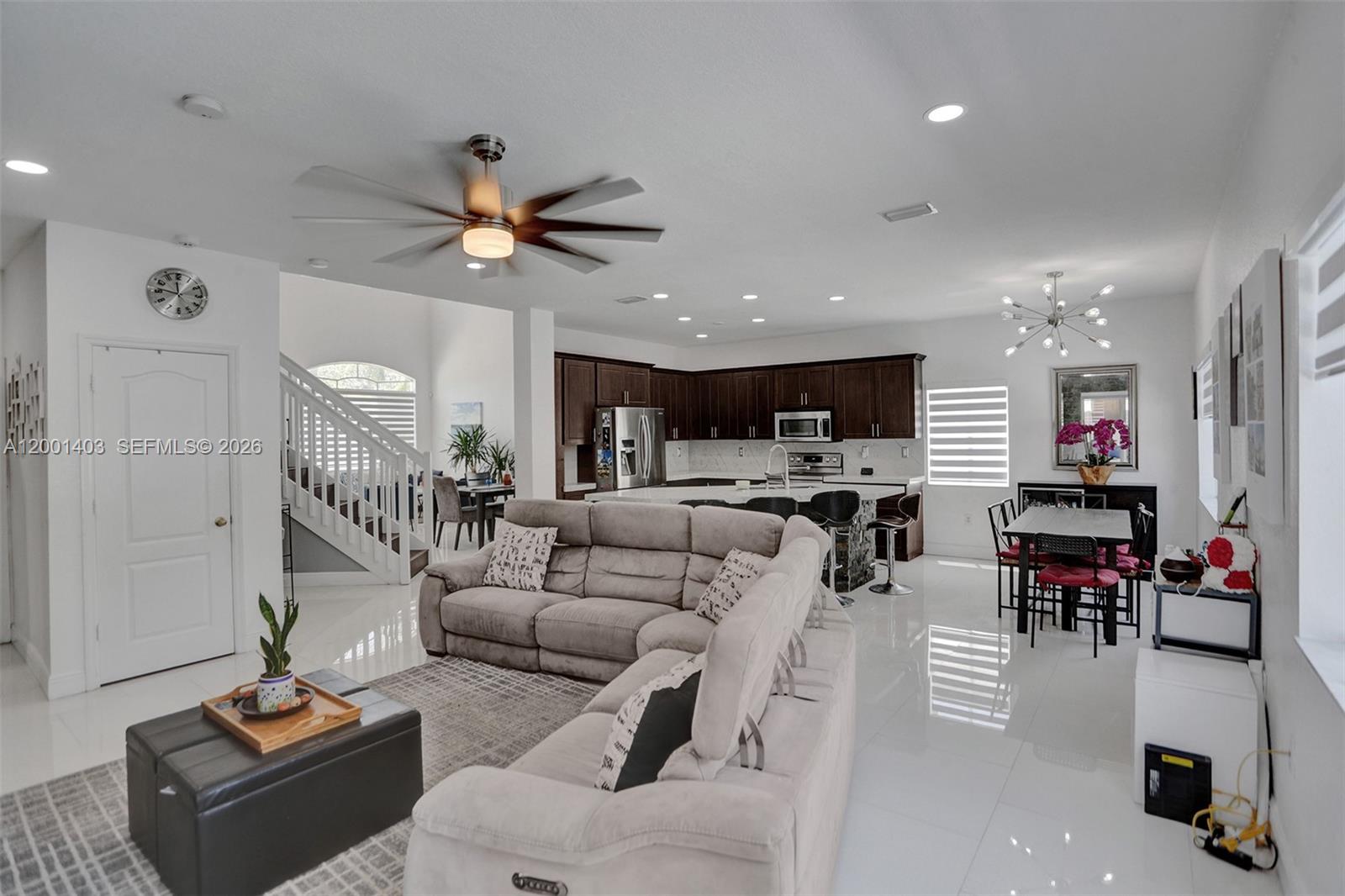NO HOA. Beautifully remodeled two-story residence offering 4 bedrooms and 3 bathrooms, blending modern design with comfortable living. This move-in-ready home features a sleek updated kitchen with stainless steel appliances, upgraded tile flooring, and bright, open spaces throughout. The backyard is designed for both relaxation and entertaining, complete with a saltwater heated pool with jacuzzi and a covered pergola lounge with TV. An expansive paver driveway adds to the home’s strong curb appeal while providing ample parking. A well-balanced home with quality upgrades and inviting indoor-outdoor living.