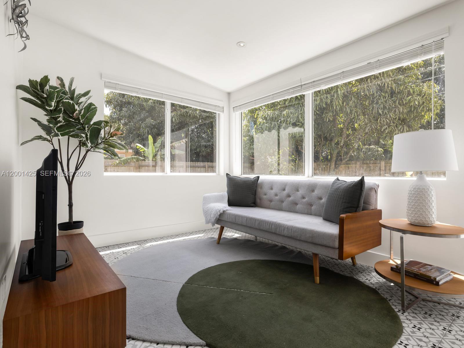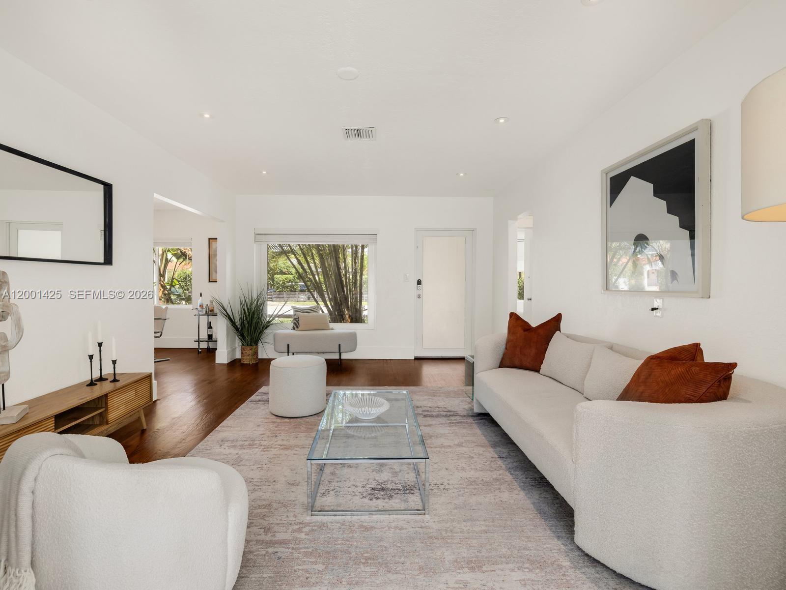 A rare opportunity to own in Miami Shores under $800Kâwithout sacrificing condition or charm. Welcome to The Seagrape Charmer! This turnkey 3BD/2BA home offers 1,433 SF on a 7,725 SF lot, featuring a new roof (2025), all impact windows/doors, and a new septic system. Warm wood floors run throughout, leading to a bright living room with a picture window overlooking the front garden. The open kitchen is updated with quartz counters and stainless appliances, flowing seamlessly into dining. Two spacious guest rooms sit on one side, while the primary suite is tucked privately in the rear with a walk-in closet and en-suite bath. A sunny Florida room with charming encaustic tile floors and wraparound windows adds flexible living space. Outside, enjoy a peaceful, fully-fenced backyard with mango tree, patio, and room for a pool. One-car garage + laundry room. Non-flood zone. Positioned near Downtown Miami Shores with conveniently quick access to I-95 via 103rd Street. A tremendous value in the Village Beautiful!