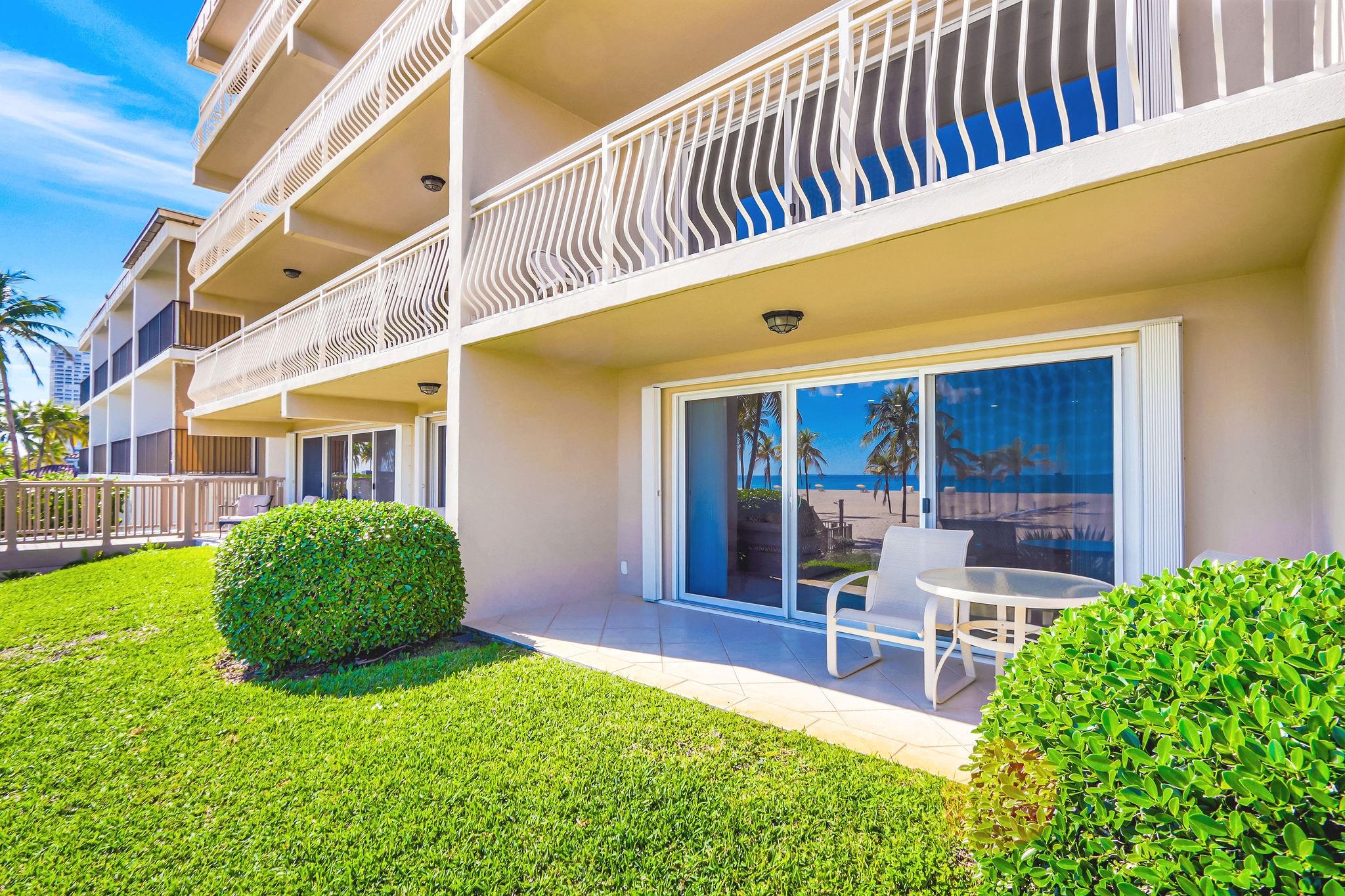 Extraordinary opportunity to own nearly 3000 sq ft of direct oceanfront in exclusive boutique bldg situated on widest stretch of beach. Rare double residence encompasses 4 bedrms, 4 full baths, 2 fully equipped kitchens, 2 expansive beachfront terraces, framing breathtaking panoramic ocean views. Designed for privacy & flexibility, it is ideal for multi-generational living, entertaining or a coastal retreat offering a blend of sand, surf, sun & palm trees steps from your patio. Unparalleled in value & size, no other property in this prestigious neighborhood offers such extensive sq footage directly on sand. Perfectly positioned adjacent to LagoMar Beach club & resort w/memberships on approval. Beachfront living at its finest. Structural cert available. Assoc reserves fully funded.