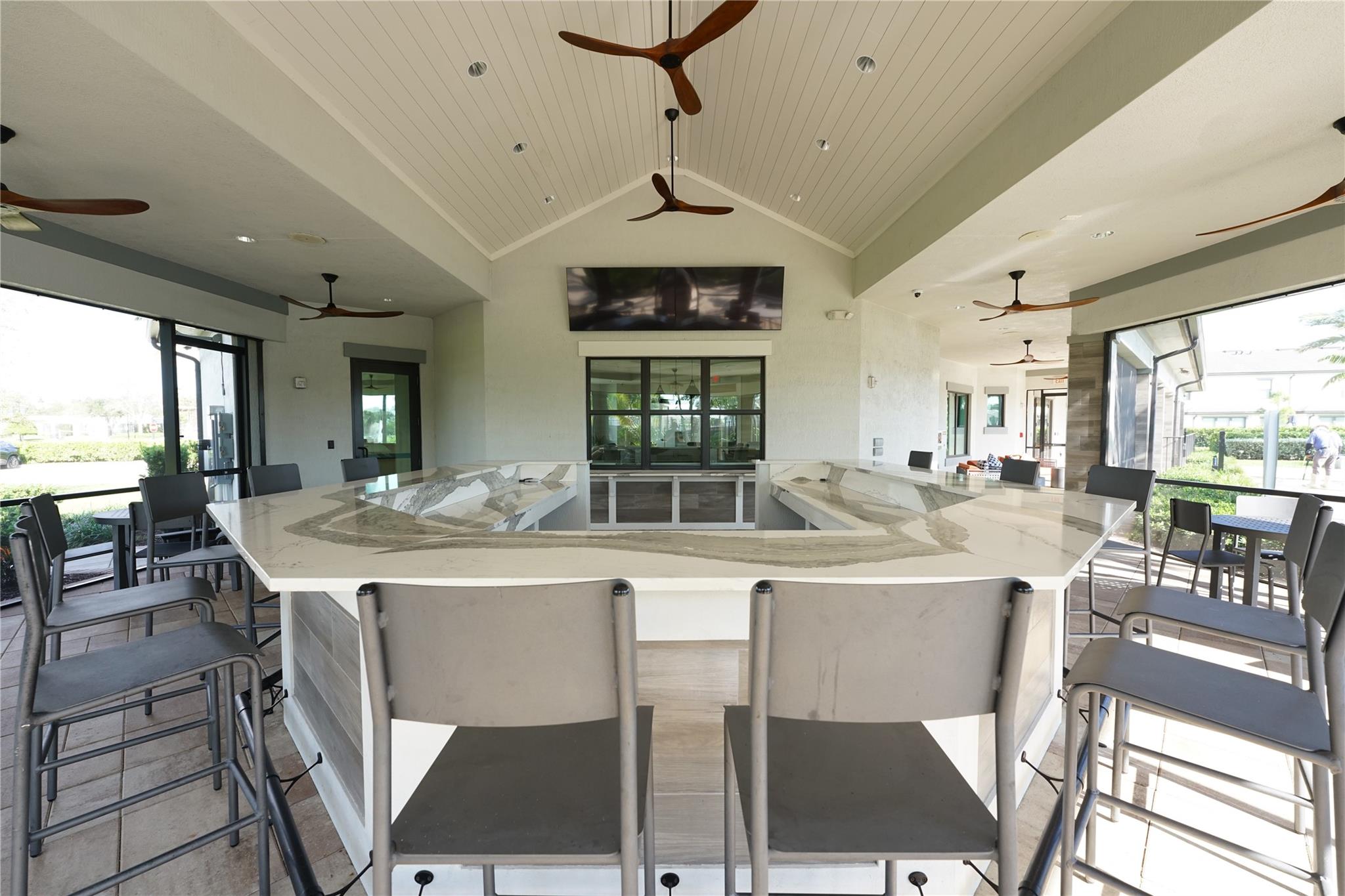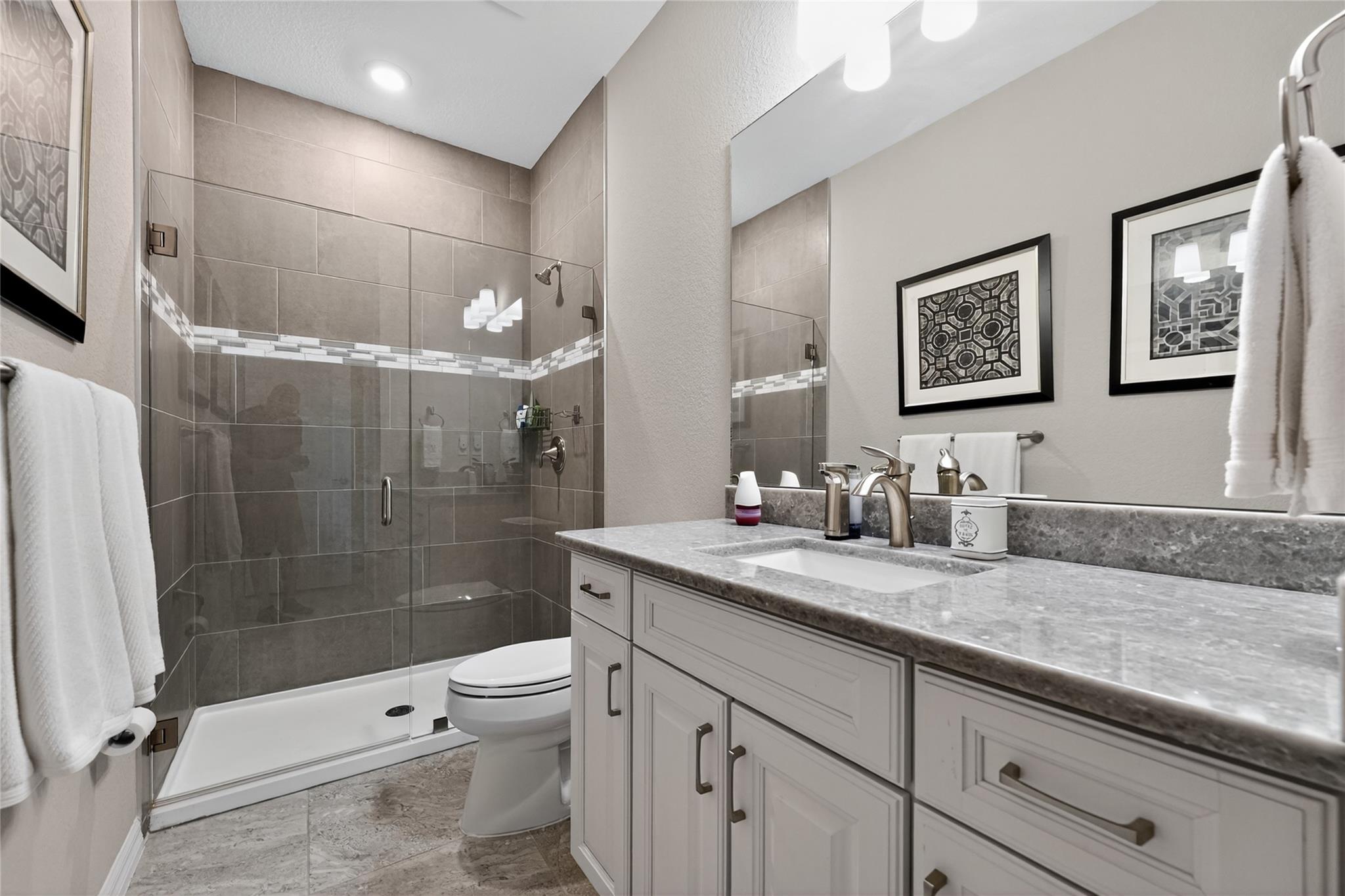 Welcome to 4460 Gramercy Dr on a cul-de-sac in gated Oak Tree, Oakland Park. Built in 2022, this two-story home offers 3 bedrooms, 2.5 baths, and 1,941 sq ft on a 7,665 sq ft lakefront lot with fountain views. Bright open plan with high ceilings, tile floors, and hurricane impact windows and doors. Quartz and stainless kitchen with large island, walk-in pantry, ample cabinet space, and screened patio for sunrise lake views. Upstairs laundry room and spacious loft. Primary suite with a walk-in closet and extra-large glass shower. Two-car garage with ceiling storage and floor cabinets. Resort amenities include a clubhouse bar, gym, pool, pickleball, grills, fire pit, hammock, and sand garden. HOA includes all landscaping and high-speed internet for easy living.