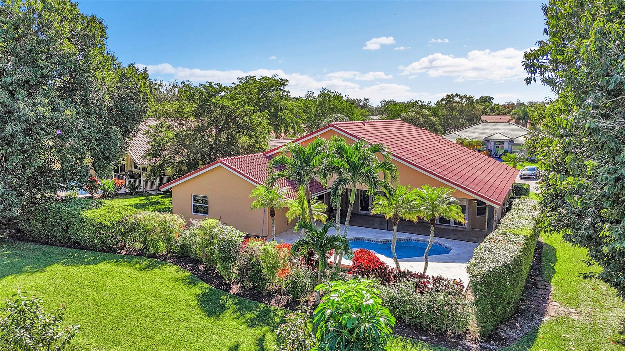 Discover this beautifully updated home located on a quiet cul-de-sac in the prestigious gated community of Eagle Trace. A spacious circular driveway welcomes you inside to soaring vaulted ceilings, bright open living spaces, and a layout designed for comfort and style. Enjoy a newly renovated pool and patio (2024), perfect for relaxing or entertaining. This home offers peace of mind with major upgrades including: new entry doors (2024), a newer roof, A/C, and electrical panel (all within the last 3 years), impact windows & doors, and a tankless water heater. Additional features include & EV charger, updated bathrooms, and a newer sprinkler system. Enjoy this move-in ready home with modern upgrades throughout, that offers a perfect blend of luxury, convenience, and an exceptional lifestyle.