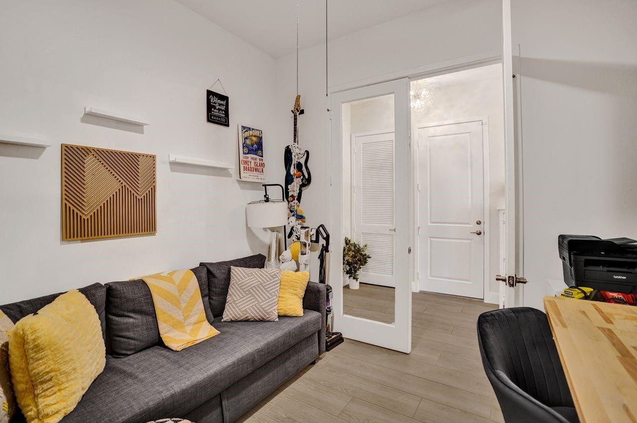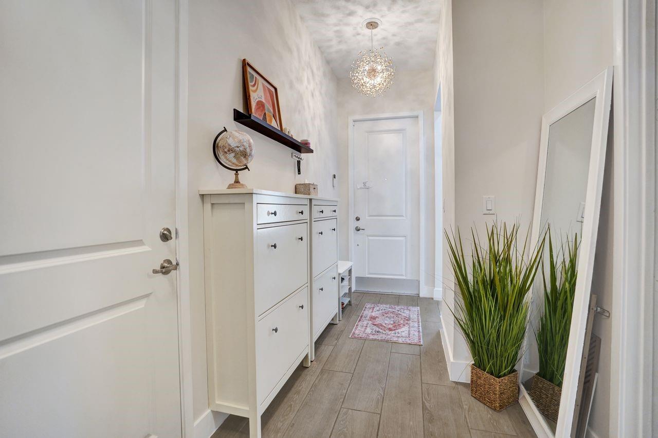 Beautiful upgraded home only 5 years old. 3 bedrooms (3rd bedroom is den w/now closet & glass doors) 2 full bathrooms. Impact windows & doors throughout. Wood look tile floors throughout the entire home, no carpet. Extra thick quartz counters & 42" cabinets. Pendant lighting over the kitchen island. Bathrooms are upgraded w/wainscoting. Primary bedroom has 2 closets & dual sinks & private toilet. Screened patio. Tray & high ceilings w/high hats. Community HOA includes landscaping, cable, pool, tennis, card rooms, gym, yoga studio & more. Close to shopping, the Delray famous marketplace & Avenue with shopping & restaurants. Just a few miles to the Glamorous Beaches of Delray. Close to turnpike. This home is a 13th floor construction. Come & bring your toothbrush to move right in.