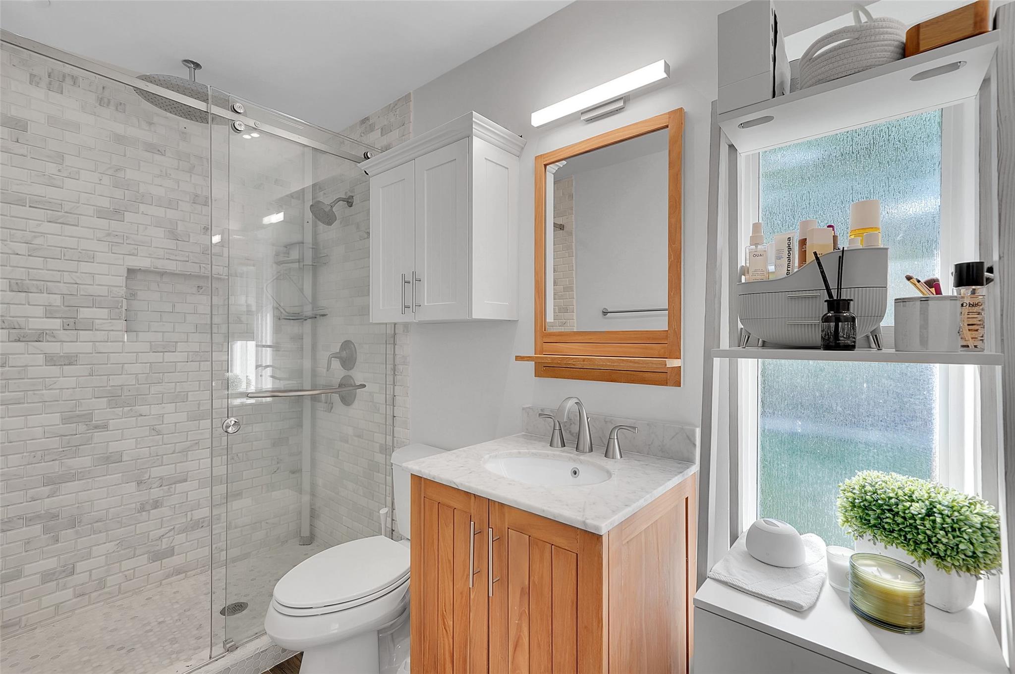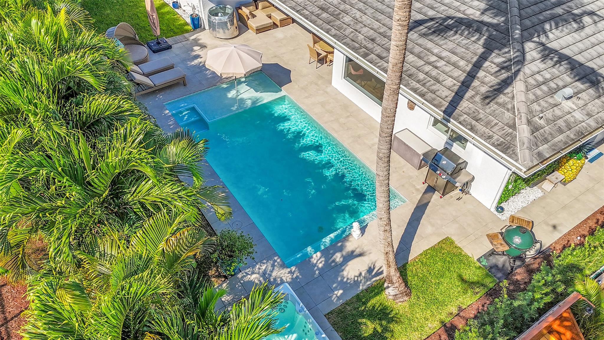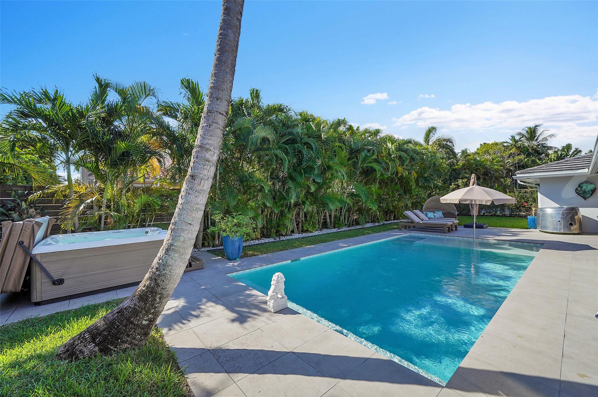 Completely renovated 3BR/2.1BA East Boca home on a quiet dead-end street. Features include a fully fenced tropical backyard with a heated saltwater pool, Hot Springs jacuzzi, outdoor shower, new landscaping, energy-efficient water heater, new outdoor lighting, PVC plumbing, and full impact windows/doors. Interior highlights include an open kitchen with quartz counters, stainless steel appliances, gas stove, and Italian porcelain tile throughout. Two-car garage with new high-efficiency A/C unit and an interior laundry room. Modern finishes throughout with a private outdoor setting ideal for year-round enjoyment. Entire home has been remodeled. Move-in ready. No HOA.
