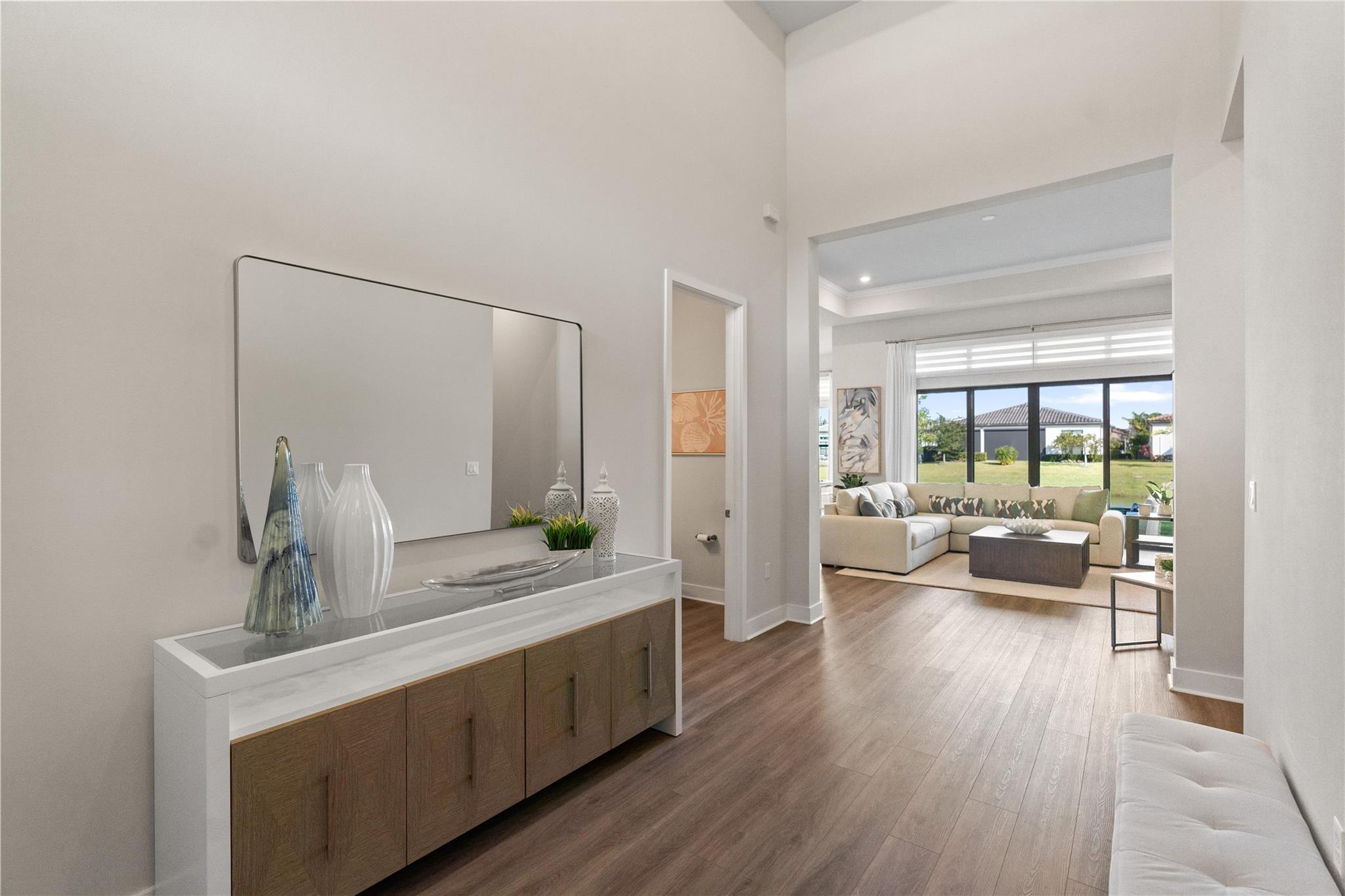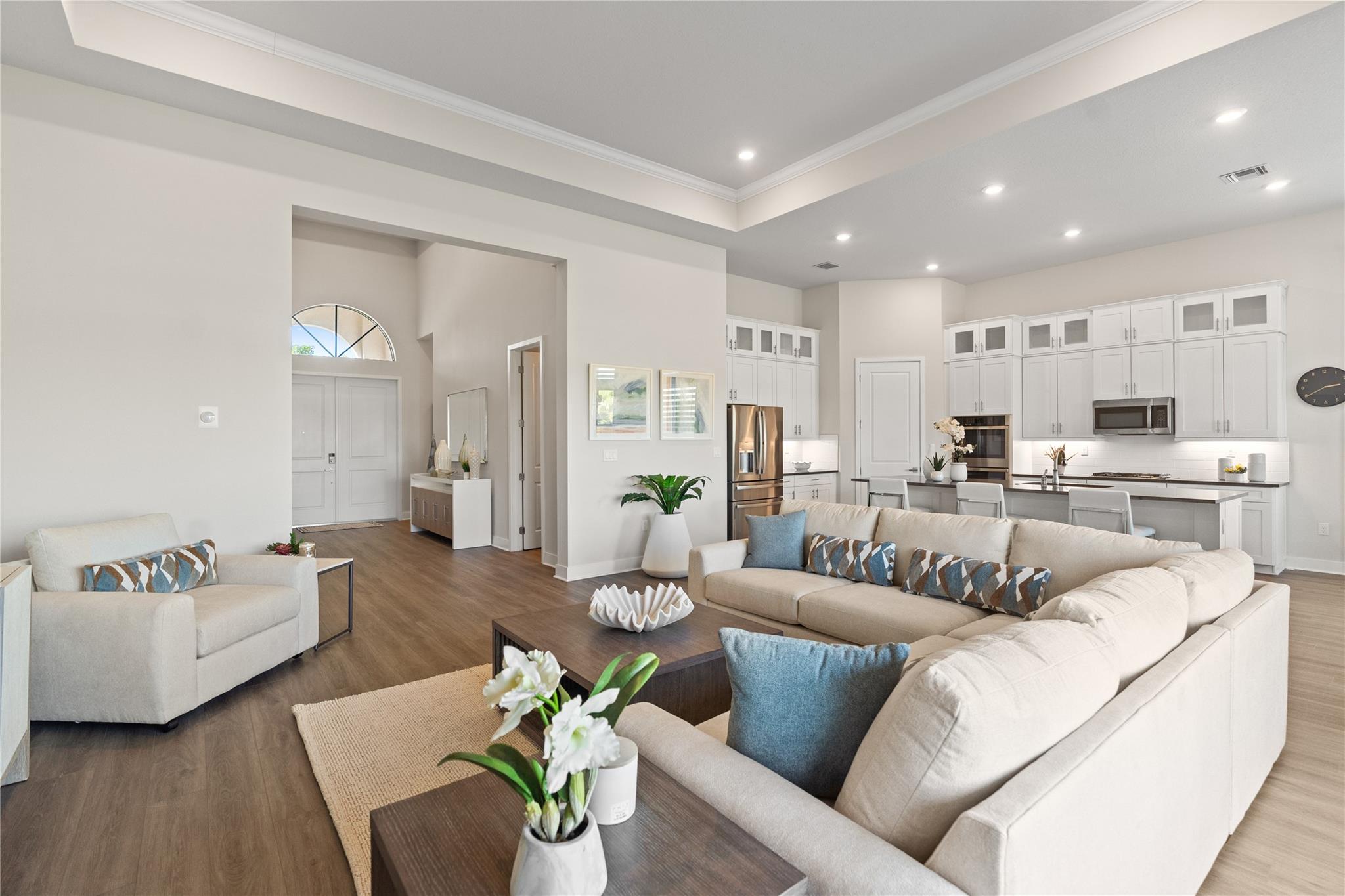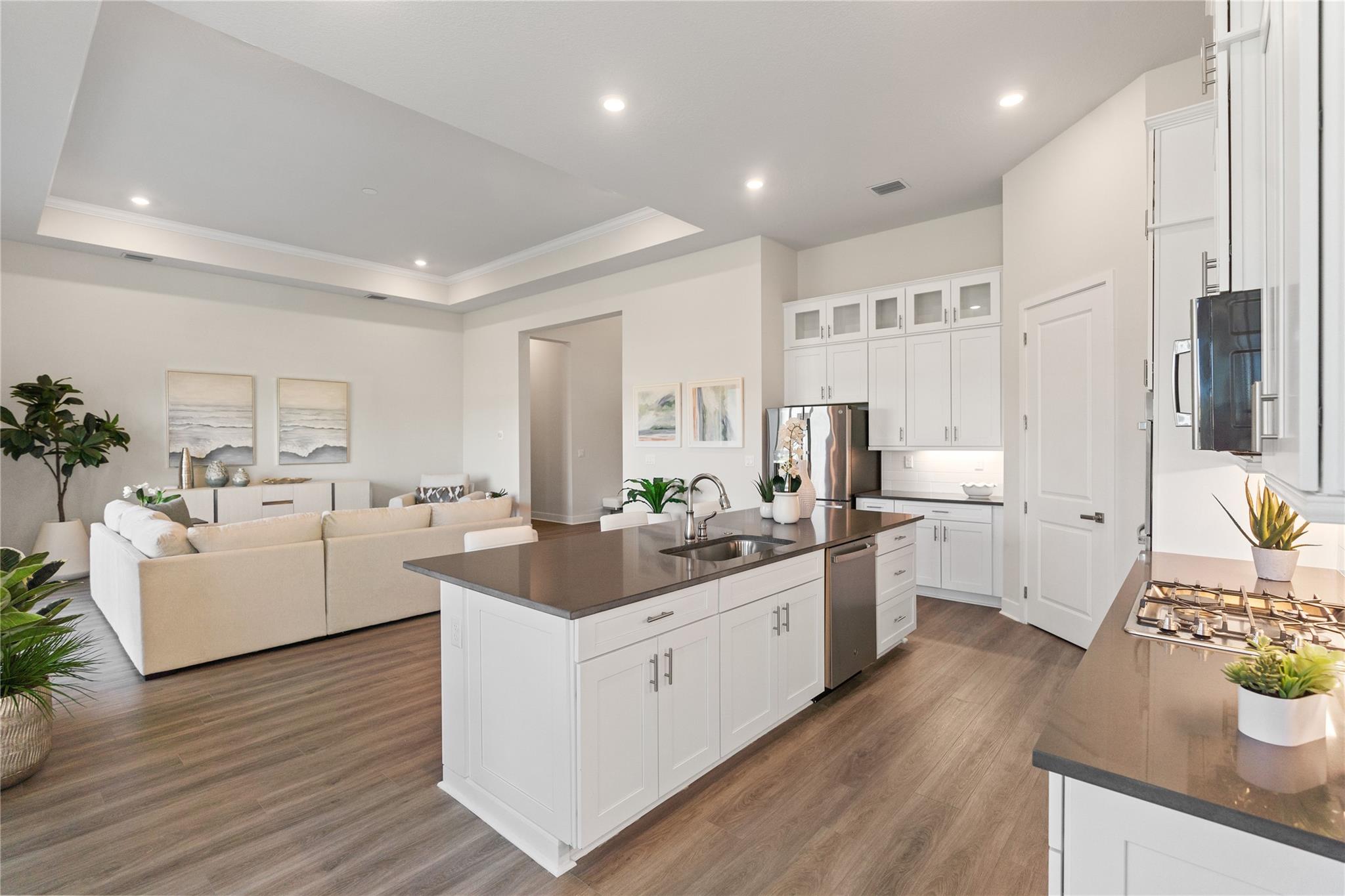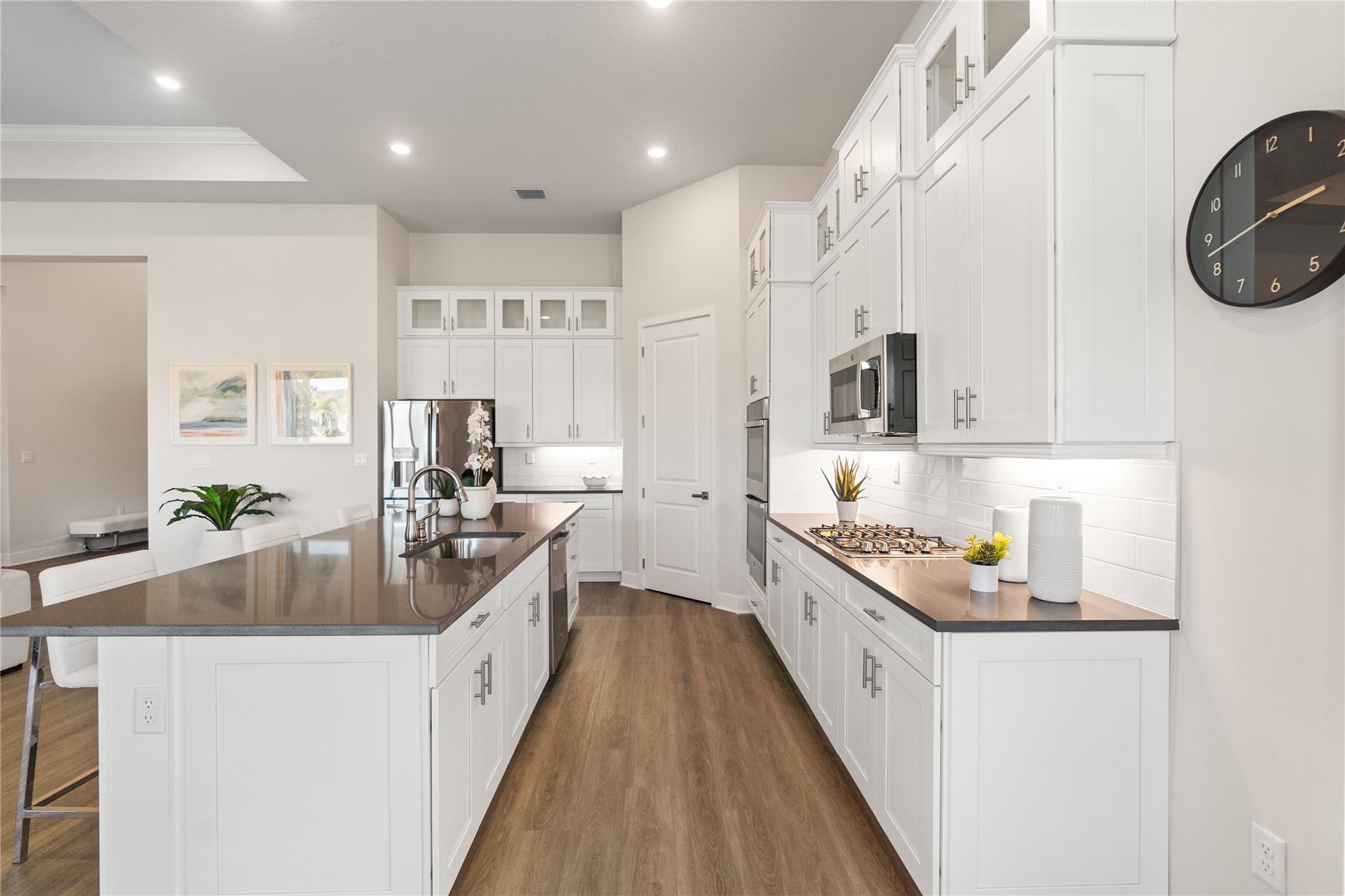 The Falls of Parkland community features a 24,000 sqft clubhouse with great amenities. This popular Andros Model boasts 3 bedrooms 2 ½ bathrooms. Kitchen with tall white cabinetry, Modern Quartz Countertops, French Door Refrigerator & Gas Cooktop, Large Island and a great Walk-In Pantry, Large covered Lanai Paver Patio with tropical community maintained landscape.