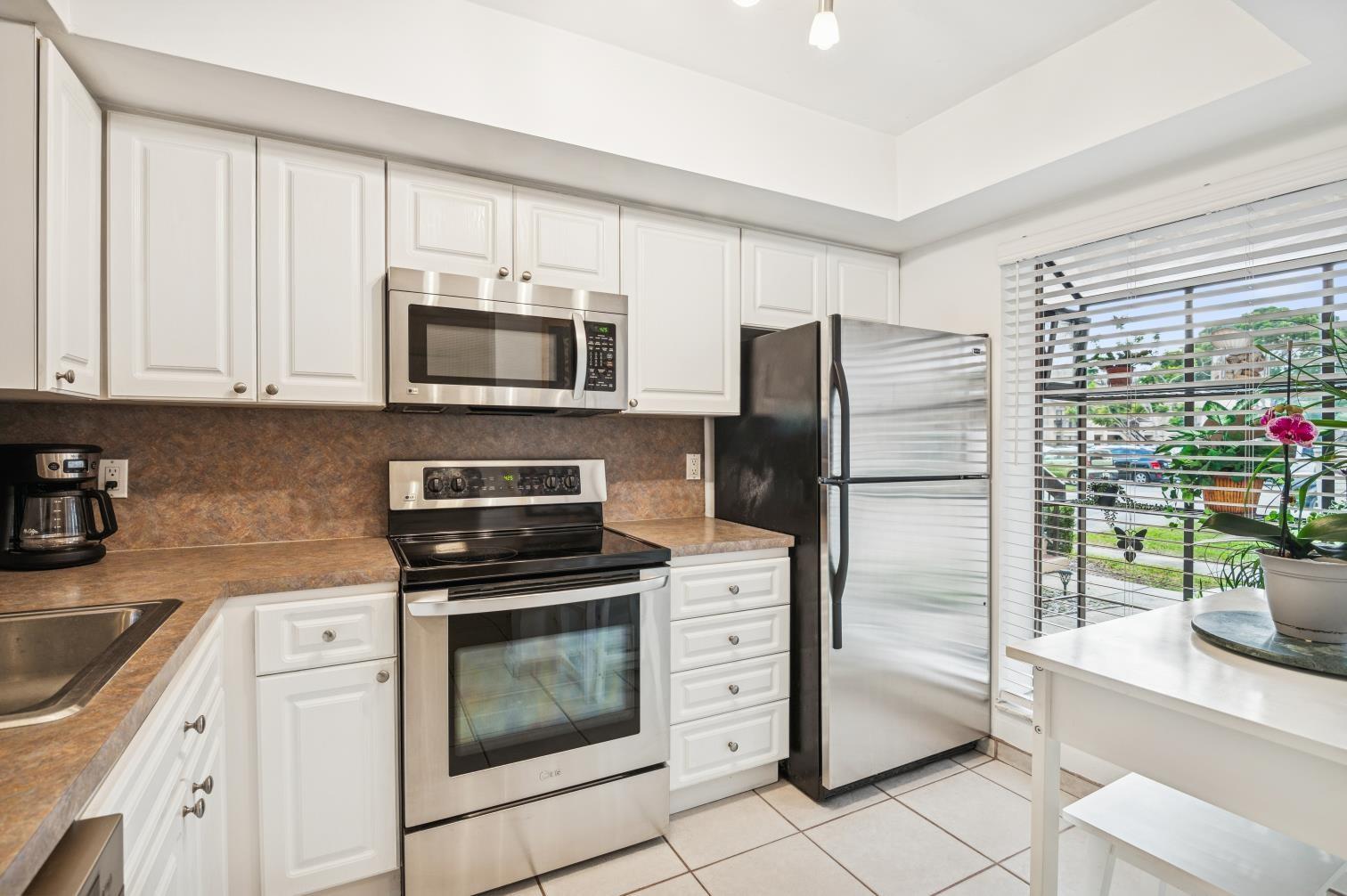 Welcome to Paradise! This spacious and beautifully updated 3BR/2BA first-floor corner residence offers stunning lakefront views in the highly desirable Meadowridge community—just steps from the clubhouse and pool. Freshly painted in modern neutral tones, the home features a bright white kitchen, updated bathrooms with newer vanities, and tile flooring throughout for easy living. Enjoy the serene outdoors from your screened-in patio with roll-down shutters, perfectly positioned to capture tranquil lake, fountain, and garden views. Situated in a prime location close to pristine beaches, top shopping destinations, dining, and major highways, this home blends comfort, convenience, and resort-style living. Your slice of paradise awaits!