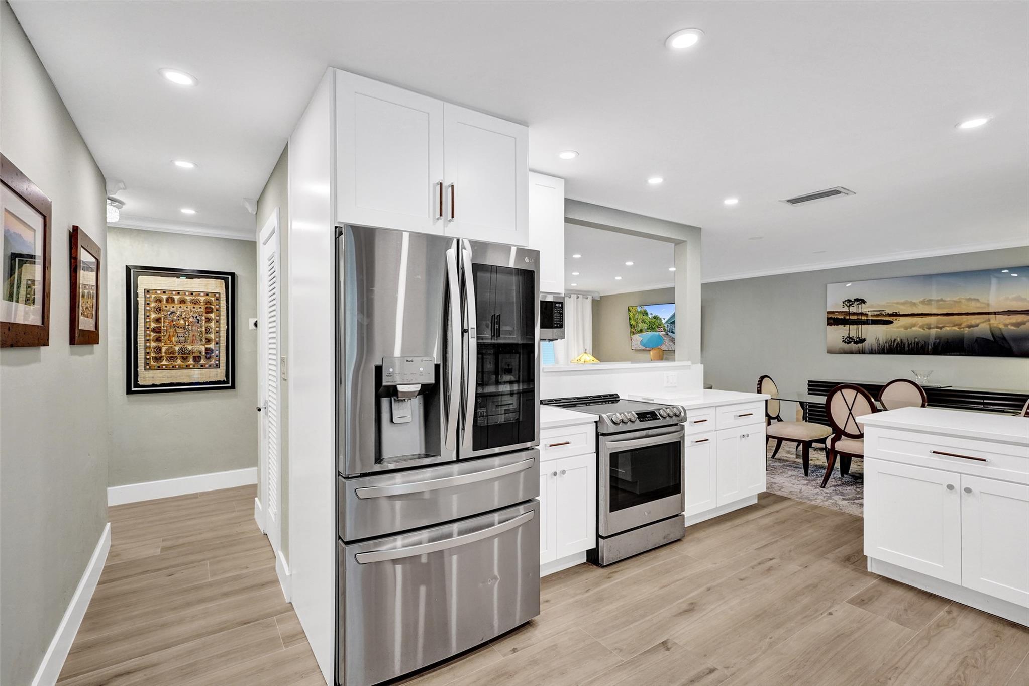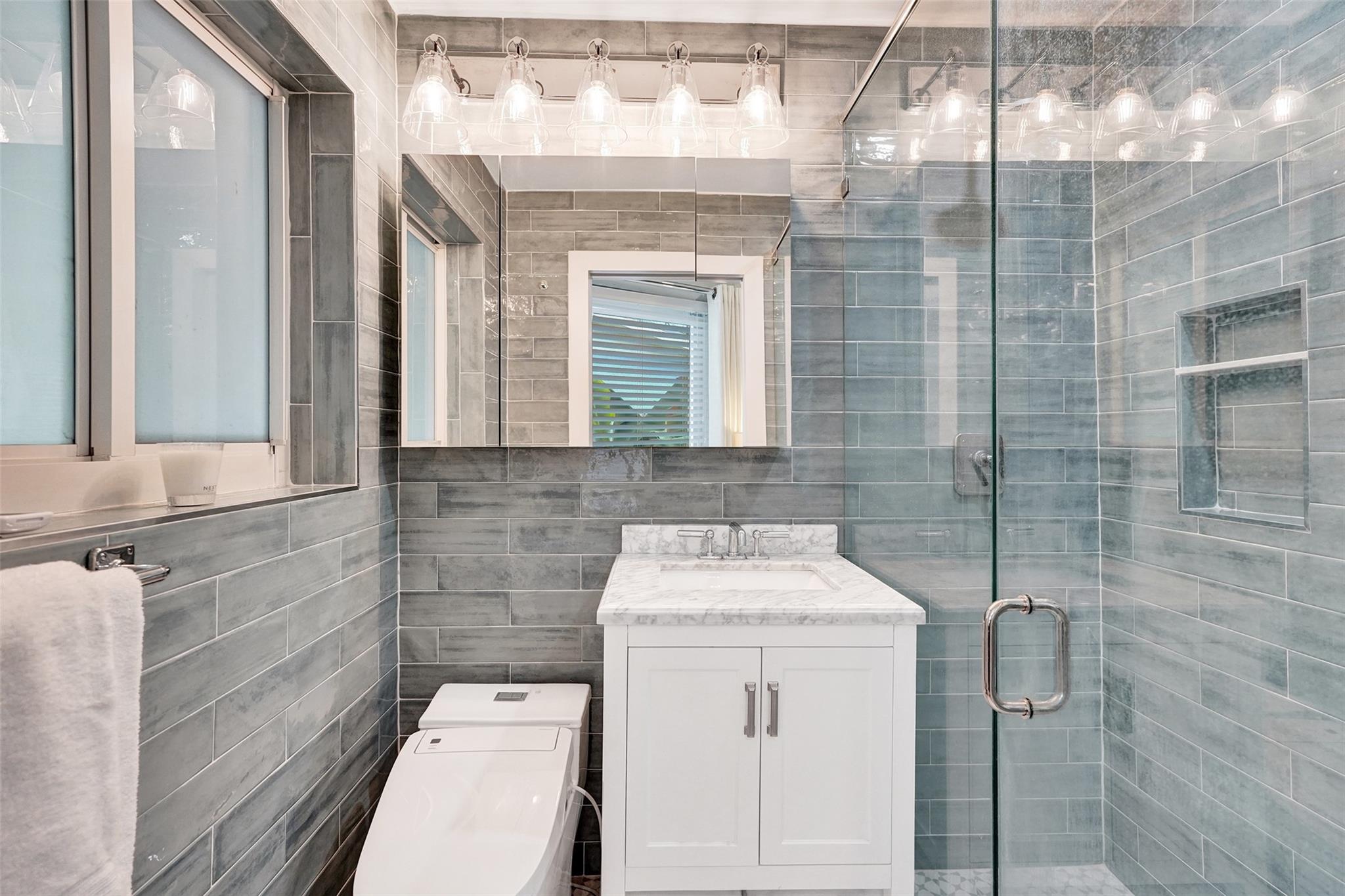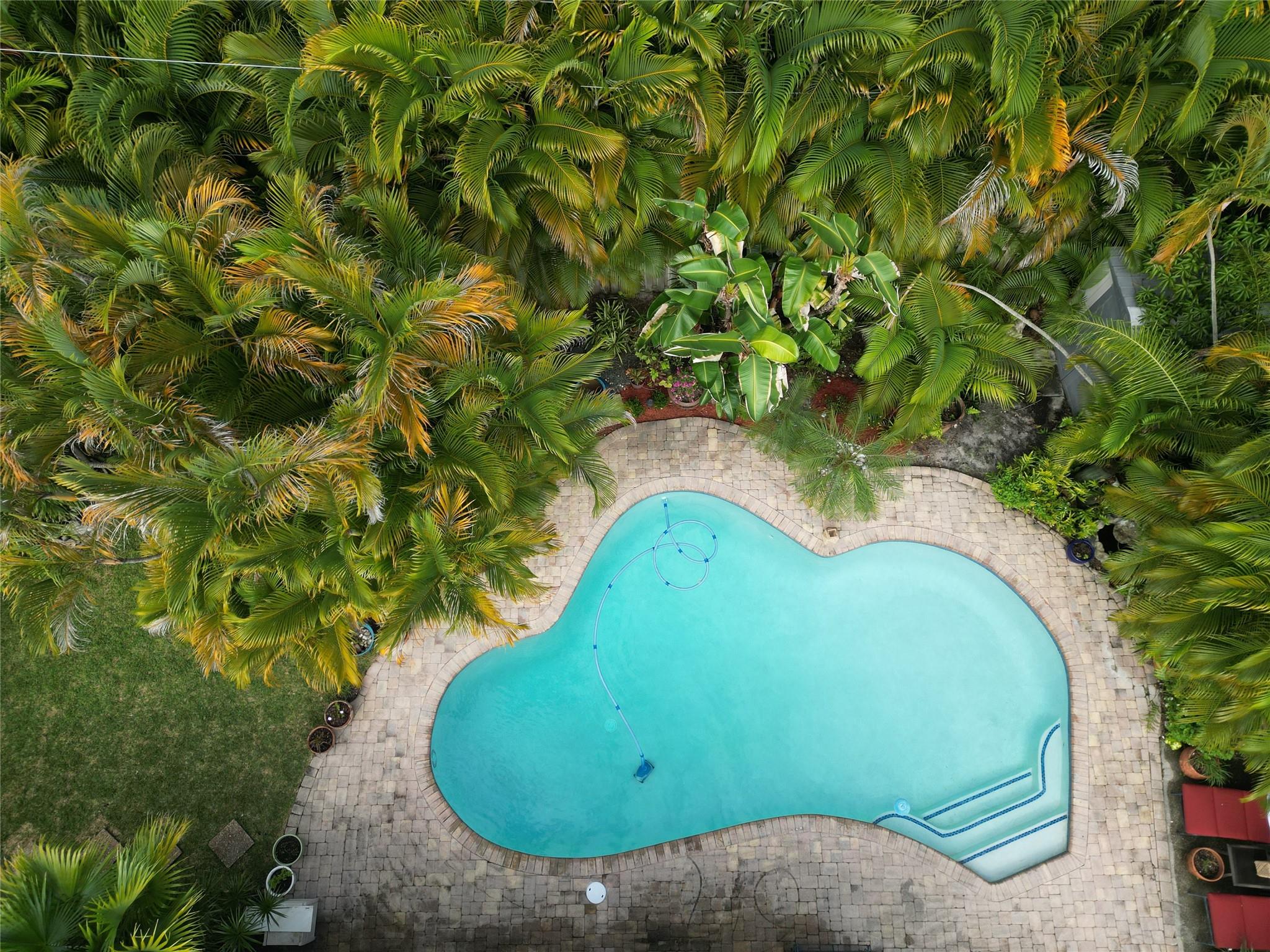 Beautifully Renovated 3 bed 2 bath pool home in East Wilton Manors w/ semi circle driveway and cozy screened front porch. This totally renovated home has a great layout with spacious living room, open kitchen, and dedicated dining area that leads to a large screened in Florida room overlooking the private tropical back yard and pool. Consistent tile flooring throughout the living spaces, recessed lighting, high end finishes (waterworks fixtures in baths), and frosted glass interior doors. Converted garage with AC would make a great 4th bedroom / guest space, den, home gym, or office. Impact windows and doors. Roof replaced in 2022, HVAC 2019, Diamond Brite and pool pump 2025. Located in a quiet neighborhood close to Wilton Drive, Fort Lauderdale, the beach, restaurants & shopping.