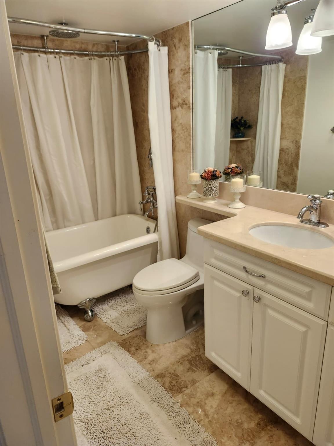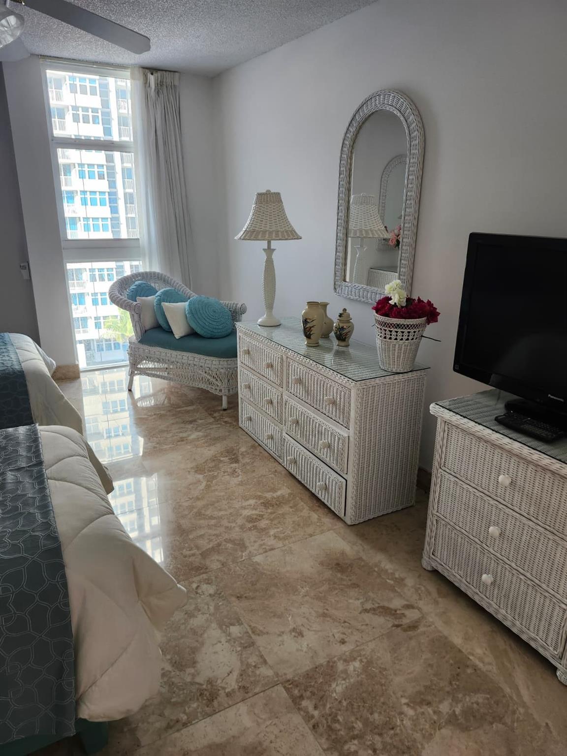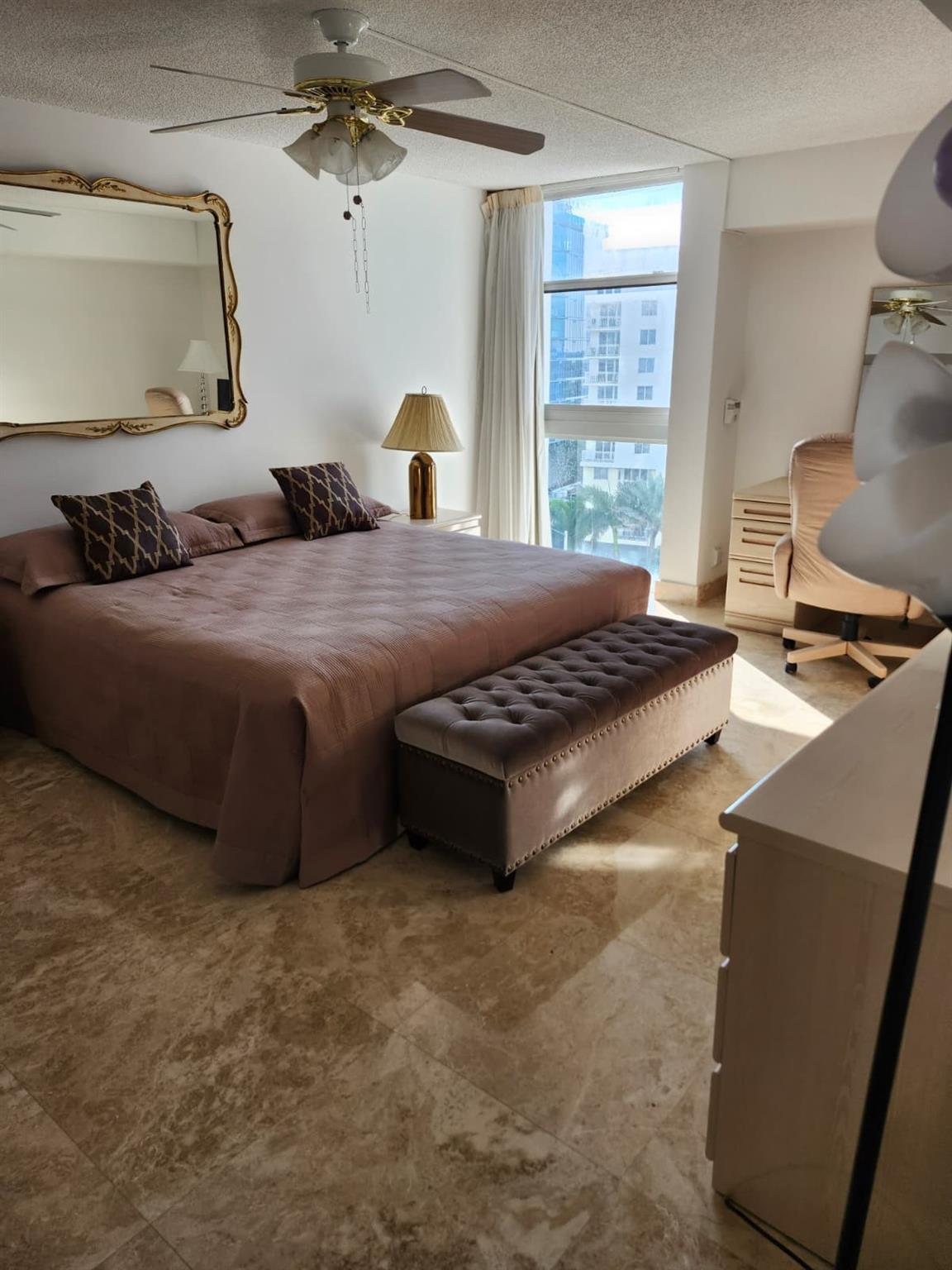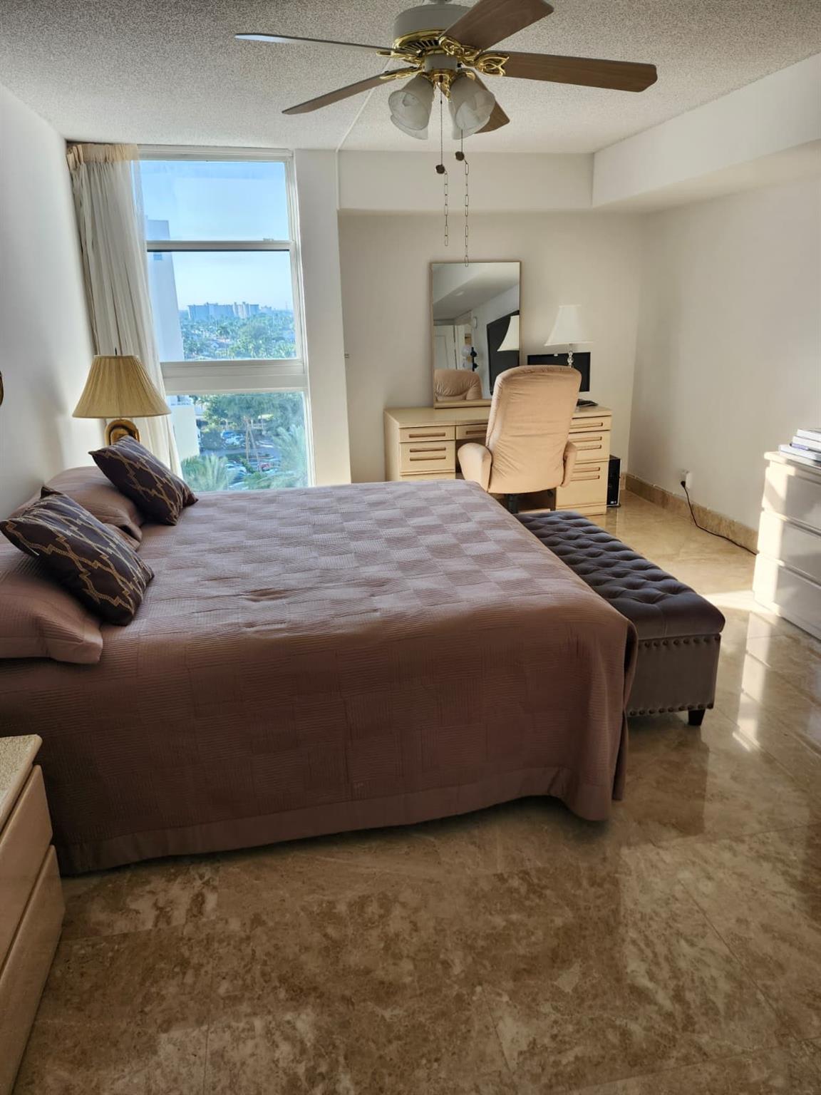 Come relax in this amazing apartment. Enjoy the beautiful Ocean and Intercoastal view from the two balconies Spacious 2/2 with Washer & Dryer. Fully renovated with Marble floors, renovated bathrooms, renovated kitchen with a full size window where you can make a delicious meal and still enjoy a nice city view. Impact Windows and Doors for your own piece of mind. The complex offers Resort style amenities: Sauna, Jacuzzi, Heated Pool, Private Beach, Tennis/pickleball court, Fitness Center, BBQ deck and a top floor Sky Lounge with breathtaking view of the Ocean & Intercoastal for your enjoyment, where you can host your own private party. Cable and Internet included.