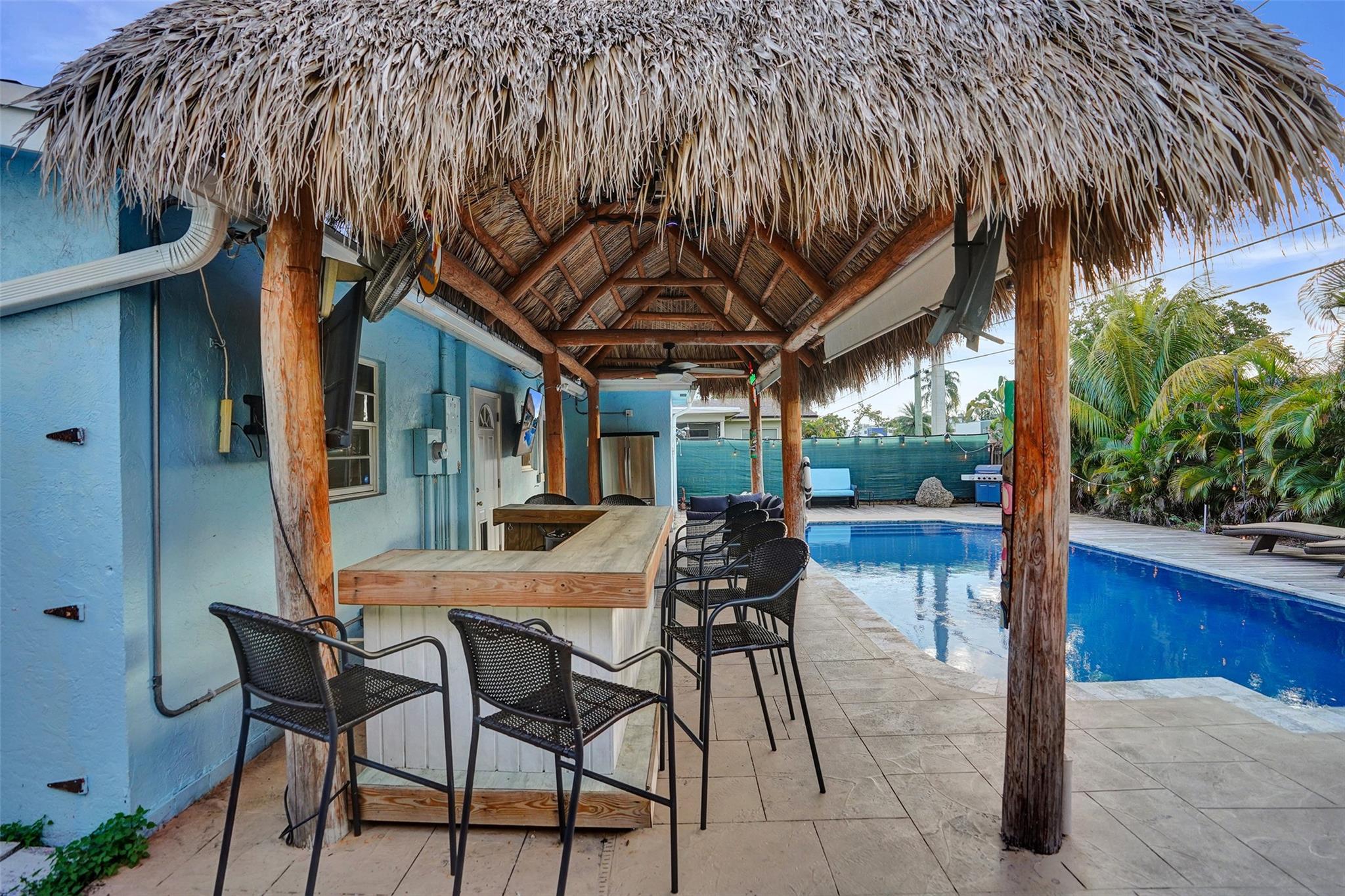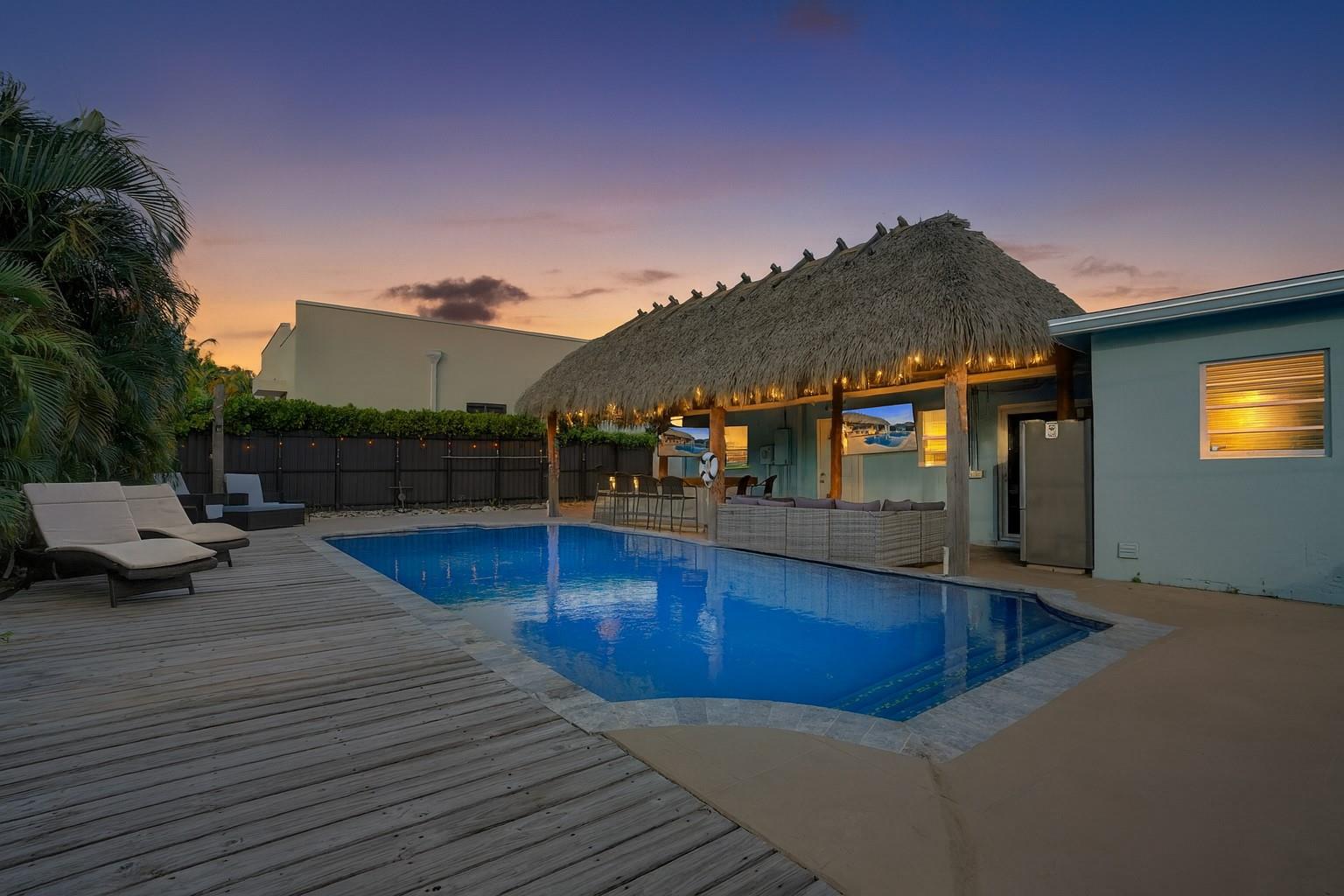 Discover your private tropical retreat in this 3 Bedroom, 2 Bathroom home in desirable East Oakland Park. The backyard offers a resort-style escape with a sparkling pool and an expansive tiki hut perfect for relaxing or entertaining. Inside, enjoy a bright open concept with a split floor plan for both flow and privacy. The kitchen and living areas connect seamlessly, complemented by a 2023 roof and interior laundry room. The primary suite opens directly to the backyard, while two additional bedrooms offer versatile use. A one-car garage provides added storage or potential flex space. Minutes to the beach, downtown Oakland Park, Wilton Drive, and top local dining this home blends comfort, style, and the South Florida lifestyle.