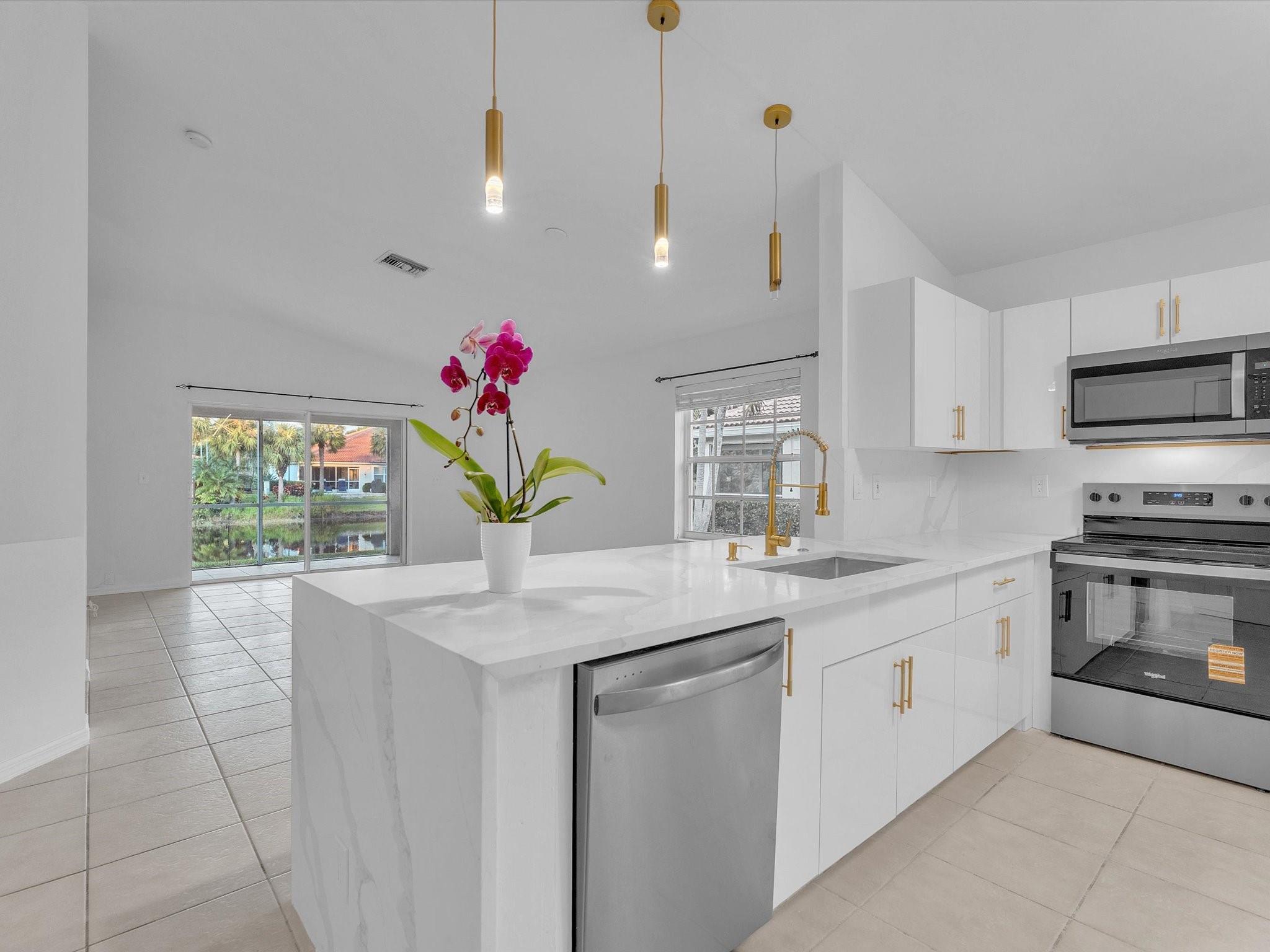 Recently Renovated & Absolutely Gorgeous Lake Facing 3 Bed 2 Bath Corner Unit Villa in the Gated Community of Sierra Vista in Heart of Delray! New Kitchen Cabinets, New Countertops with Bookmatch Waterfall & Full Backsplash! New Tiles in the bathrooms. New Recessed Lights, New Modern Toilets, New Faucets, New Stainless Steel Appliances. No popcorn, Freshly Painted. Community includes Clubhouse, Tennis courts and Pool! Close to Major Highways, Shopping, Restaurants & the beach!