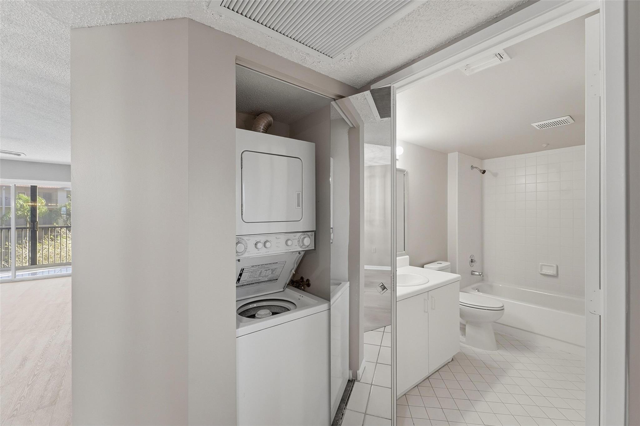Come call Century Village in Pembroke Pines home this Spring. This 2 bedroom and 2 bathroom split floor plan home is located on the 3rd floor, screen in balcony, split floor plan, walk in closets, screened in patio and a washer and dryer in the condo. Brand new luxury vinyl in the main living space and in the bedrooms and fresh new paint was just completed. This location is right next to the community pool. Enjoy a gated community, elevator by the condo, pool, gym, tennis, pickleball, shows, bus transportation and more! Near Pembroke Gardens, BJ's, I-75 and Pembroke Lakes Mall. Seller is motivated. Parking spot 58.