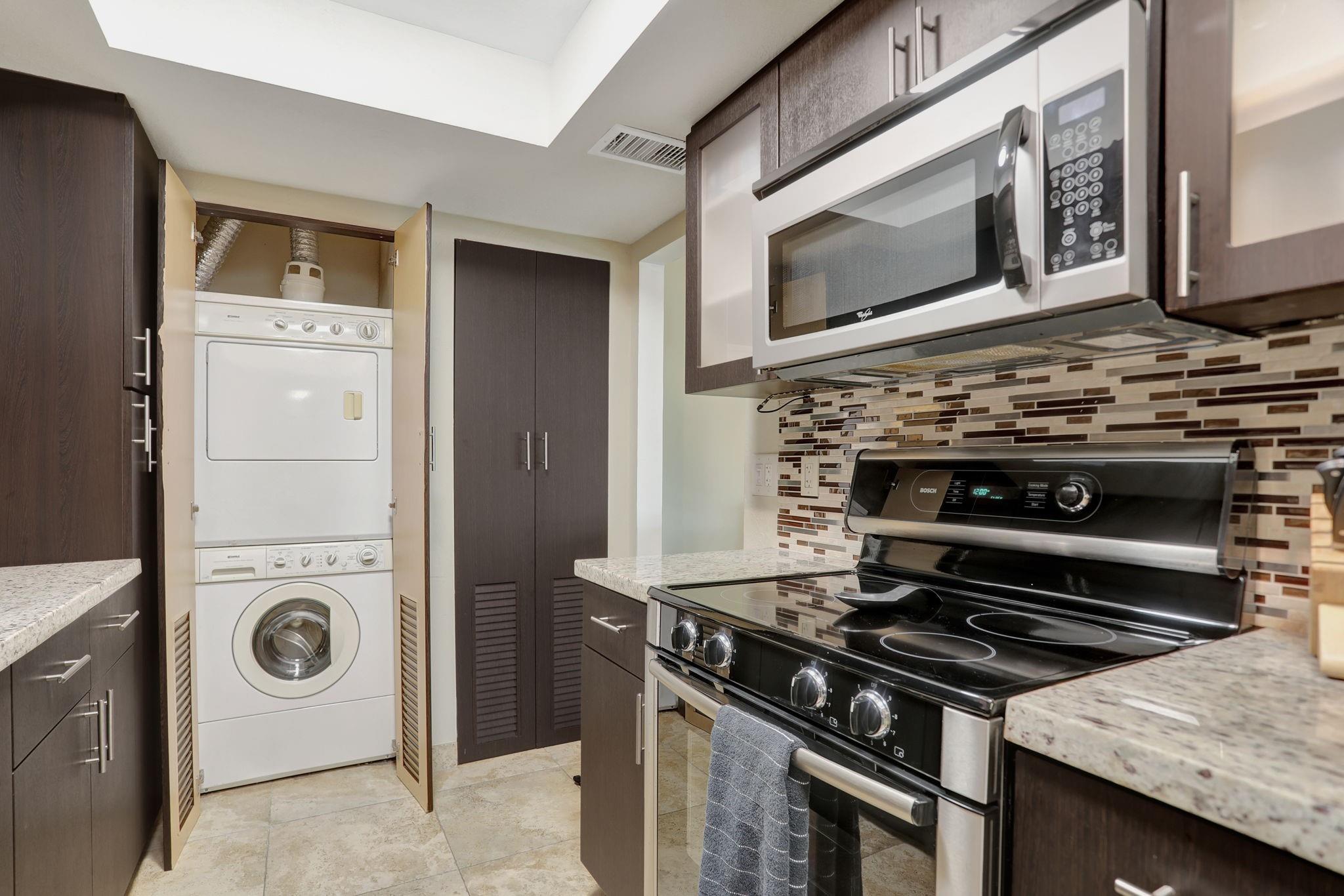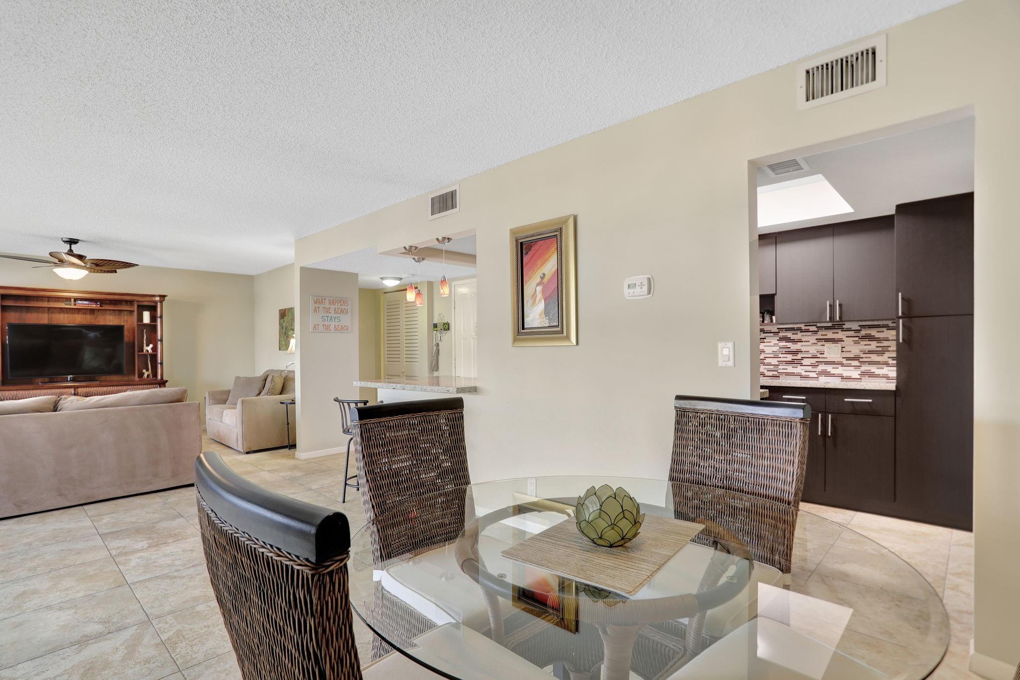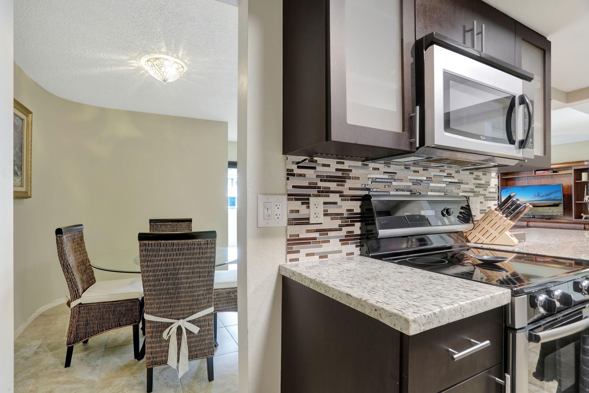 Penthouse Corner Condo with Ocean Views! Over 1200 total sq ft in this 1 bedroom 1.5 bath on 5th floor. Updated Kitchen with Granite Countertops & Stainless Appliances, Tiled flooring in Living Area. Hurricane Impact Windows & Sliding Doors plus Shutters. Plantation Shutters in bedroom. Washer & Dryer in Condo! Huge Covered Balcony! One Small Pet up to 15 lbs permitted! Lease Immediately No waiting 2 times a year with a 90 day minimum. Just blocks to Deerfield Beach Fishing Pier, Restaurants & Shopping. Resort Style Living with Pool, Hot Tub, Barbecue, Sauna & Community Room. This floor plan allows Living Area to be reconfigured to add a den and a full bath.