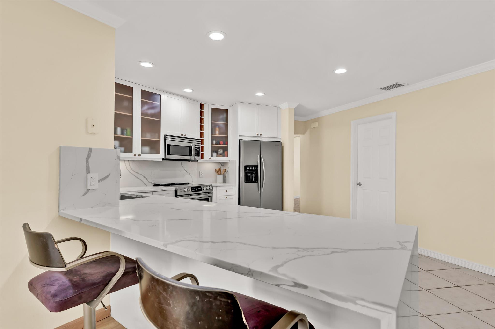 Welcome to the charming Village of Tequesta! This home perfectly blends small-town character with an unbeatable location. Inside, you'll find 3 spacious bedrooms, 2 full bathrooms, and a versatile den that can be used as an office or easily converted into a fourth bedroom. The split floor plan offers two separate living areas, giving everyone space to relax and enjoy. The newly renovated kitchen is light, bright, and open--featuring beautiful quartz countertops, newer stainless steel appliances, and a seamless flow into the dining and living areas. The main living room boasts vaulted ceilings and luxury vinyl flooring, creating a modern yet comfortable atmosphere. SEE MORE REMARKS...