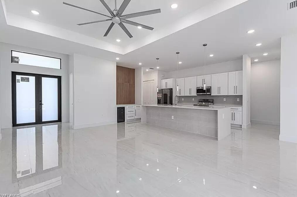 This stunning 3-bedroom, 3-bathroom + office pool home in Northwest Cape Coral offers western exposure and modern luxury just minutes from the new 7 Islands project. Enjoy soaring ceilings, an open layout, and a gourmet kitchen with stainless steel appliances, premium cabinets, quartz countertops, and porcelain floors. The bathrooms feature glass showers and color-changing mirrors, and the master suite includes a large walk-in closet. The screened lanai is perfect for sunsets and entertaining. Located in the desirable Burnt Store area near Pine Island, Matlacha, and Coral Oaks Golf Course, this contemporary home blends style, comfort, and exceptional quality.