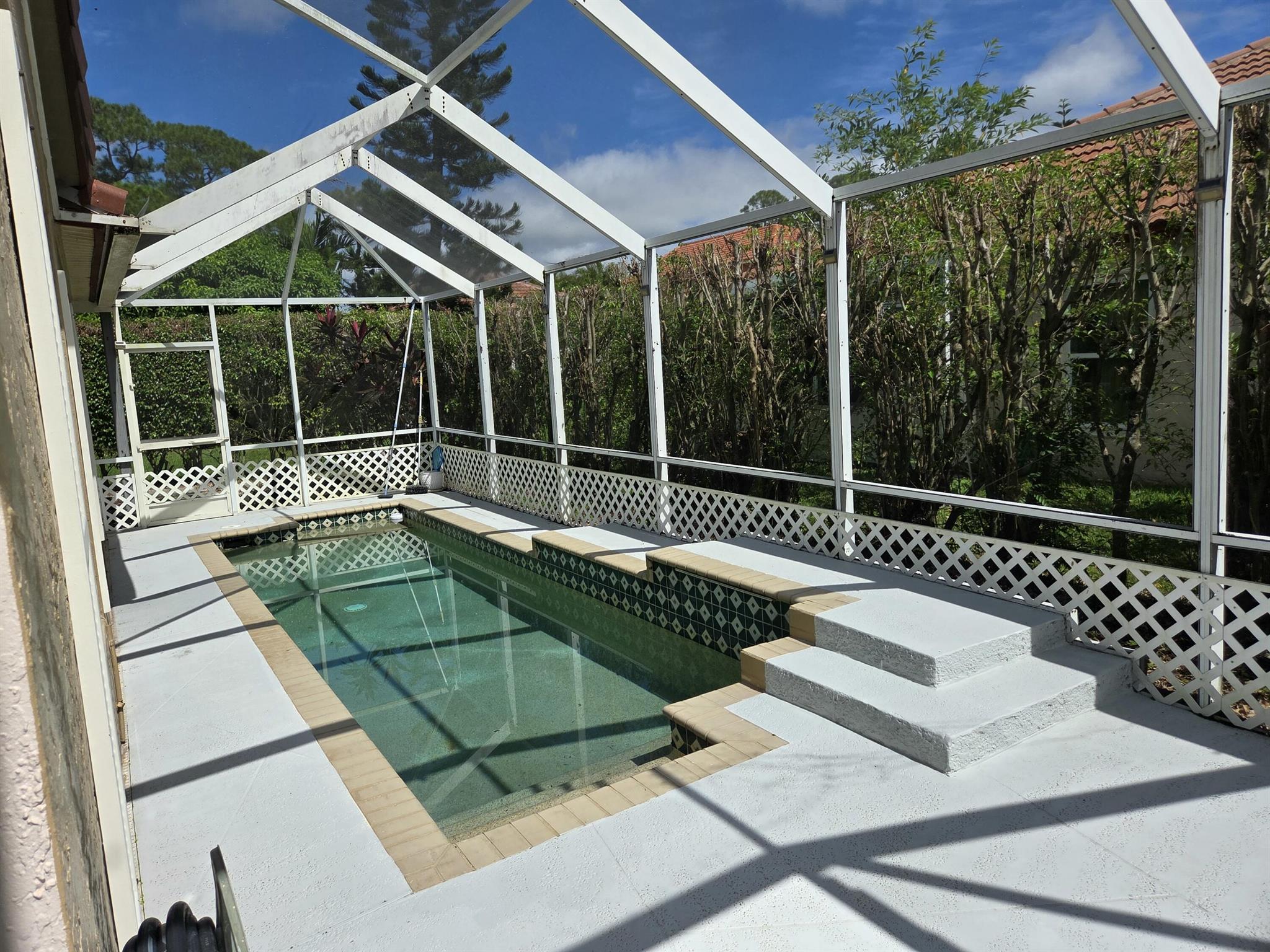 3/2/2 move-in condition in a lovely community with tile thru out, vaulted ceiling, covered patio with screen enclosure and a small pool to chill out in the hot Summer time with minimum maintenance.