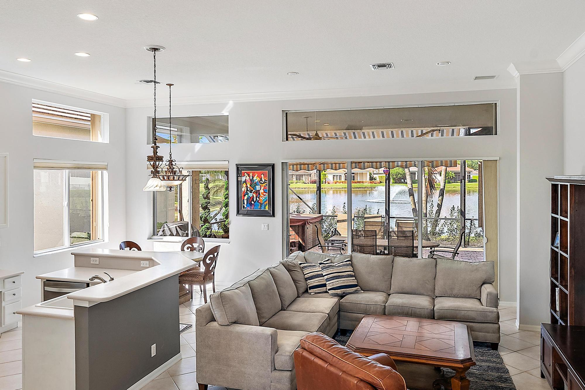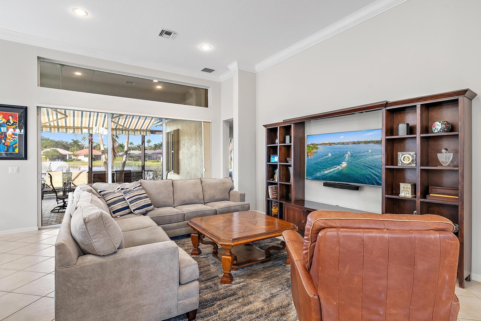 IMMEDIATE PREMIER GOLF MEMBERSHIP AVAILABLE WITH THE PURCHASE OF THIS HOME. Featuring a NEW ROOF (2020) and 2018-installed Accordion hurricane shutters, this residence offers peace of mind along with beautiful lakefront living. The expansive screened patio is ideal for entertaining and everyday relaxation, enhanced by a 2020-installed awning that provides shade and comfort throughout the day. Additional upgrades include a tankless water heater (2016), ensuring efficiency and convenience. The popular Princeton floor plan offers 2631 sq. ft. under air, with 2200 sq. ft. on the first level, making this home both spacious and highly functional. The main level features soaring ceilings and open, inviting living spaces that capture natural light and frame scenic lake views.