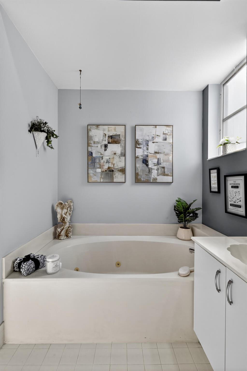 This 3 bedroom, 2.5 bath home . This home offers lots of space for entertaining, reading areas for serene enjoyment & comfort in every room. beautiful kitchen with beautiful counter, backsplash, new cabinets with pull outs, stainless steel appliances, new roof , jacuzzi tube, Nutone central vac system. Hi-hats. Skylights for natural light. Home is located in a 55+ active community. HOA covers basic cable, internet security gate, Clubhouse, tennis, lawn service