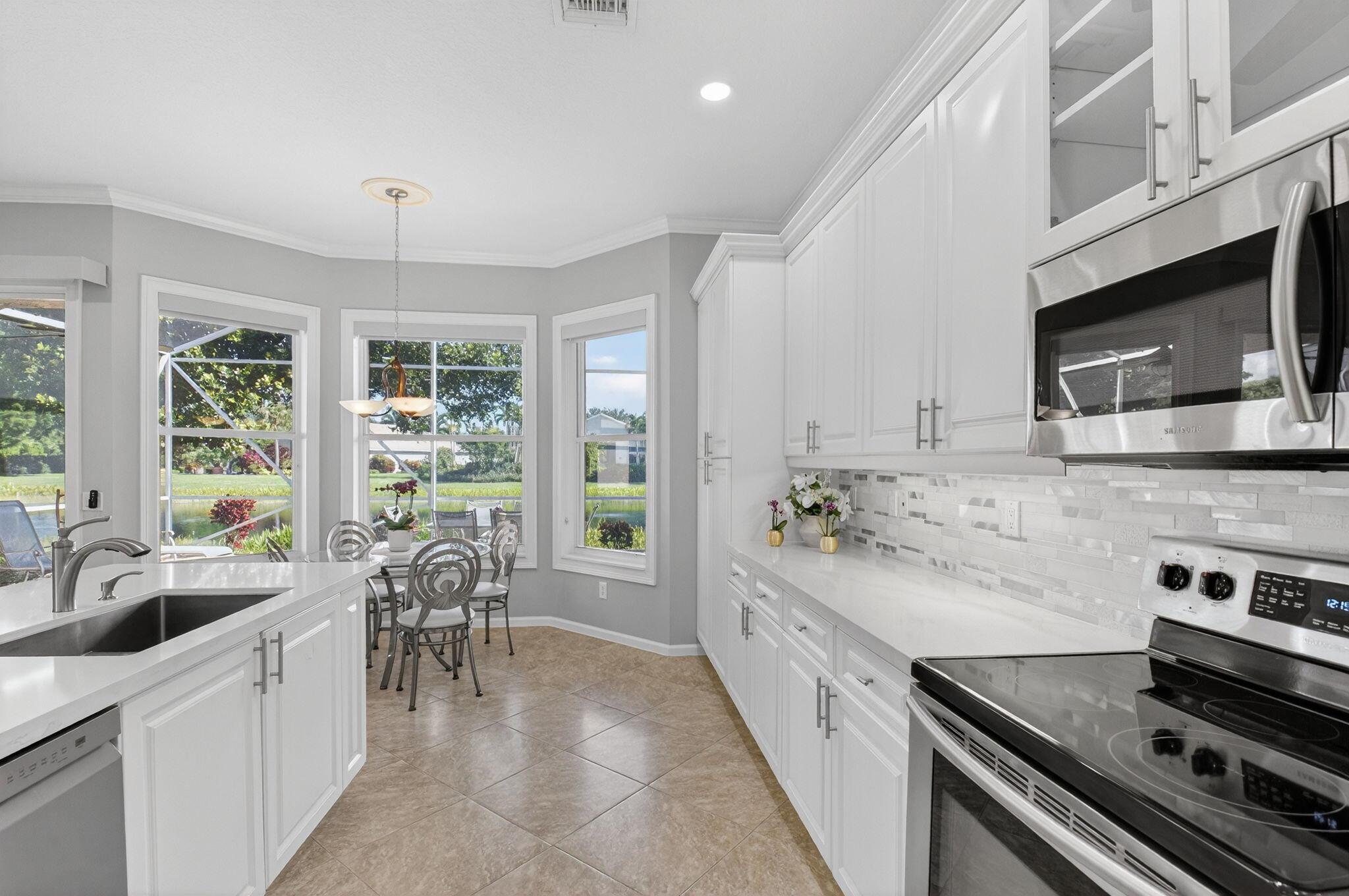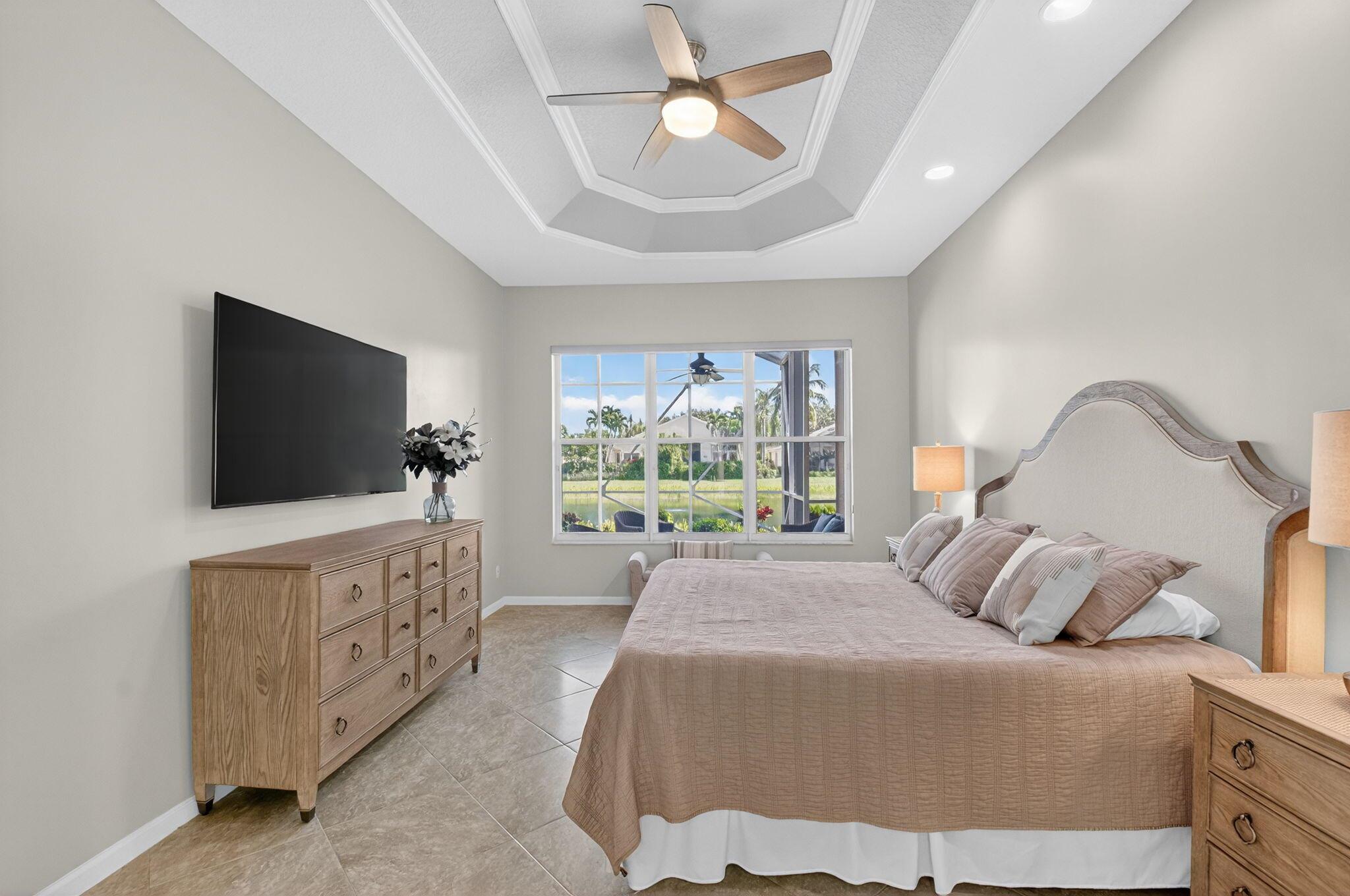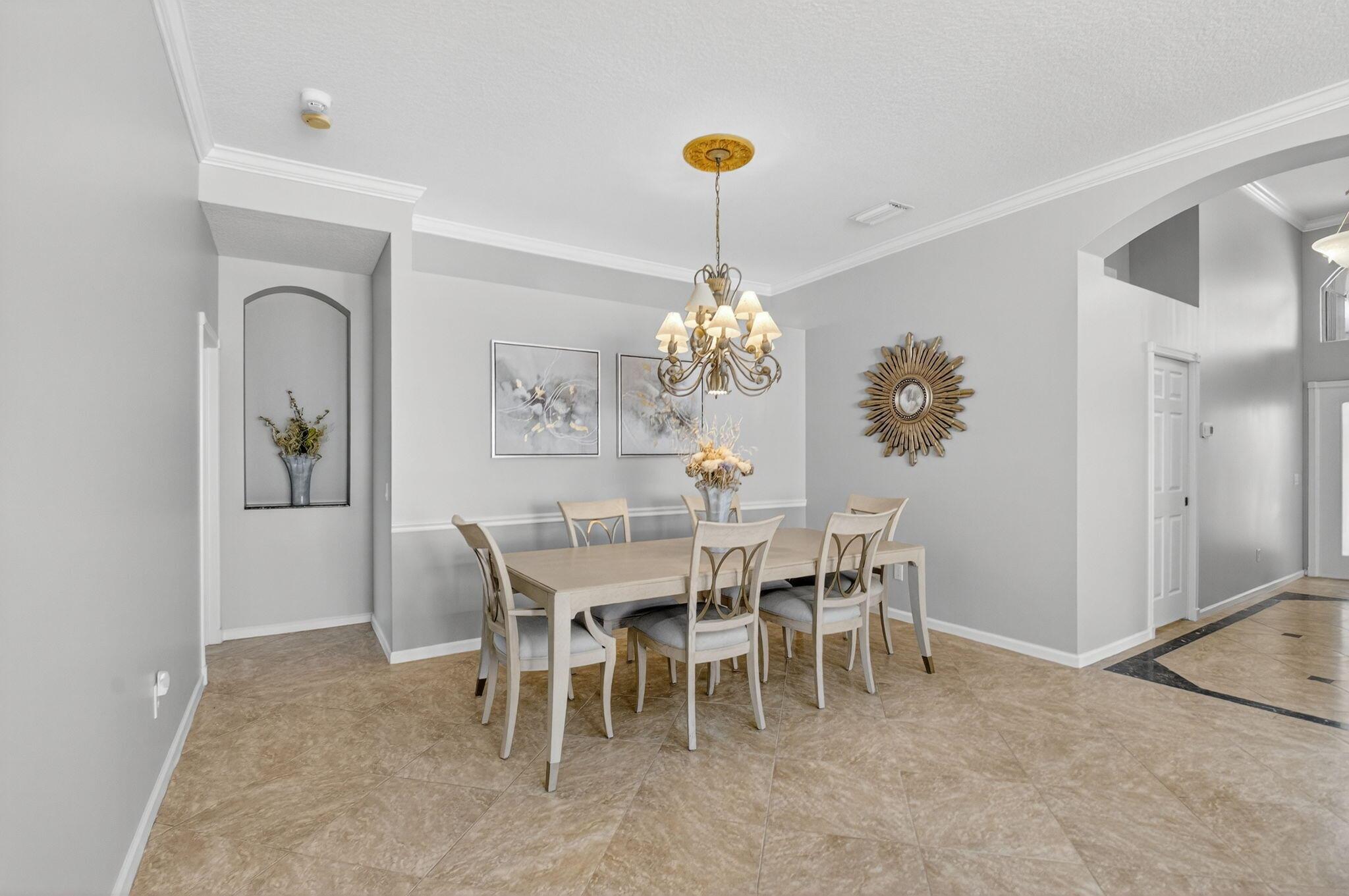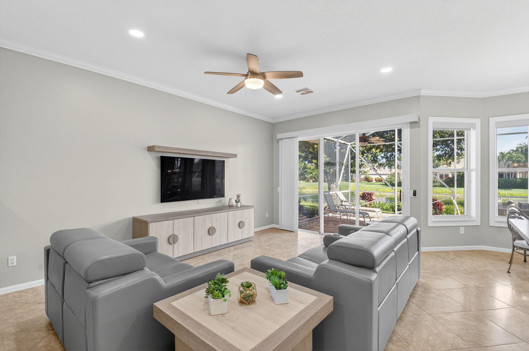 LOVELY MEDITERRANEAN MODEL WITH THE WALL HALFWAY DOWN FROM THE LIVING ROOM TO THE FAMILY ROOM WHICH OPENS UP ALL THE LIVING AREAS AND IS LIGHT AND BRIGHT. ENJOY QUIET PEACEFUL MORNINGS WITH THE SUN RISING AND SPECTACULAR LAKE VIEWS FROM THE EXTENDED ENCLOSED LANAI. ENTER THIS HOME WITH A LONG FOYER ENTRY THAT OPENS TO THE SUNNY SPACIOUS LIVING AREAS. SPLIT BEDROOM FLOOR PLAN, THIRD BEDROOM USED AS AN OFFICE. CROWN MOLDING IN THE MAIN LIVING AREAS. THE GORGEOUS KITCHEN HAS STAINLESS STEEL APPLIANCES, QUARTZ COUNTER TOPS AND BEAUTIFUL QUARTZ/ MARBLE BACKSPLASH. THE PRIMARY SUITE OVERLOOKS THE HUGE LANAI WITH LAKE VIEWS. PRIMARY BATH HAS NEW CABINETS AND COUNTERTOPS. VALENCIA FALLS IS AN ACTIVE 55+ COMMUNITY W/ NEWLY OPENED EXPANDED CLUBHOUSE AND FITNESS CTR, 6 PICKLE BALL & 6 TENNIS CTS