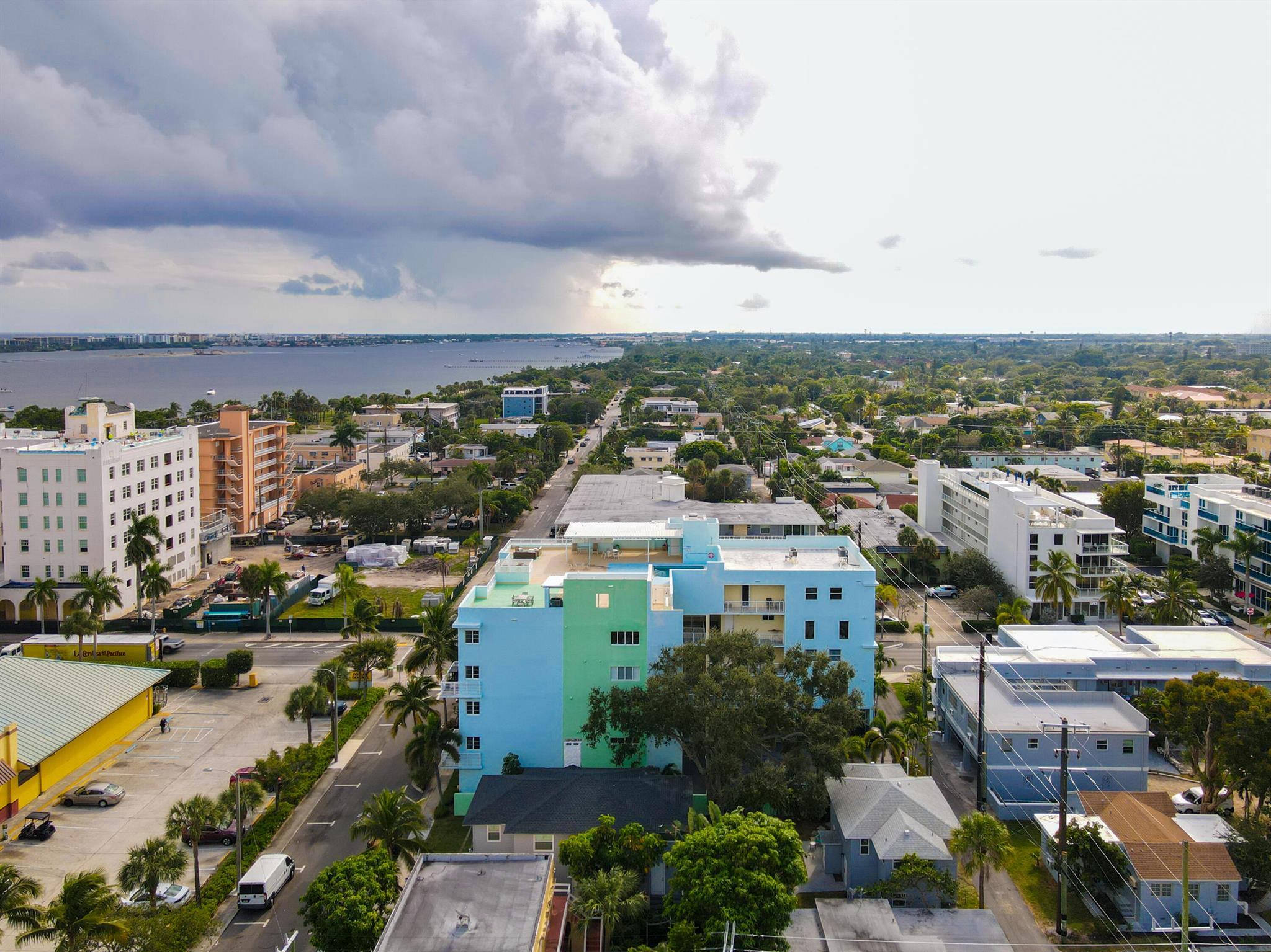 This southeast-facing corner residence at Lake Ave Lofts features over 2,000 square feet of open, light-filled living space, elevated by 20-foot floor-to-ceiling windows and Italian porcelain tile throughout.The main level offers a custom kitchen with marble countertops, high-end appliances, and an island with seating, along with an open dining area, living room, a spacious guest bedroom, and a full bath/powder room.Upstairs, the primary suite has been updated with expanded storage and a reconfigured walk-in closet. An open loft/den adds a versatile secondary living area--ideal for an office or lounge--with views overlooking Lake Avenue toward the Intracoastal.Building amenities include a rooftop pool, private storage, and two covered parking spaces. The location provides easy