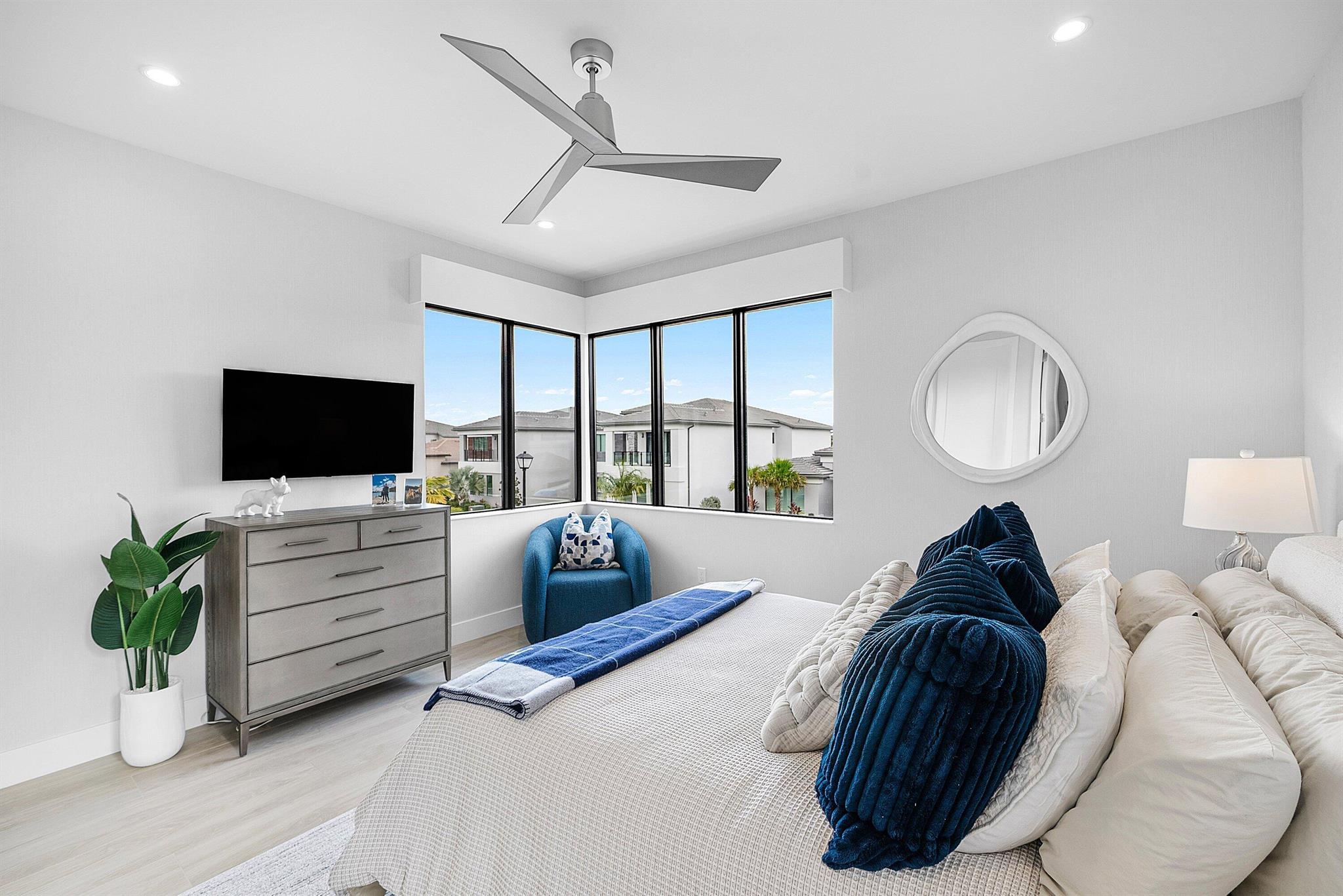 Welcome to this exceptional Laguna residence in the sought-after community of Lotus Palms, perfectly positioned on a premium lake lot at the end of a quiet cul-de-sac. From the moment you arrive, you are greeted with beautiful lake views from both the front and back of the home, creating a serene and private setting rarely found in the community. Masterfully upgraded inside and out, this residence delivers refined design, thoughtful functionality, and a true resort-style living experience.A grand entry sets the tone with a custom foyer chandelier, paneled feature wall, and designer finishes that continue throughout the home. Thoughtfully designed for today's lifestyle, the residence offers 5 total bedrooms, including one full bedroom with a private en-suite bath on the main level--