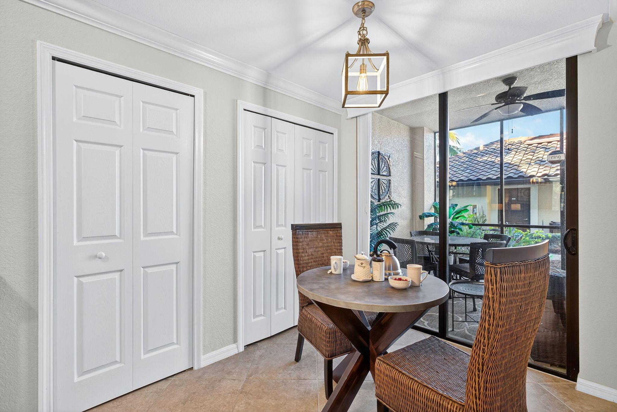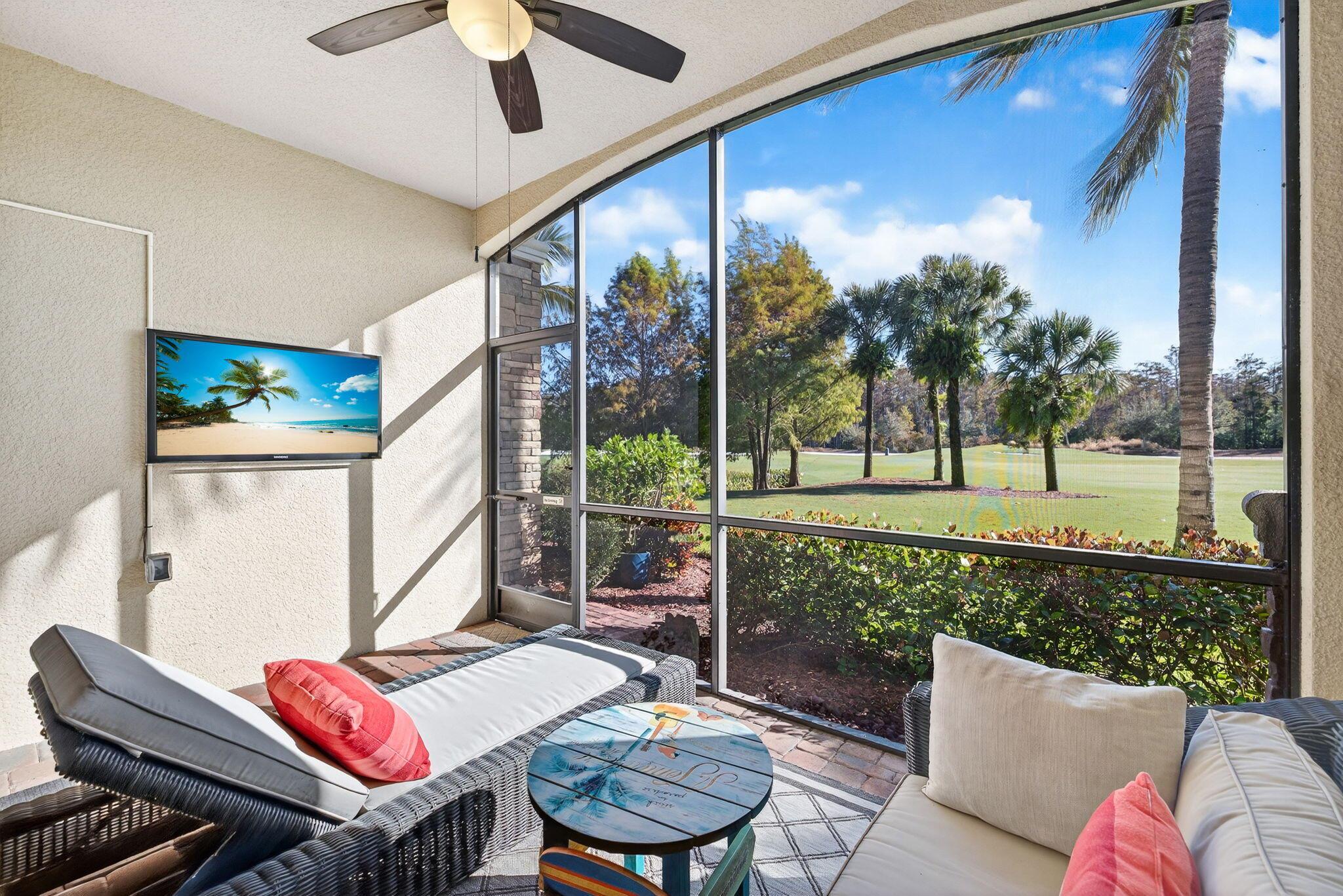 If your perfect morning begins with coffee on a peaceful patio or an early round of golf, this home will feel just right. The lanai overlooks serene cypress trees, offering a natural, calming backdrop. Inside, the split-bedroom layout features 2 bedrooms, 2 bathrooms, and a den. Brand-new luxury vinyl flooring in the bedrooms and den pairs beautifully with 20" porcelain tile throughout the main living area. A private garage and driveway add everyday convenience.Bonita National offers a true resort-style lifestyle with a championship golf course, Har-Tru tennis, fitness center, pools, clubhouse, dining, Spa and vibrant social events. Whether you're looking for a full-time home, seasonal retreat, or smart investment, come see why this could be the perfect opportunity.