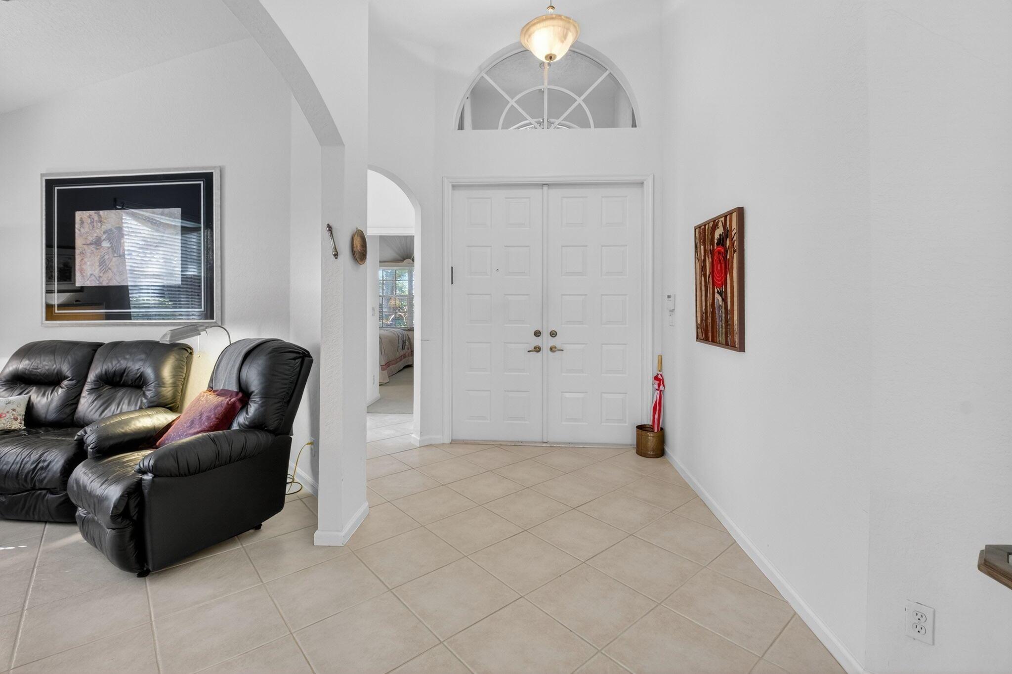 Wow! What a view! What a lot! What a location! Incredible oversized lot with stunning lake and fountain views! Beautifully renovated kitchen features double oven, double stainless sinks, granite counters and backsplash, oversized cabinets with plentiful storage and high-end stainless appliances. This open and airy home features 3 bedrooms, 2-1/2 baths. Roof 2010 and accordion shutters with screen-enclosed lanai and extended patio. This property is a true Florida sanctuary designed for comfort and elegance. The Club features a BRAND NEW Clubhouse & Social Hall with a plethora of social activities, parties, clubs, fitness center, bocce, NEW active tennis & pickleball center and much more. Your new home awaits!Easy access to numerous houses of worship.