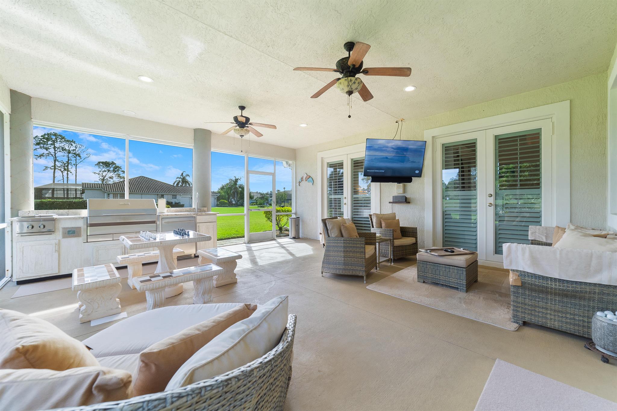 Look no further for unparalleled luxury in this impeccably maintained expansive estate nestled within the prestigious Meadowood Country Club community in Fort Pierce. Spanning over 4800 square feet under air and almost an acre of a private double lot with endless golf course views. This stunning residence boasts 7 bedrooms, 5 baths, and a spacious 3-car garage, has a BRAND NEW ROOF, 1,000 gallon in-ground propane tank, an elegant outdoor kitchen with a Memphis Elite pellet grill/smoker, 2 New AC units, New water heater and New dishwasher. Elegance and functionality blend seamlessly throughout the home, featuring a well-appointed mother-in-law suite for added versatility.