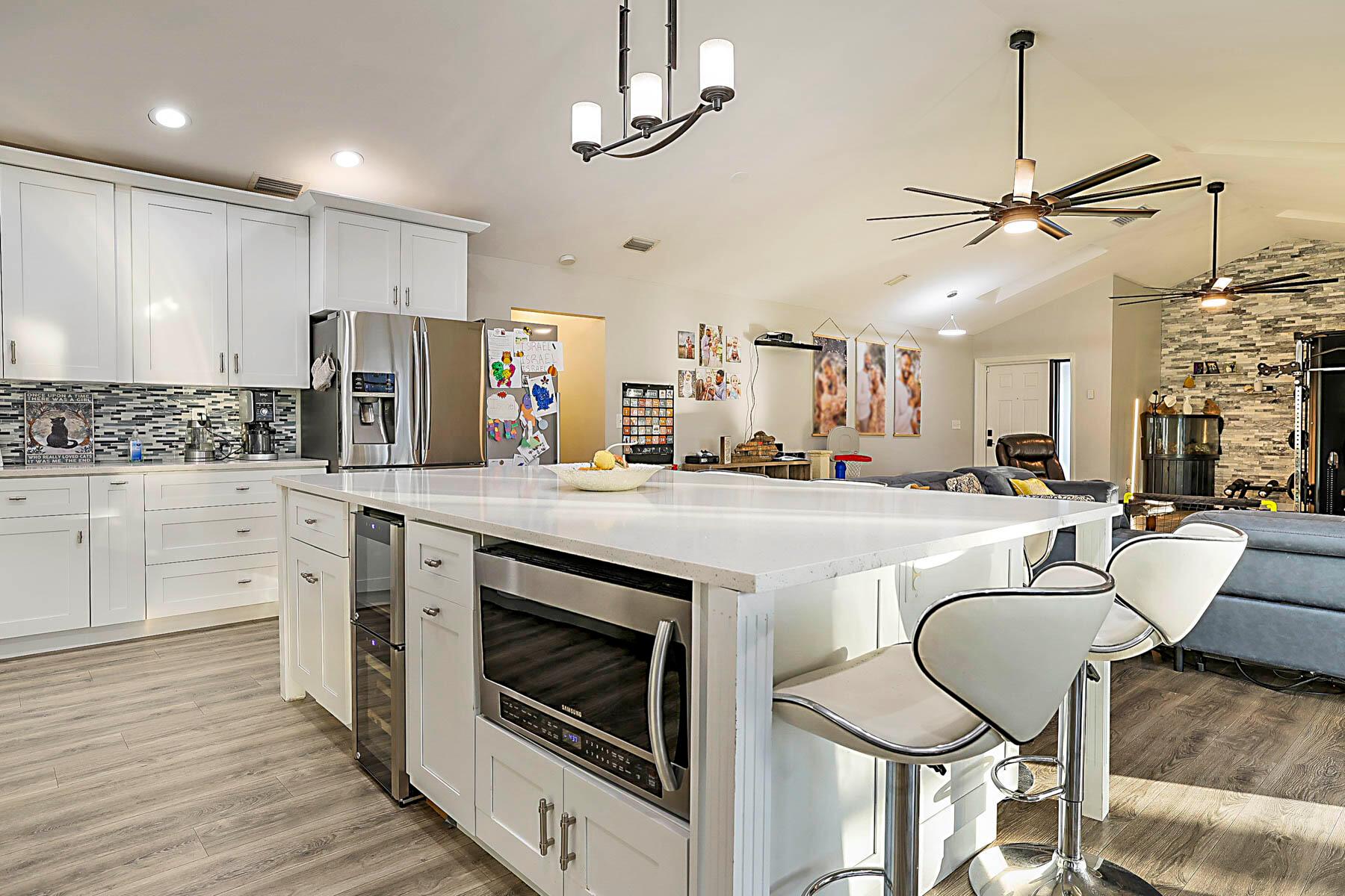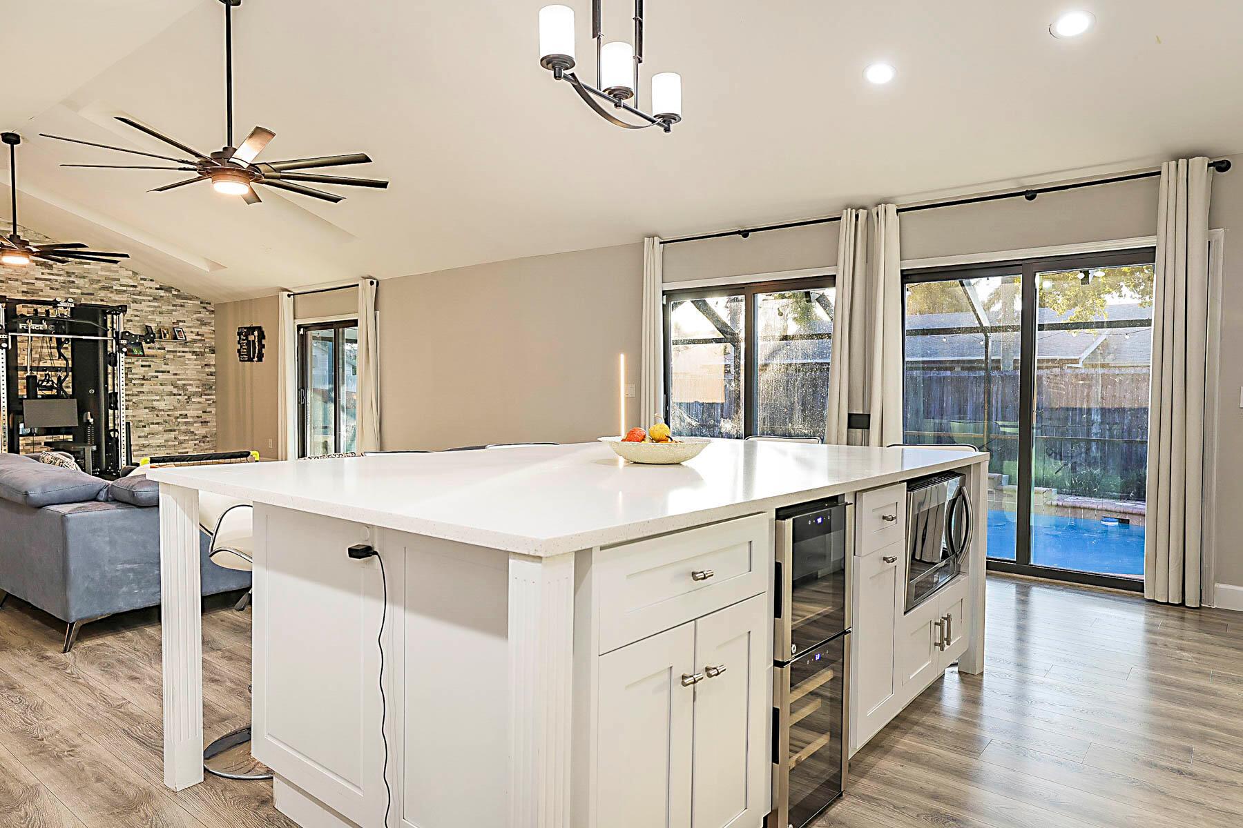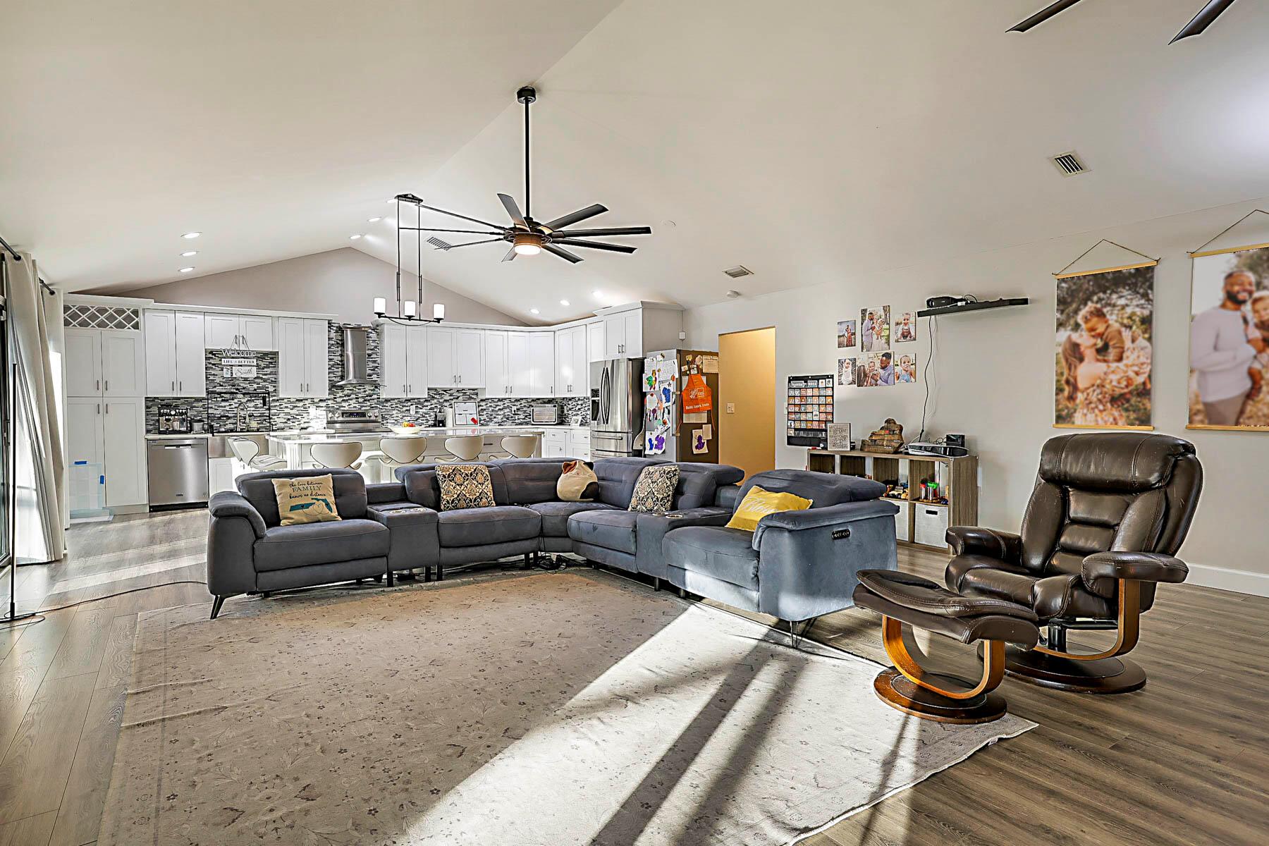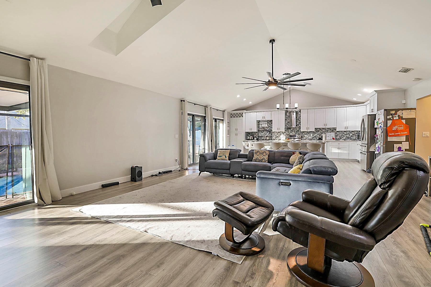 Absolutely stunning open concept floor plan featuring a dream kitchen offering plenty of storage, stainless steel appliances and a huge island, fully remodeled bathrooms, vaulted ceilings, in-ground pool, screen enclosure and aluminum pan roof installed in 2023, roof replaced in 2022, all new impact glass 2024, newer A/C and hot water heater, side entry garage and a fenced-in yard. This is a truly special home and not to be missed!