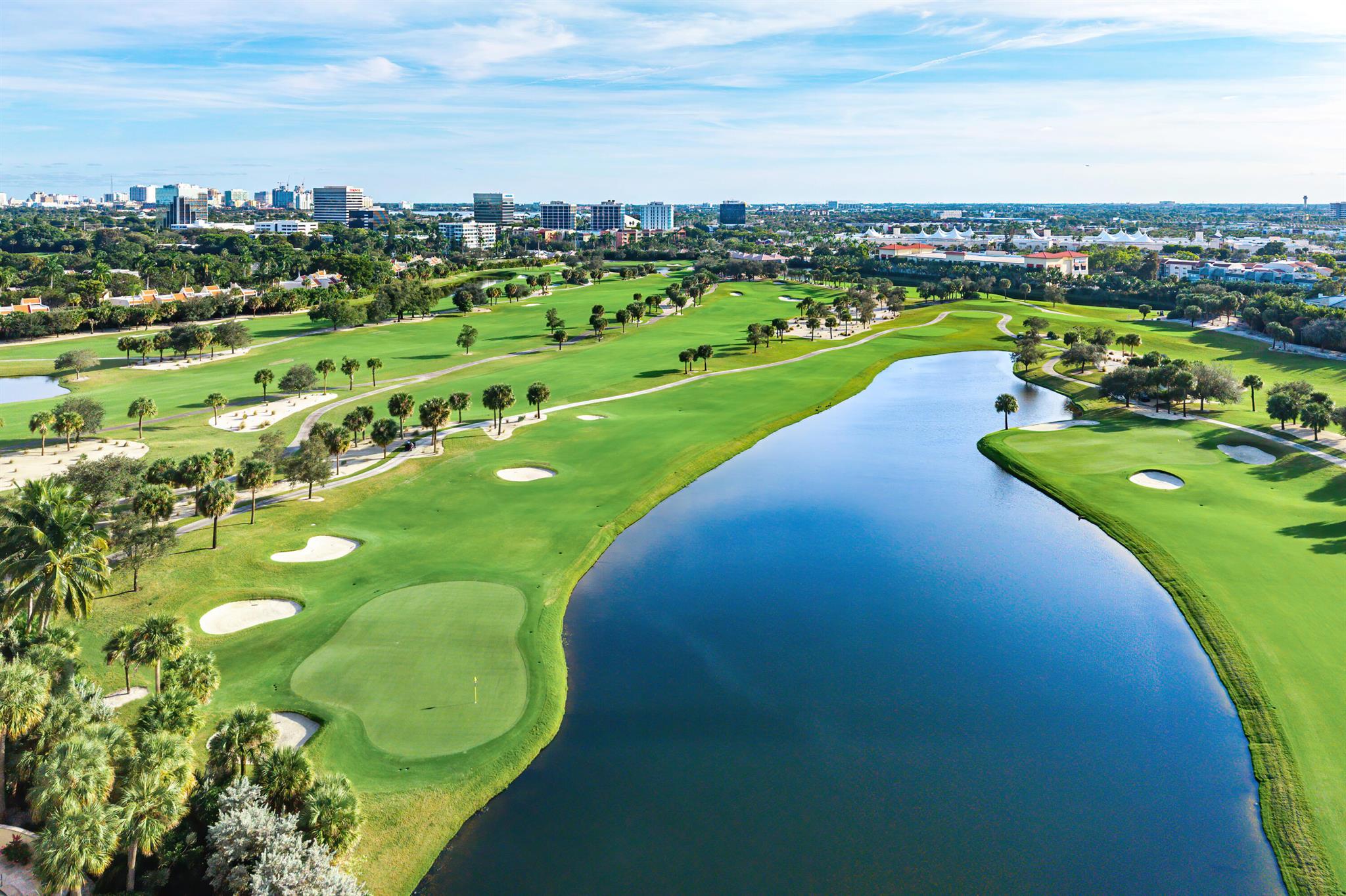 Bright and spacious residence in the gated Lands of the President community with wide golf-course, lake, and city views overlooking the newly reimagined Dutchman's Pipe Golf Club and the Belgrove, a Marriott Autograph Collection hotel. This well-laid-out unit features an open living area with floor-to-ceiling full impact glass sliders leading to a private balcony, along with a split-bedroom floor plan offering comfort and flexibility. The primary suite includes ample closet space and direct balcony access. Residents enjoy a renovated lobby, 24-hour manned security, community pool, and an unbeatable location just minutes to downtown West Palm Beach, The Square, Palm Beach Island, and PBI Airport.