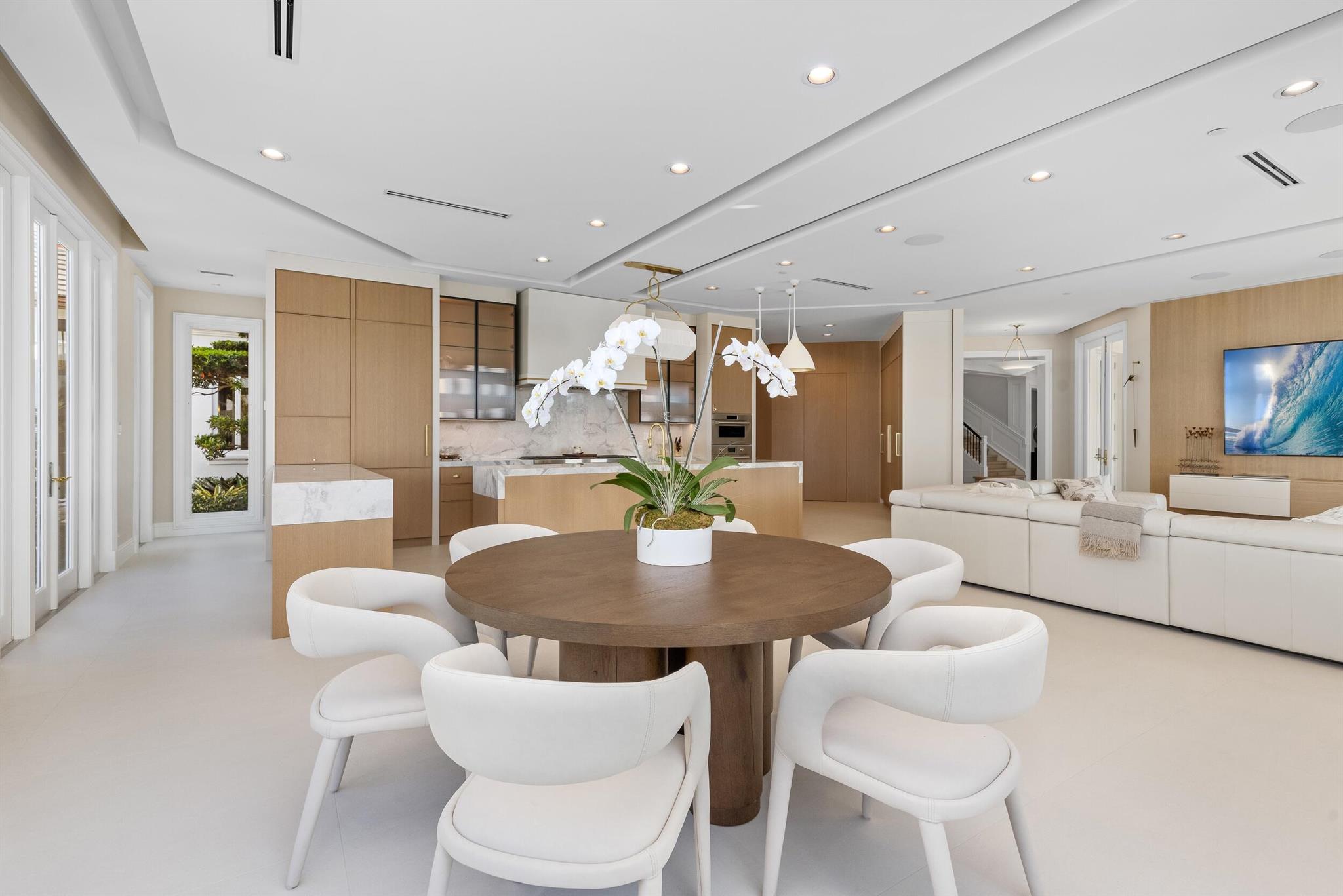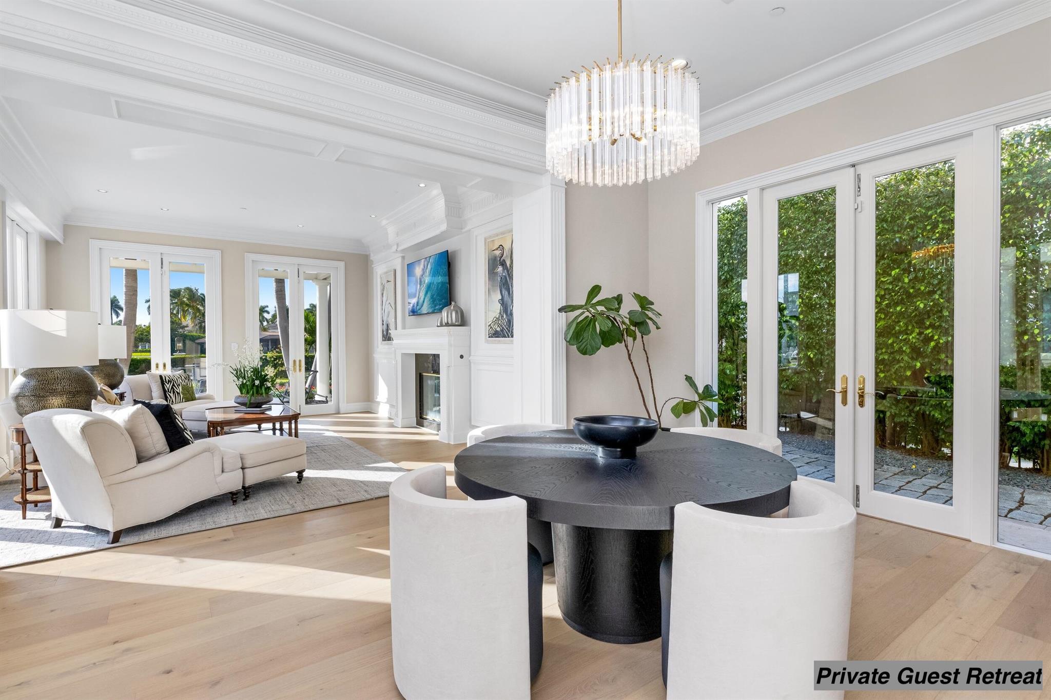 Experience the pinnacle of coastal luxury in this fully reimagined Intracoastal estate, set on 200 feet of prime waterfront in Boca Raton's prestigious Estate Section. Behind private gates, this expansive compound offers more than 12,000 square feet of refined interiors and over 17,000 total square feet across eight bedrooms, thoughtfully arranged between the main residence and a separate guest home. The layout is exceptional: the main residence features six beautifully appointed bedrooms, while the guest home includes two additional bedrooms, a full kitchen, a spacious living room, its own private entrance, and even an additional 1-car garage dedicated to this suite