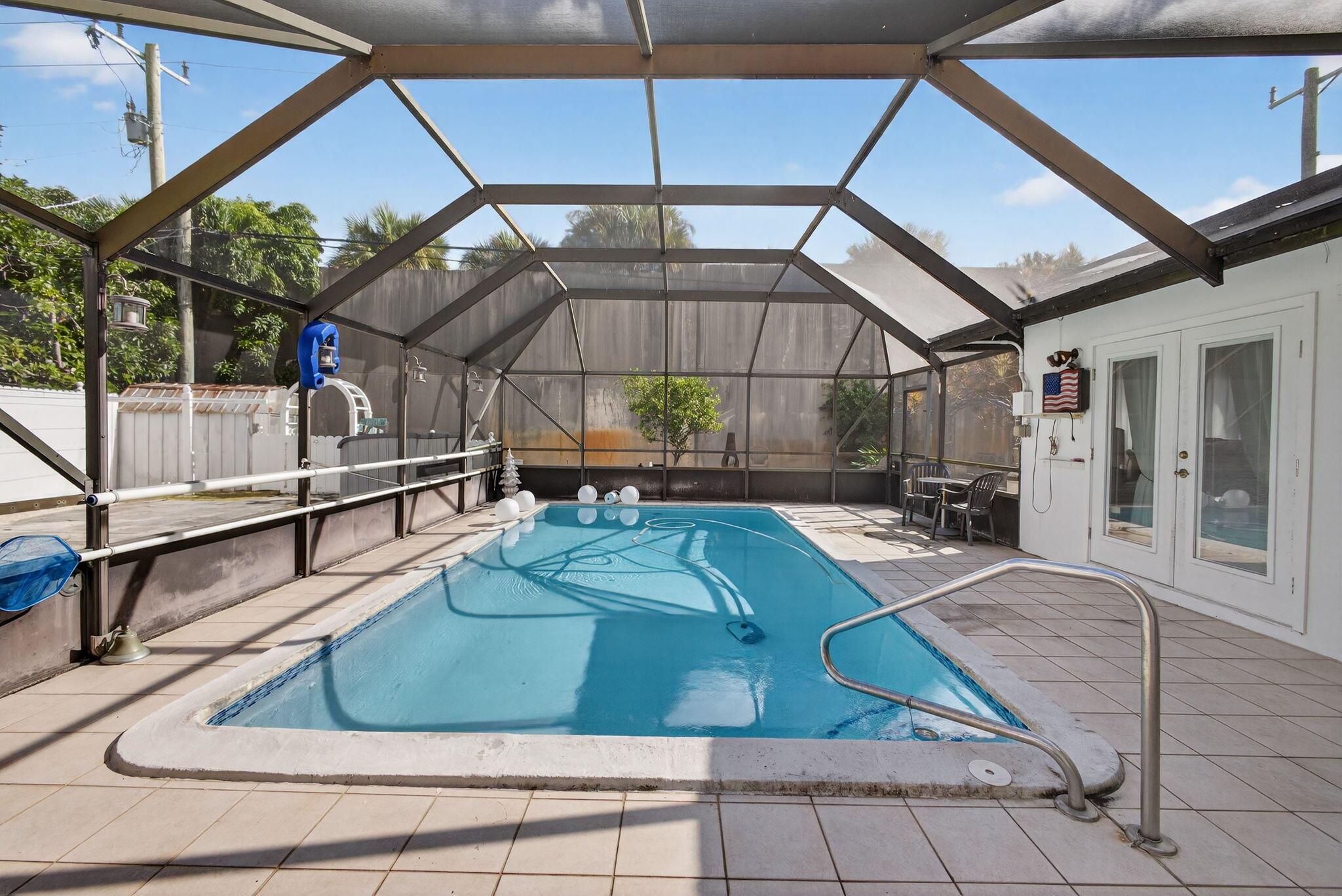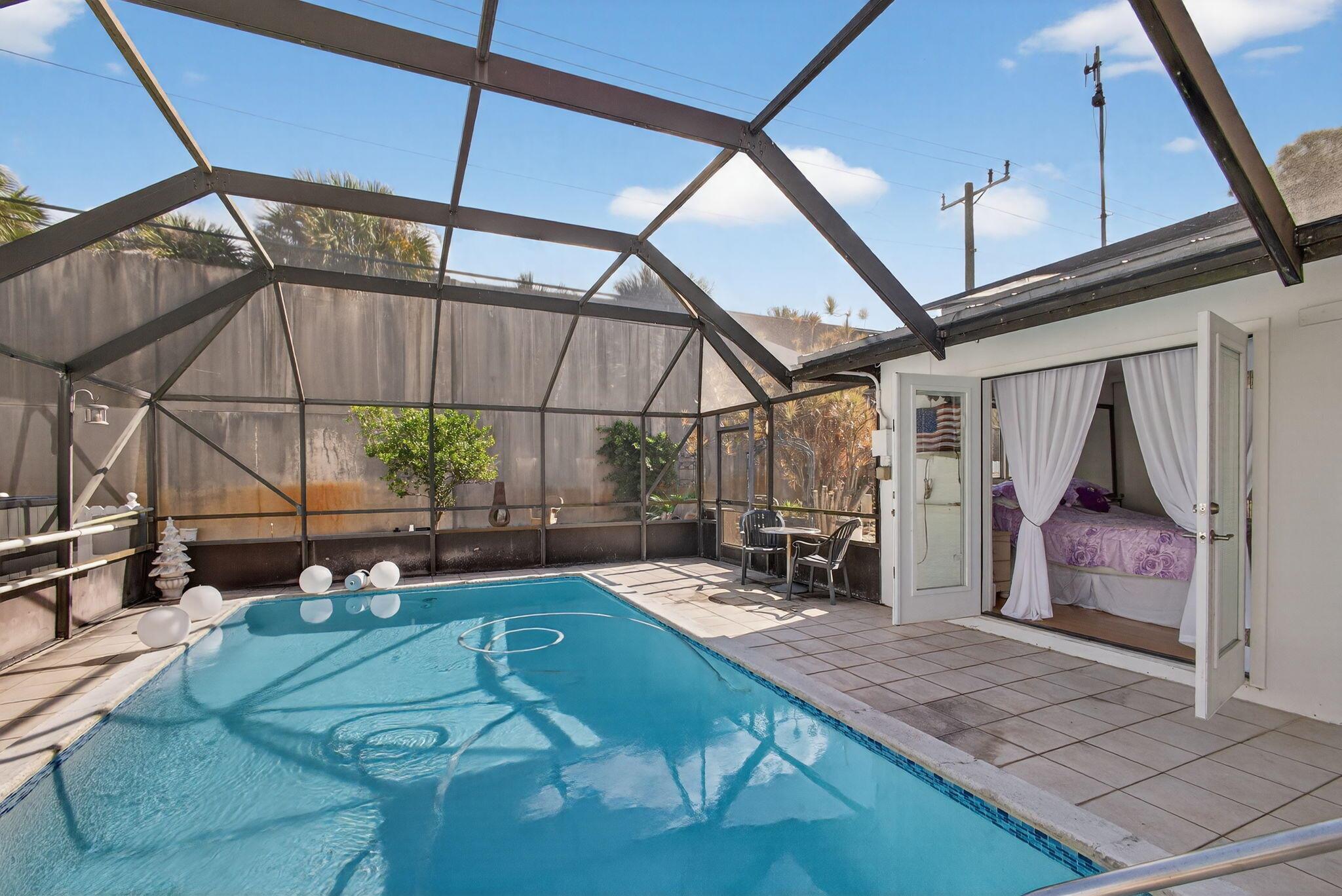 Palm Beach Gardens Pool Home with Solar + Impact Windows!Beautifully updated 2BR pool home on an oversized lot in Palm Beach Square. This move-in ready property features a newly renovated kitchen with induction cooktop for fast, energy-efficient cooking, impact windows throughout, and a metal roof with solar panels installed less than 3 years ago. Enjoy low energy costs, peace of mind, and a bright, inviting interior. The screened-in pool creates the perfect outdoor oasis for relaxing or entertaining. Located close to shopping, dining, parks, and top local amenities, this home offers comfort, privacy, and valuable upgrades throughout. A must-see!