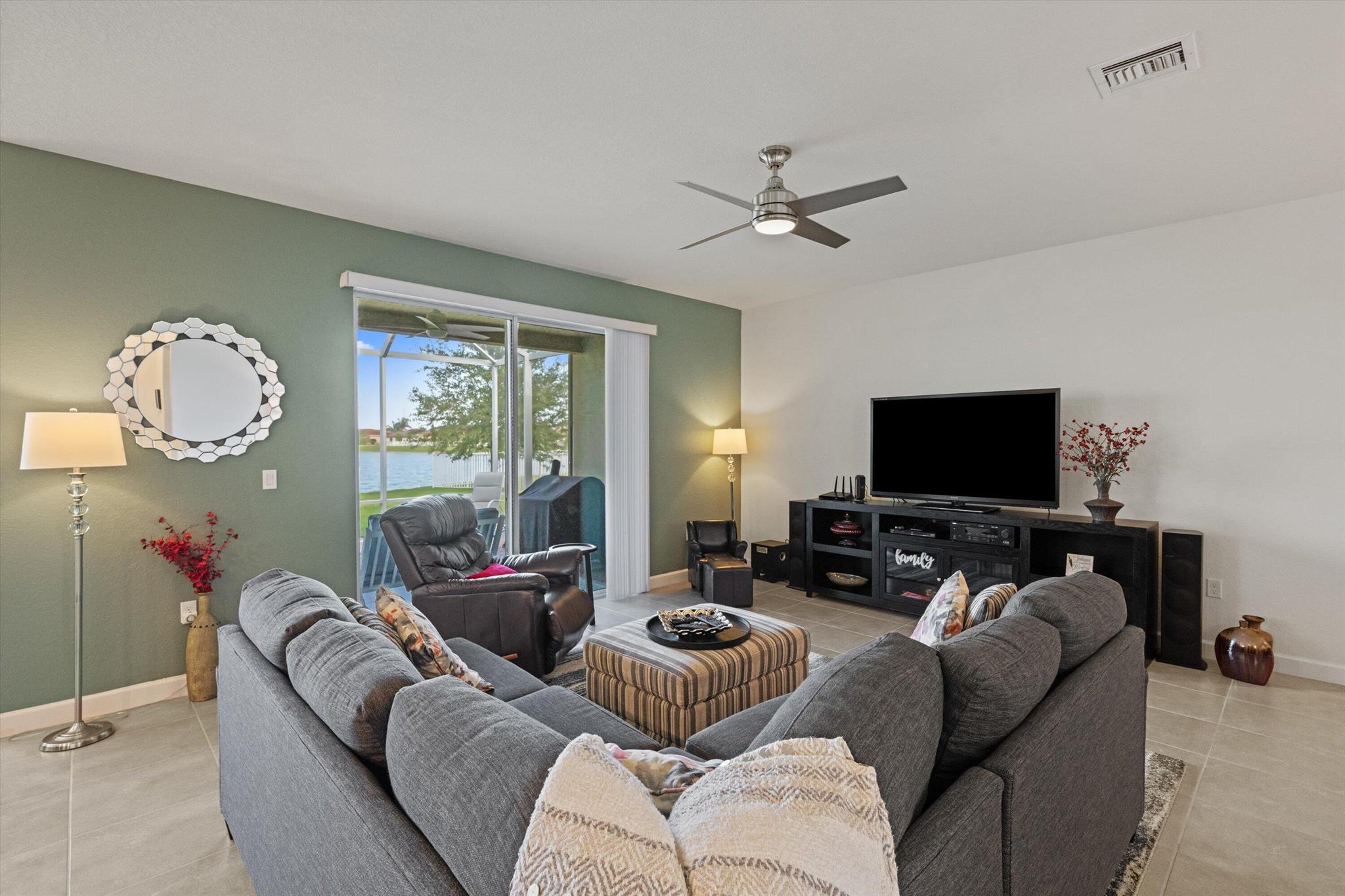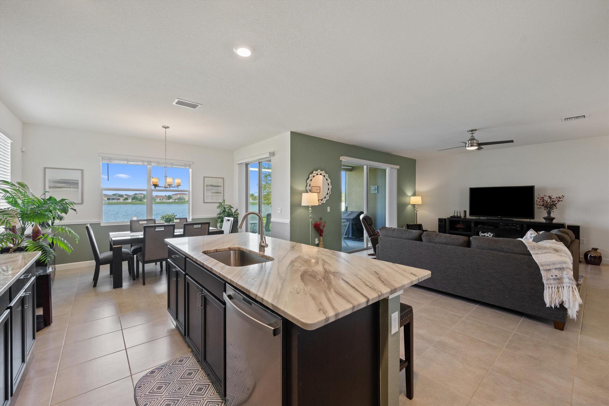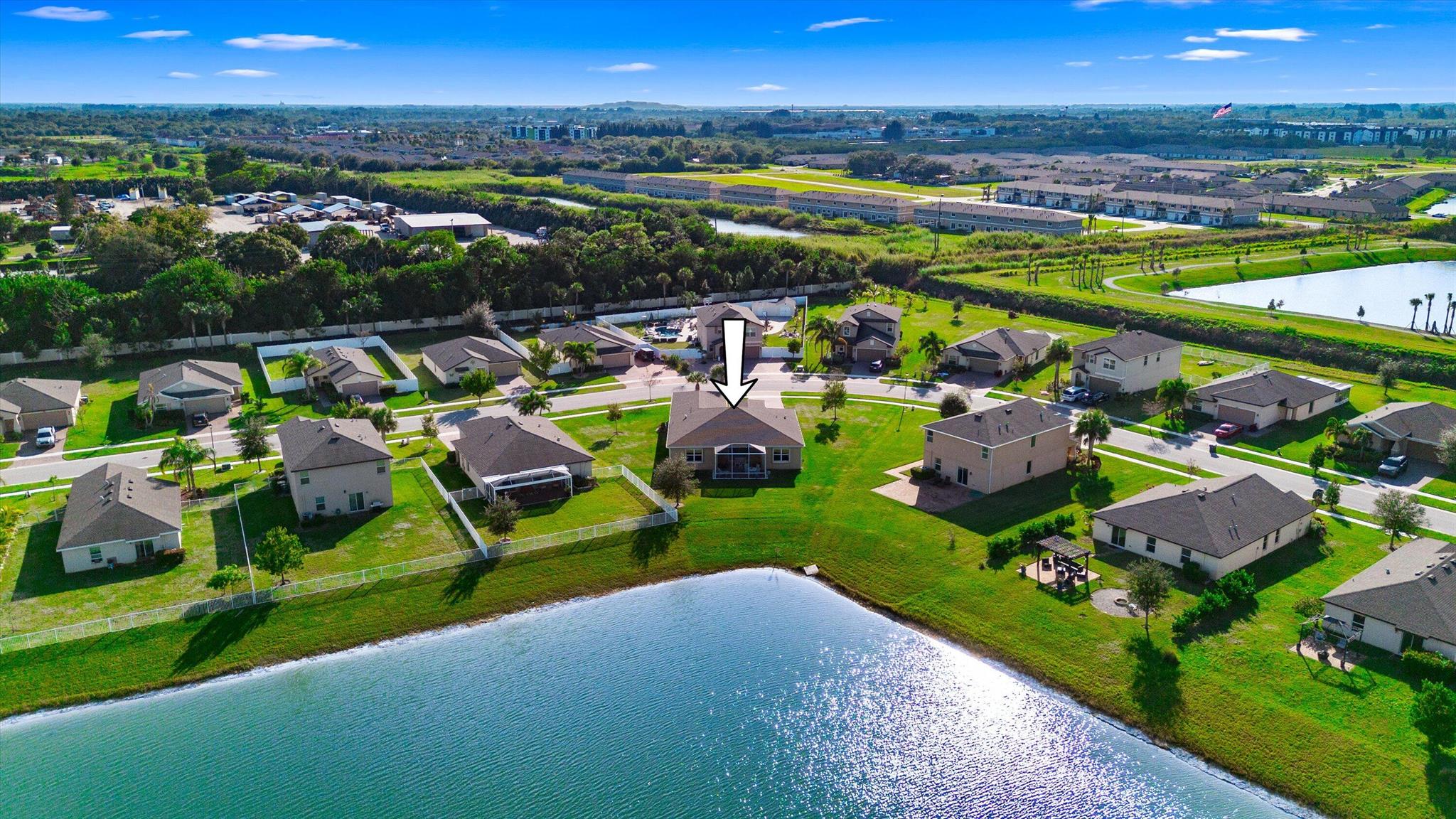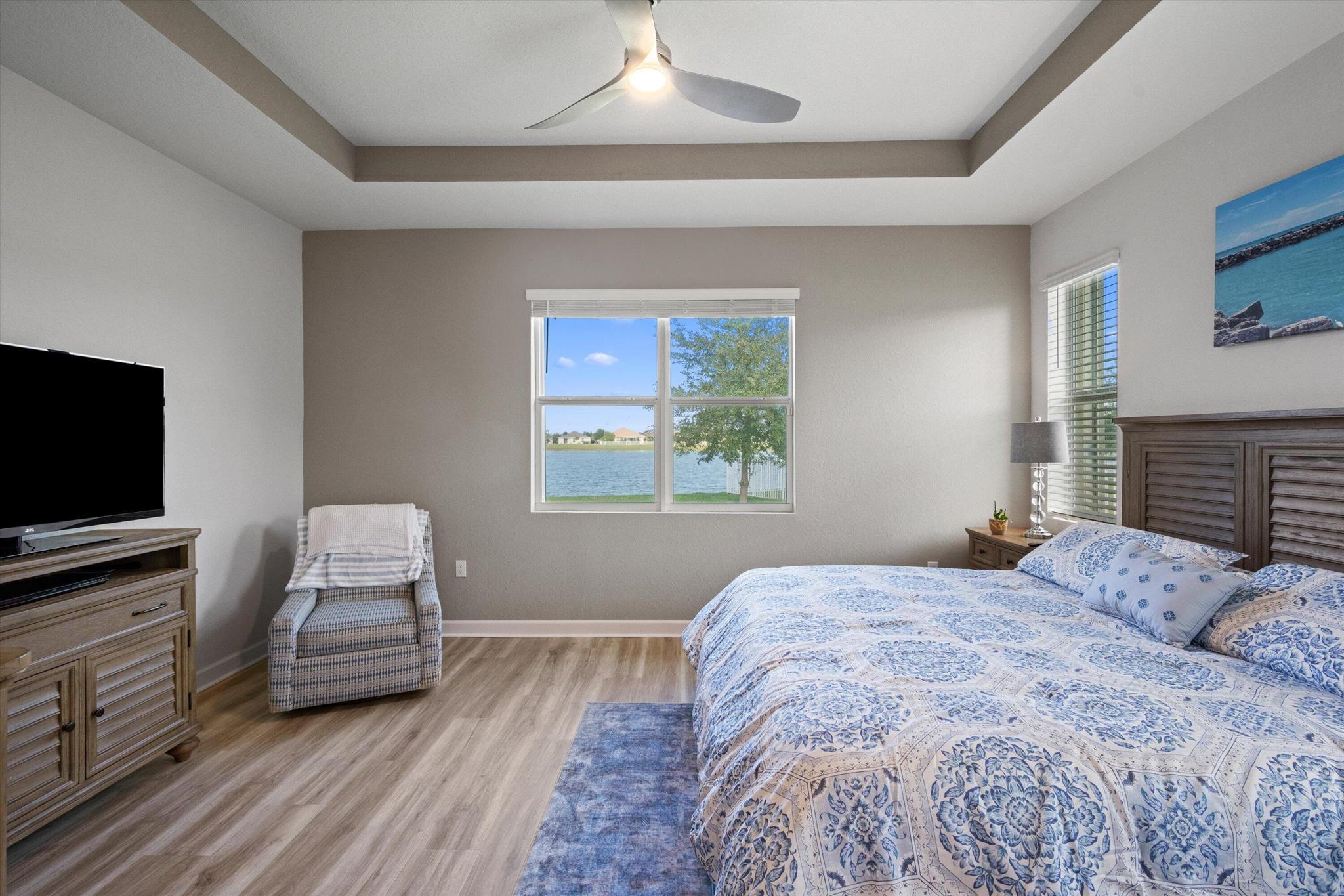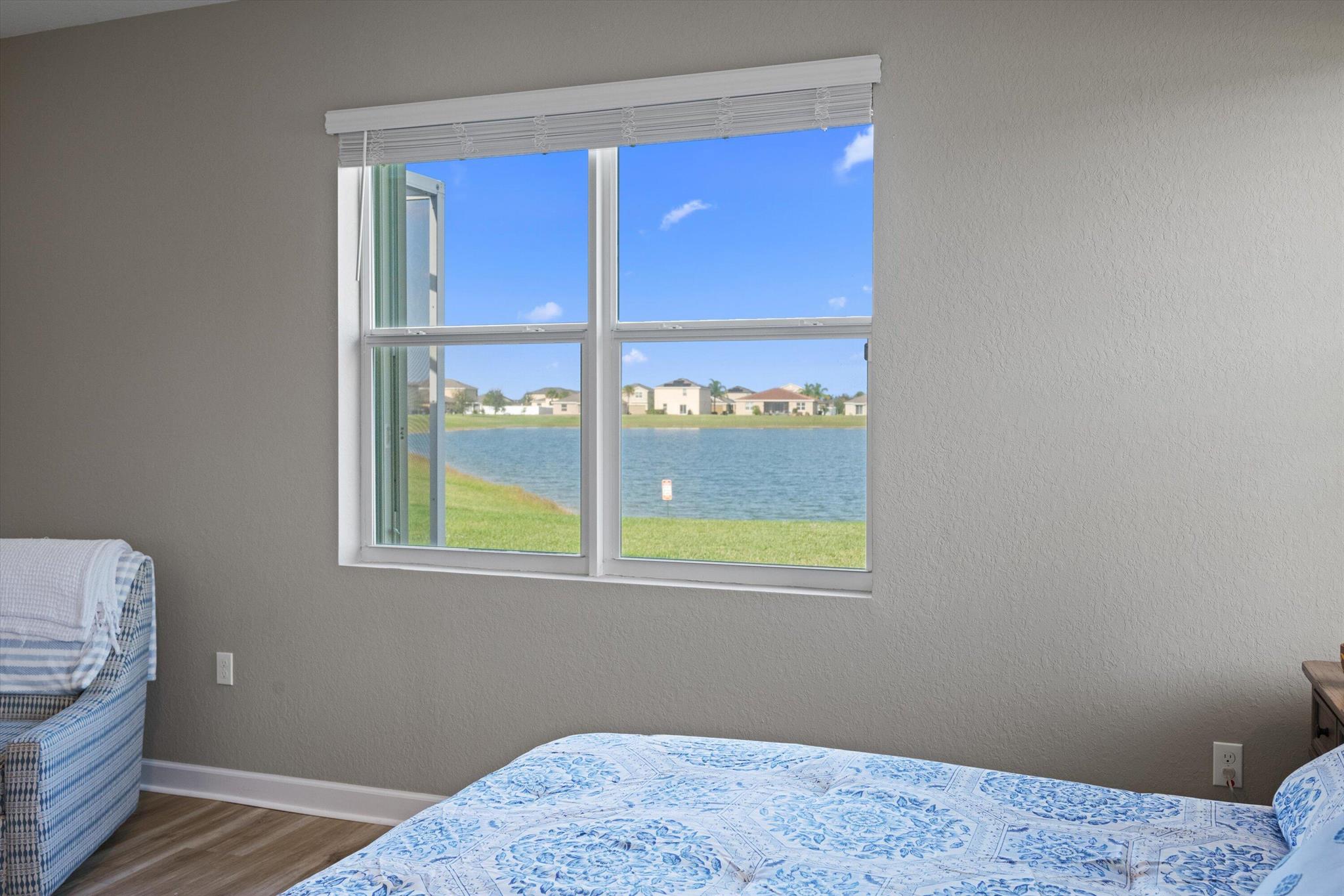 Welcome to the highly sought-after Brook model, one of only 12 homes of its kind in the gated Bent Creek community. Built in 2019, this thoughtfully designed 3-bedroom, 3-bath residence with a den offers both privacy and elegance, set on a generous .36-acre lakefront lot with tranquil water views.The home features a split floor plan, a side-load garage, and inviting outdoor spaces including a screened entryway and a screened, extended patio overlooking the lake--perfect for relaxing or entertaining. The kitchen is appointed with 42'' espresso cabinetry and GE Profile appliances, with a cohesive color palette carried throughout each bathroom. Notable upgrades include luxury vinyl flooring in the den and primary bedroom and a beautifully upgraded guest bath with a walk-in tiled shower.