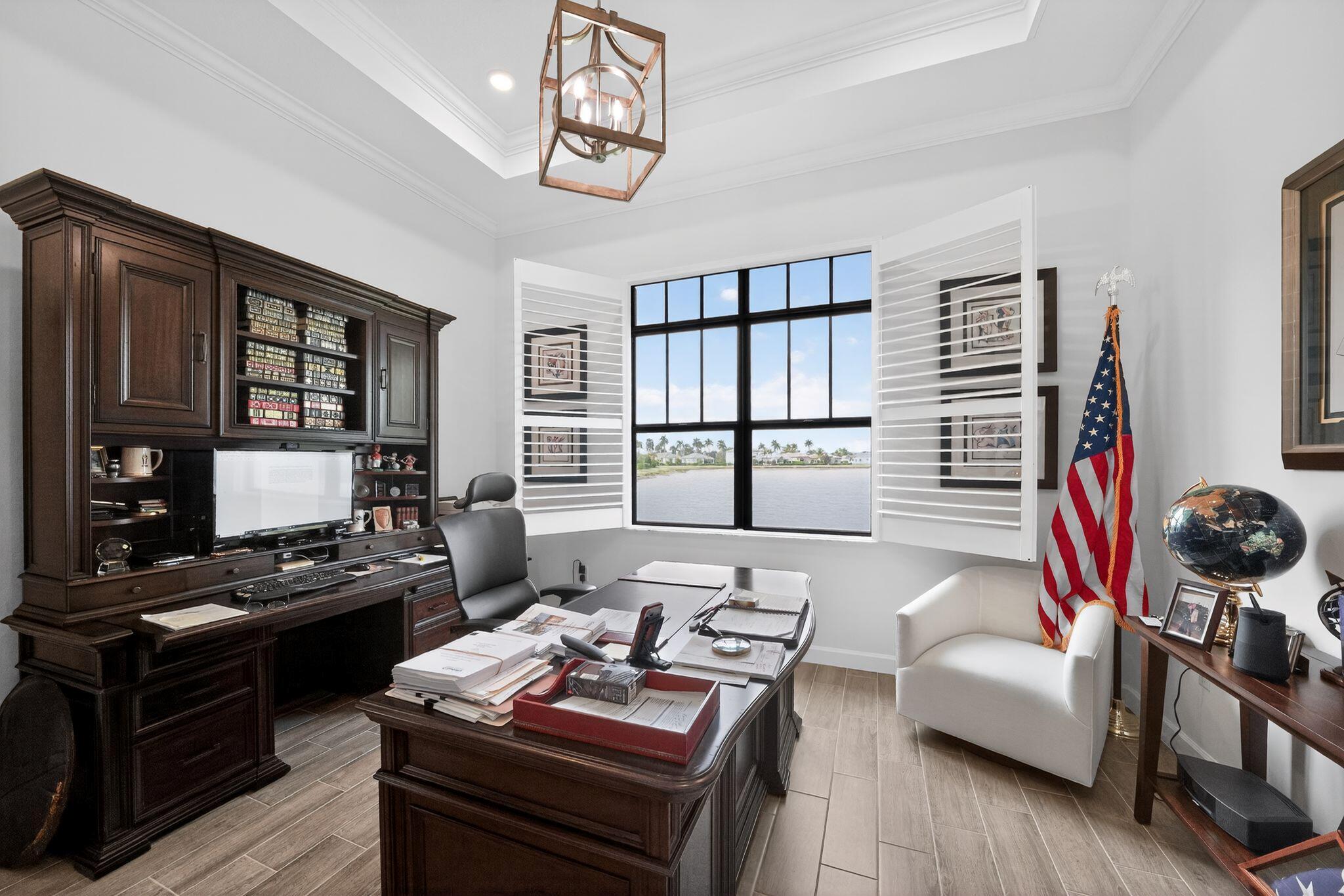 Nestled within a prestigious gated golf community, this beautifully upgraded Giulia model offers the perfect blend of luxury, comfort, and lifestyle. Overlooking a serene lake with breathtaking sunset views, the home features expansive glass sliders that open to a covered terrace, ideal for indoor-outdoor living and entertaining. Designed with an open and spacious floor plan, the residence includes 3 bedrooms, 2 full bathrooms, and a convenient half bath, along with a dedicated laundry room and double garage. A versatile flex space/den provides the ideal setting for a home office or additional living area. Thoughtfully enhanced with $39,000 in upgrades plus an additional $15,000 in custom window treatments and designer lighting, this home is truly move-in ready.