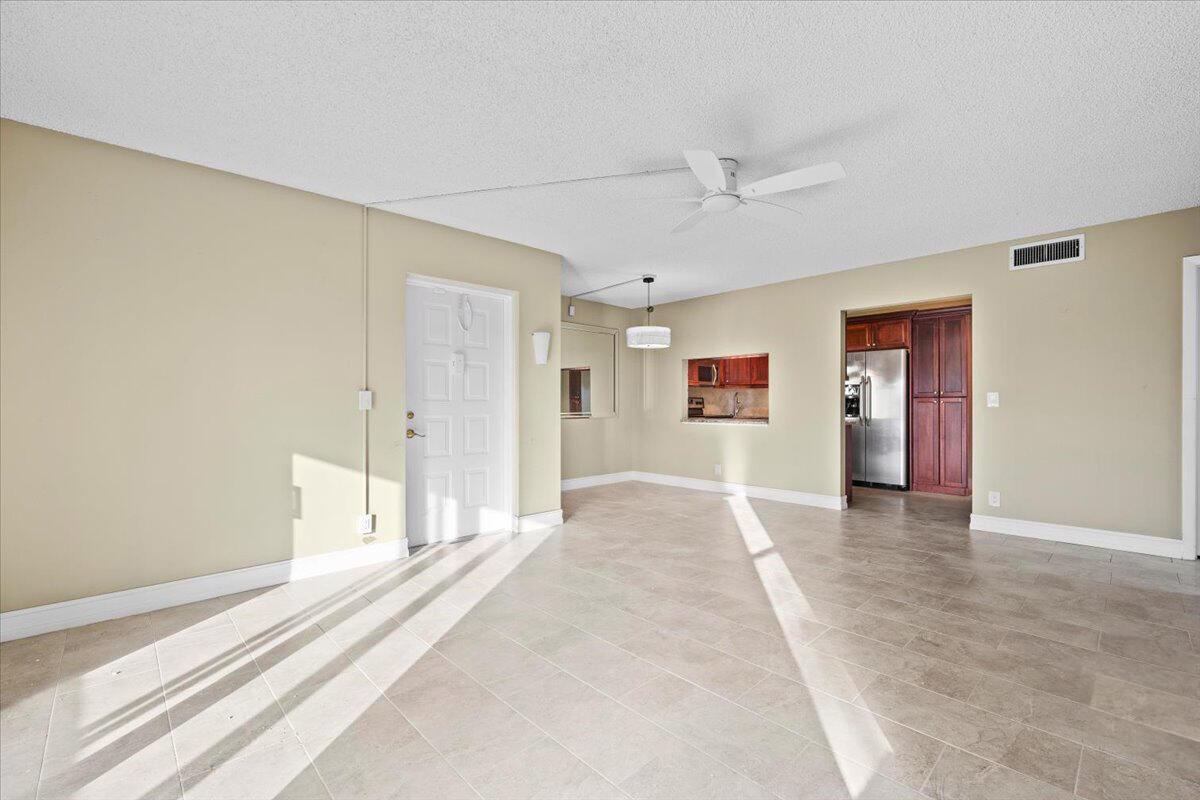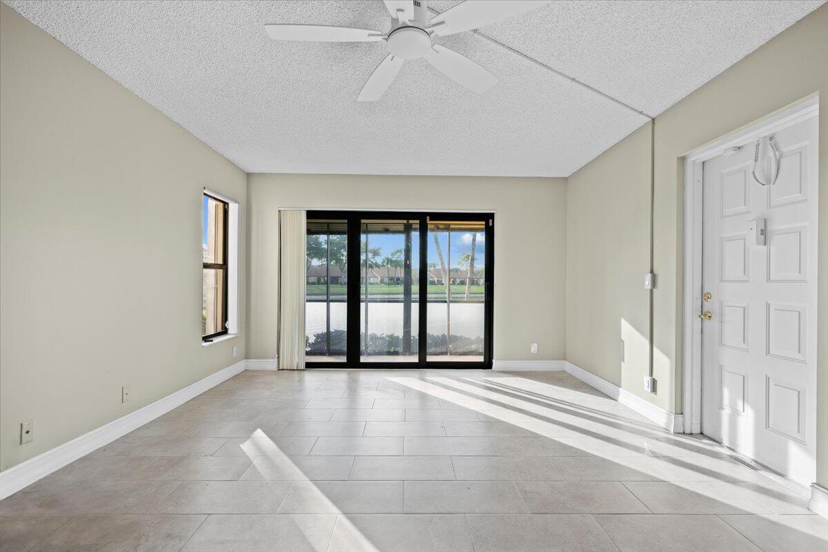 Beautifully updated first-floor condo with serene lake views and immediate rental eligibility--a rare and valuable opportunity for investors. The unit features tile flooring throughout the main living areas and brand-new vinyl flooring in both bedrooms, creating a clean, modern feel. The kitchen has been tastefully updated with dark cherry wood cabinetry and granite countertops, offering both style and functionality. Impact windows provide peace of mind, and the first-floor location offers easy access with no stairs. Enjoy tranquil water views from the living space in this well-maintained residence, ideally located for comfortable South Florida living.