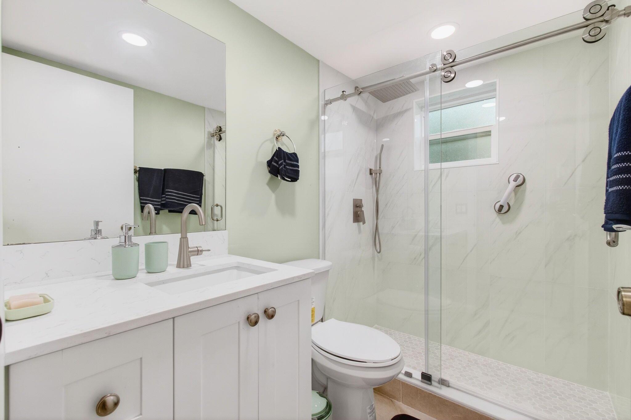 Move right into this beautifully updated 2-bedroom, 2-bath ground-floor condo offering quality upgrades throughoutThe home was fully renovated approx 3 years ago and features all hurricane-impact windows and doors,providing comfort, security, and energy efficiency.Enjoy a modern kitchen with a true island and baths with quartz countertops, stylish finishes, and ceiling fans in every room. Major systems include A/C(2019) and water heater(2022) for peace of mind. The spacious primary bedroom offers privacy,while the screened patio with mesh screens and exterior door overlooks a private,tranquil setting--perfect for relaxing or entertaining.Blackout shades 2nd bed, add both style and functionality.Located in the Kings Point 55+ community with world-class amenities.Updated lighting throughout