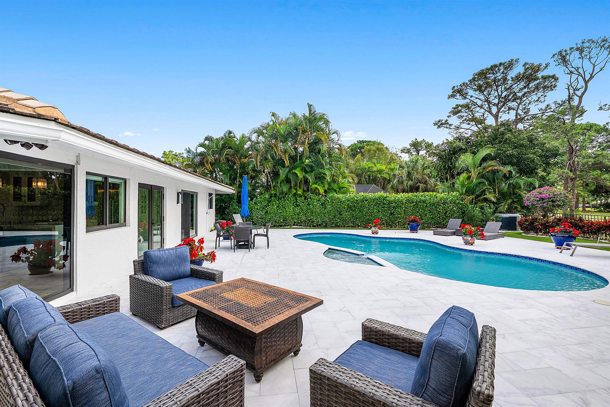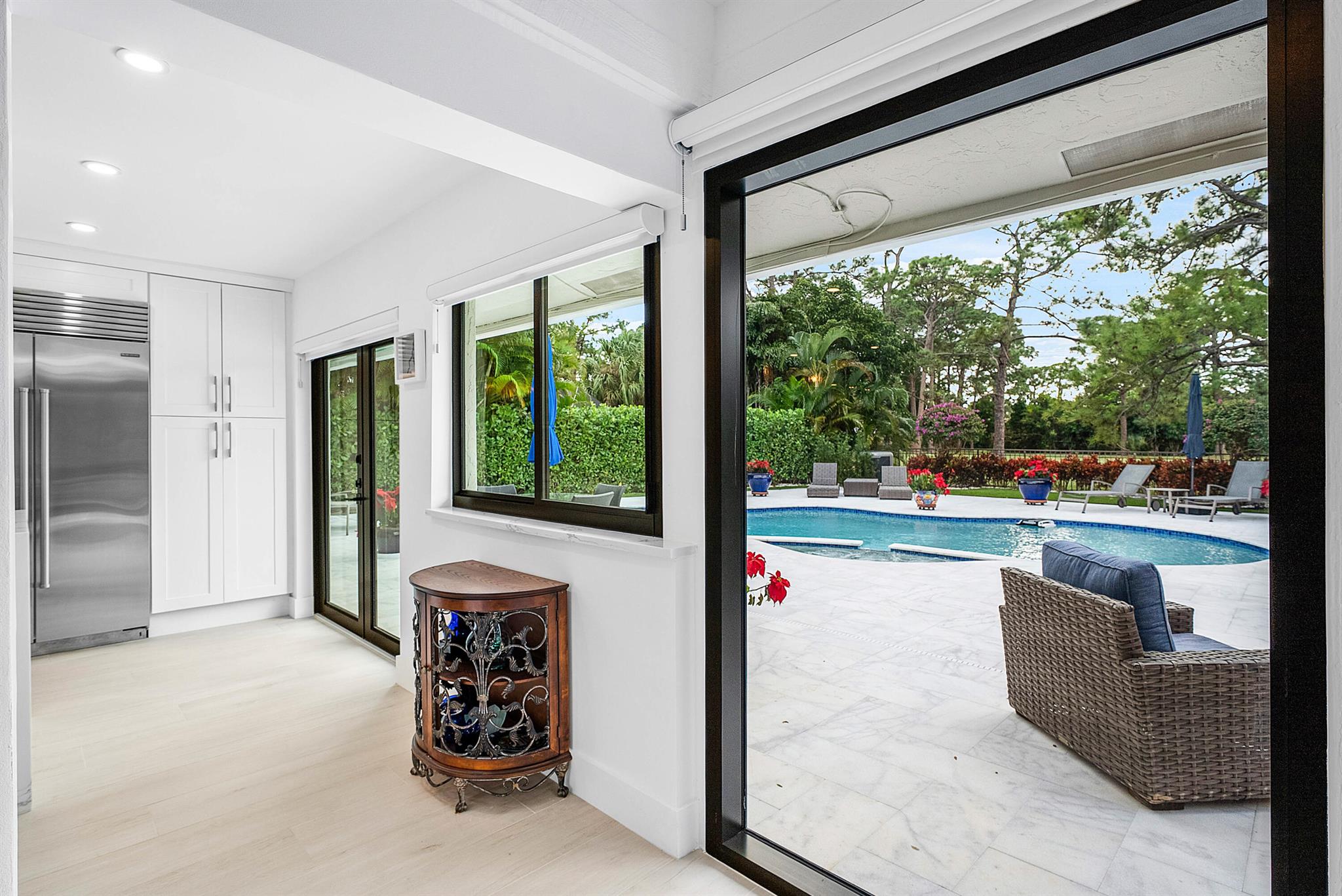 An exceptional, fully renovated retreat tucked behind a tranquil nature preserve.This stunning home offers a blend of modern luxury and serene privacy, creating the perfect sanctuary for everyday living and effortless entertaining. Step inside to discover an updated interior featuring a brand new chef's kitchen, custom bar, and beautifully redesigned bathrooms. High ceilings and gorgeous exposed wood beams elevate the living room, adding warmth, character, and an inviting sense of openness. The seamless flow of the home extends outdoors to your private backyard oasis, where peaceful views of the untouched preserve make every moment feel like a getaway. Luxurious, stylish, and set in an ideal natural setting is move-in ready and designed to impress at every turn.