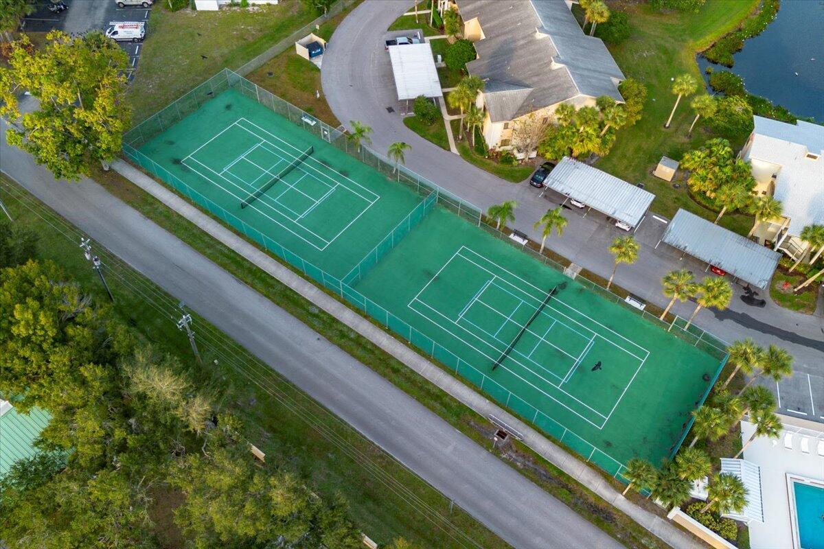 Lakefront living in Indian Pines. This first-floor 2-bedroom, 2-bath condo offers peaceful water views from the screened lanai and a bright, open living space designed for comfort and relaxation.The home features a walk-in closet, kitchen pantry, full-size washer and dryer in a dedicated utility room, and generous storage throughout. Recent updates include a new A/C (2023), new hot water heater (2023), and an ADT security system for added peace of mind. Panel shutters protect the windows, and pull-down shutters enclose the patio, providing storm protection and convenience.Enjoy the ease of a covered carport and a community that feels like a private retreat, offering a pool, clubhouse, tennis and pickleball courts, all just