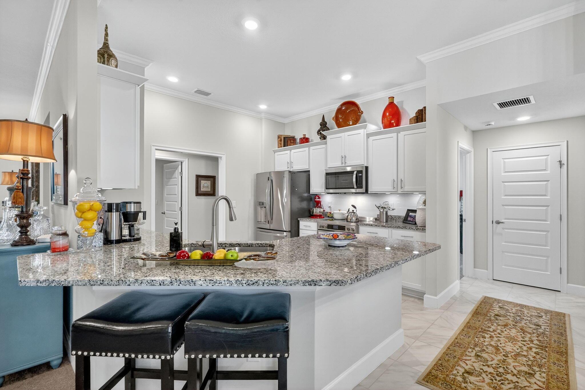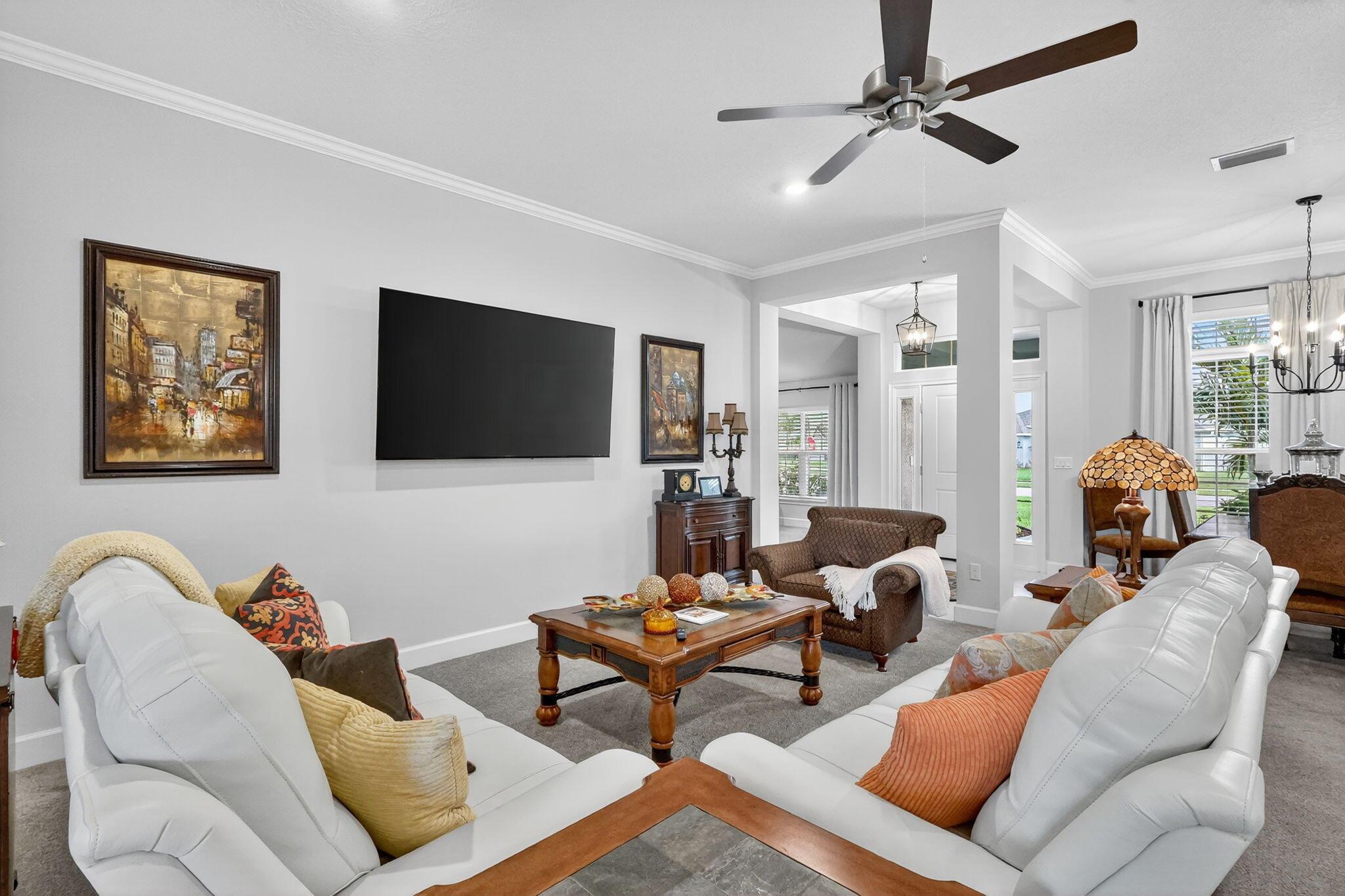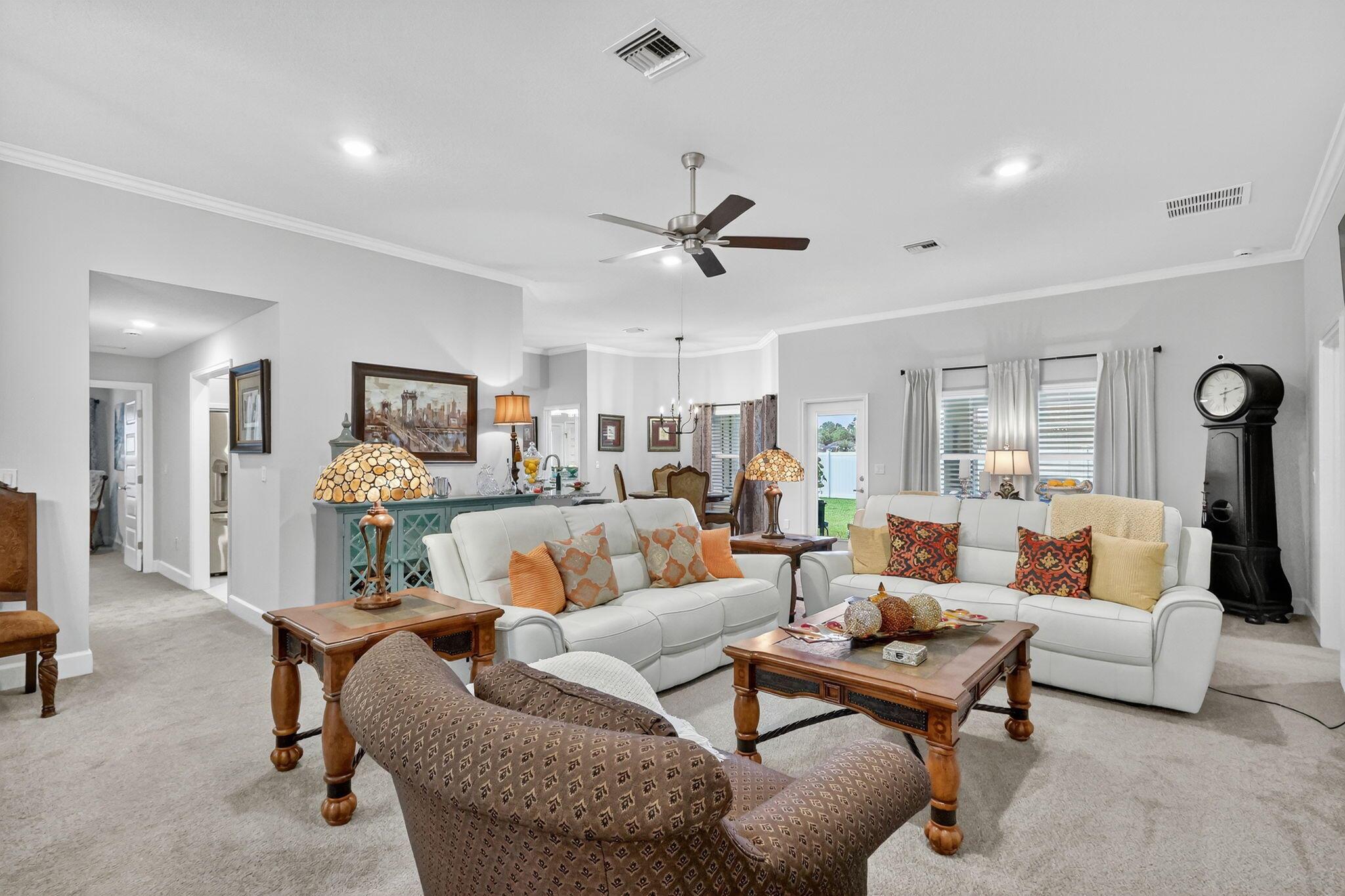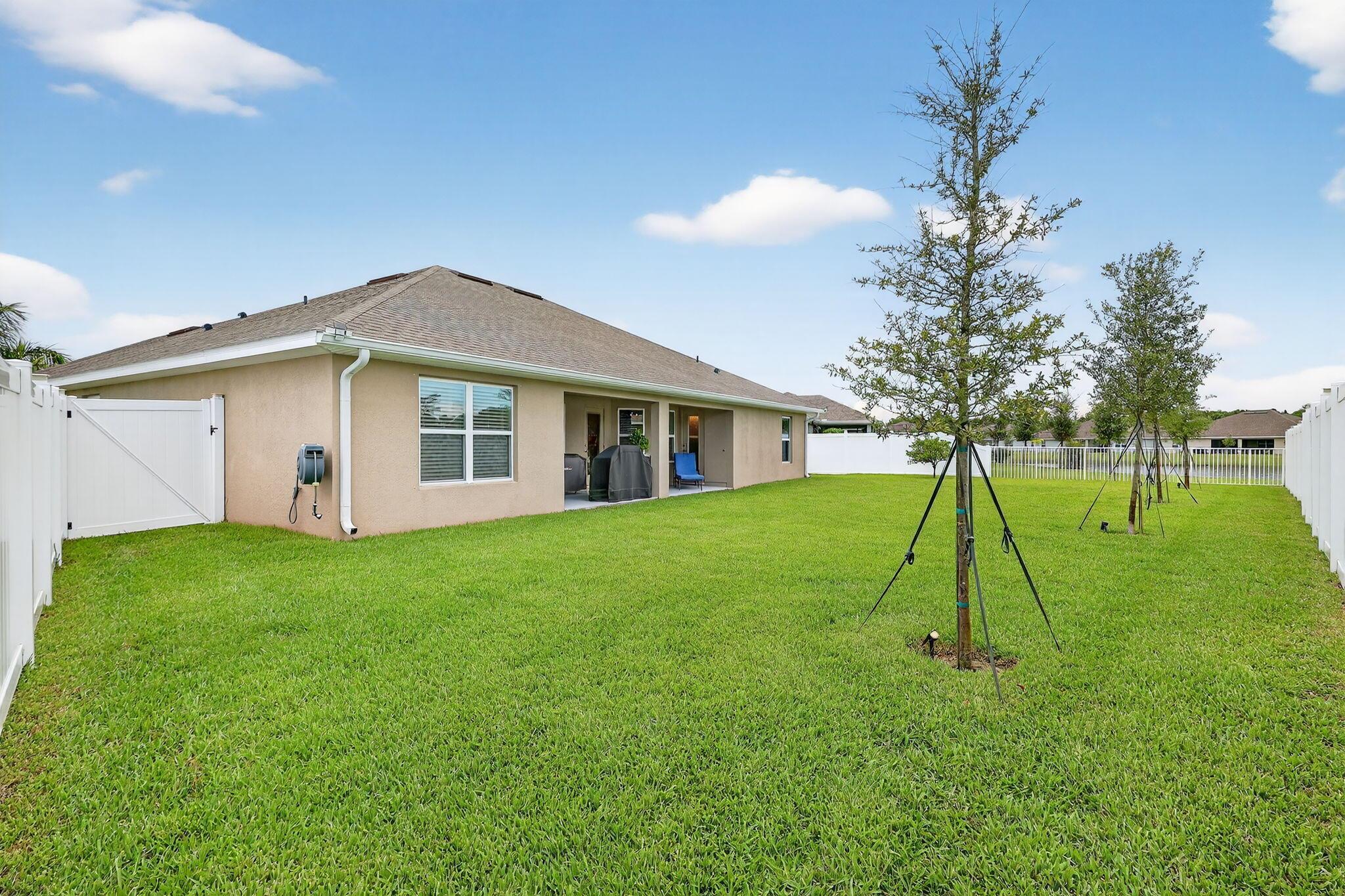 This home is a STEAL! Priced under what they paid & + improvements 4/3/3 Better than NEW 2023 built.Premium .27 acre 11,761sf Corner Lakefront Lot (35K upgrade from builder) 34K+ in after purchase upgrades including: Premium vinyl & metal fence. Seamless gutters. Your OWN Irrigation well which saves thousands a year on your water bill & keeps your yard looking lush and beautiful! Meticulously maintained. 4 spacious bedrooms & 3 bathrooms including a cabana bath, den, covered patio & a massive 3 car garage. Crown Molding, lighting, backsplash, 3'' Blinds. HOA is a low $129 a year! Waterstone has lots of amenities Community pool, fitness room, playground, sidewalks, volleyball, tennis and pickleball courts. County only property taxes! Room for a pool. Only 20 min to the beach.