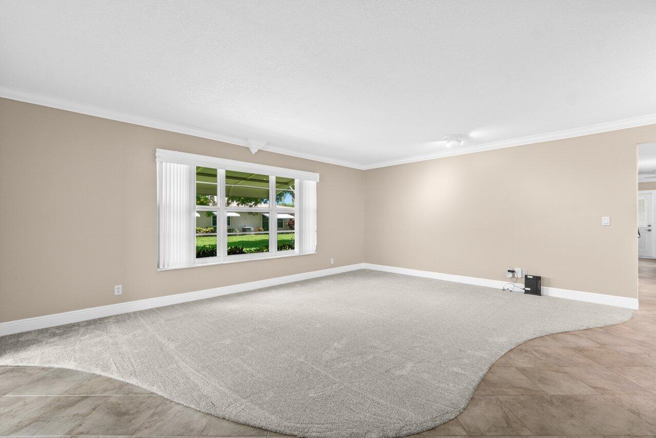 Renovated 2-bedroom villa in highly sought after section 4 of High Point. Starting with IMPACT WINDOWS this home is ready for you to move in. The Updated kitchen with wood cabinets, granite countertop, stainless steel appliances, & tile back splash leads into the open concept living room & Florida room completed with plantation shutters. The home is adorned with fresh paint, newer base boards, crown molding, new lights, fans, & new carpet. This corner villa brings in a lot of sunshine for natural light! The large master bedroom has an ensuite bath that is remodeled with a beautiful new vanity, mirror, & lights. The master walk in closet has custom shelving. The second bedroom has a large closet & in close proximity to the newly renovated 2nd bathroom. Nothing was spared!