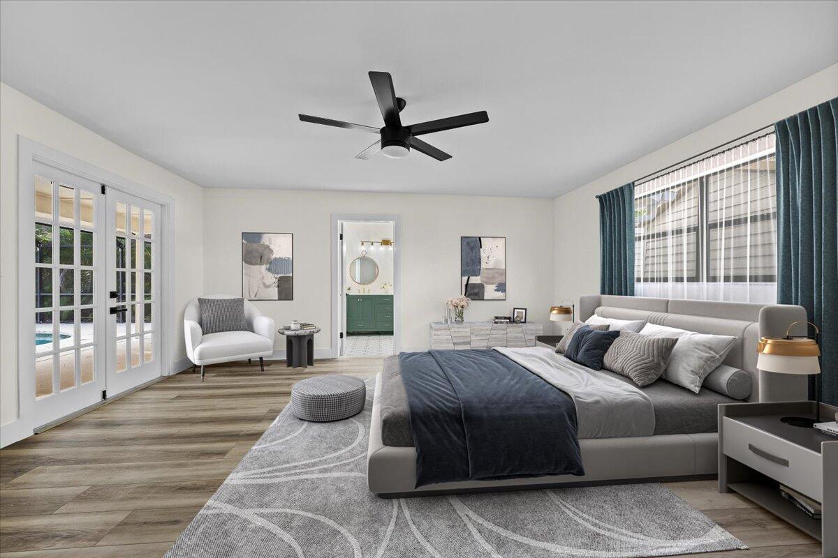 Beautifully Renovated 3 Bedroom + Den Pool Home in Palm Beach Country Estates This beautifully updated 3-bedroom, 2.5-bath home with a den, 2-car garage, and additional shed storage is ideally located on a large lot with no HOA--perfect for bringing all your toys, boats, RVs, or equipment. Located in highly sought-after Palm Beach Country Estates, this property offers space, freedom, and flexibility. Featuring a brand new roof and a 2020 A/C system, this home provides lasting value and peace of mind. Inside, you'll love the light and airy open floor plan with a split bedroom layout, offering both privacy and functionality. Freshly painted inside and out, the home features new luxury vinyl wood flooring throughout.