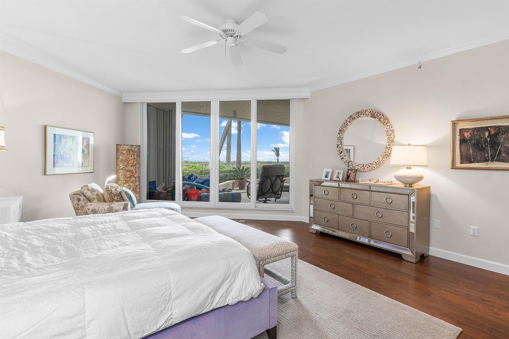 This exceptional first-floor oceanfront residence is defined by expansive walls of glass and broad verandas that frame sweeping Atlantic Ocean vistas. The thoughtfully designed chef's kitchen features a view panel overlooking the stunning great room, creating a seamless, open flow throughout the primary living spaces. Refined architectural details include crown mouldings, cornices, and custom built-ins. The home offers a generous primary suite along with two guest bedrooms, each with en suite baths. Amenities of this direct oceanfront condominium include an elegant lobby, semi-private elevator access, under-building parking, an oceanfront pool with recreation pavilion, and private beach access via a dedicated dunewalk.