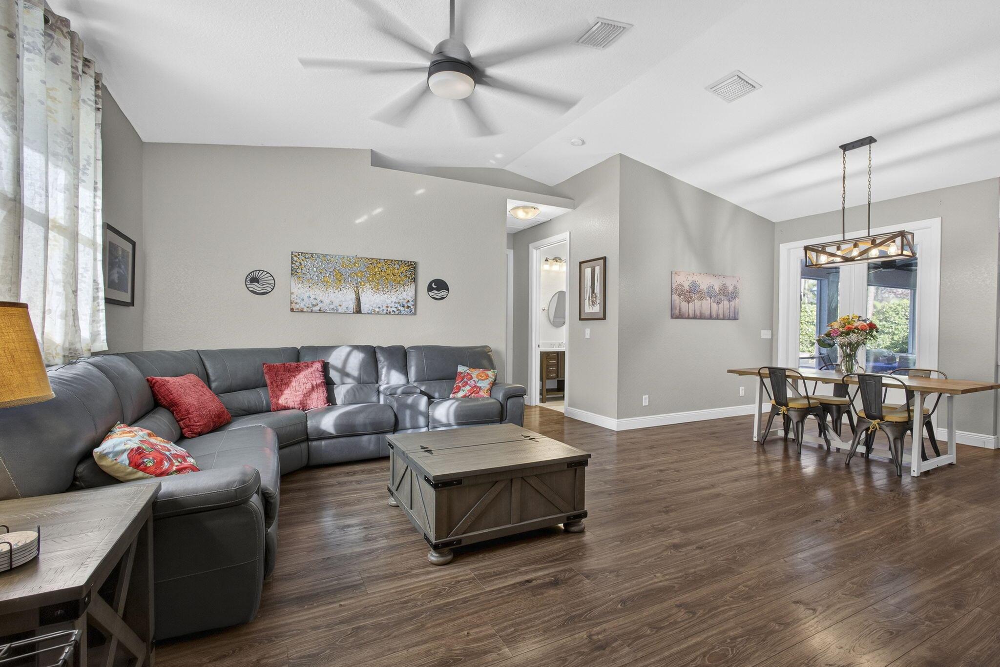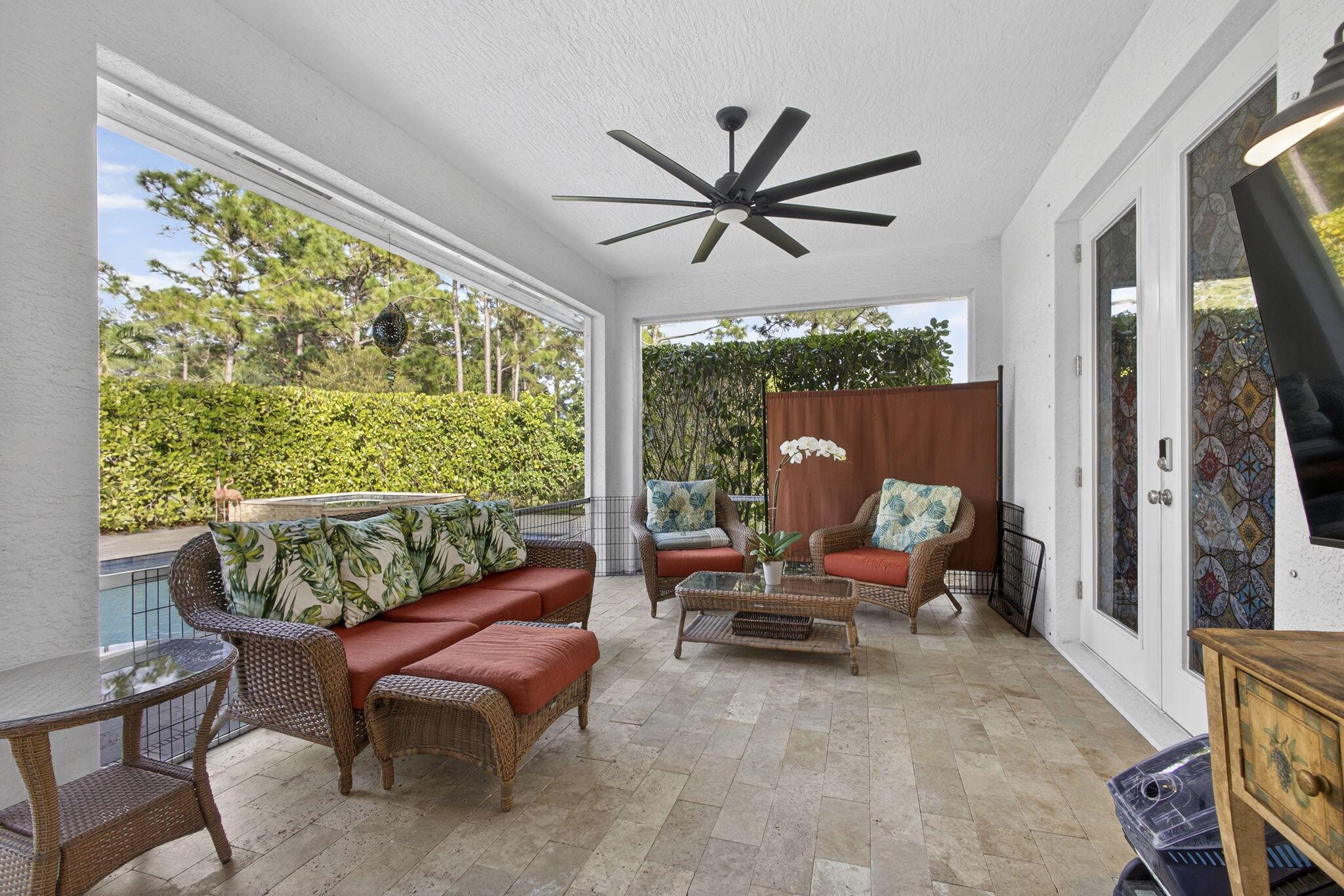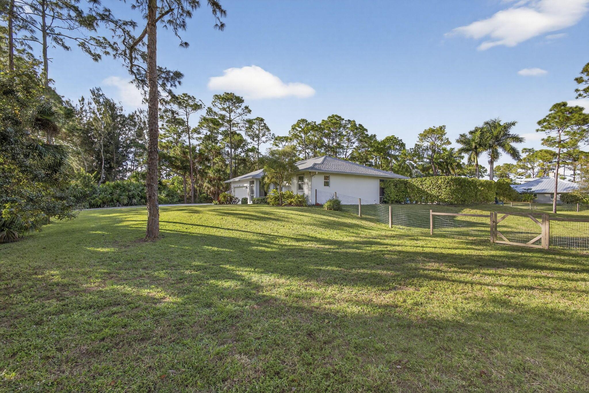 Welcome to this beautifully upgraded 3-bedroom pool home situated on a fully fenced and private 1.36-acre lot in Loxahatchee. This move-in-ready residence offers high ceilings, an open split-bedroom floor plan, and ceiling fans throughout, creating a bright and comfortable living environment.The kitchen features quartzite countertops, recently updated stainless steel appliances, and a reverse osmosis system. French doors from the dining area and primary suite open to a screened patio and a completely private saltwater pool and spa. The pool area is surrounded by mature clusia hedges for exceptional privacy and includes travertine pavers and an efficient electric heat pump pool heater for year-round enjoyment...